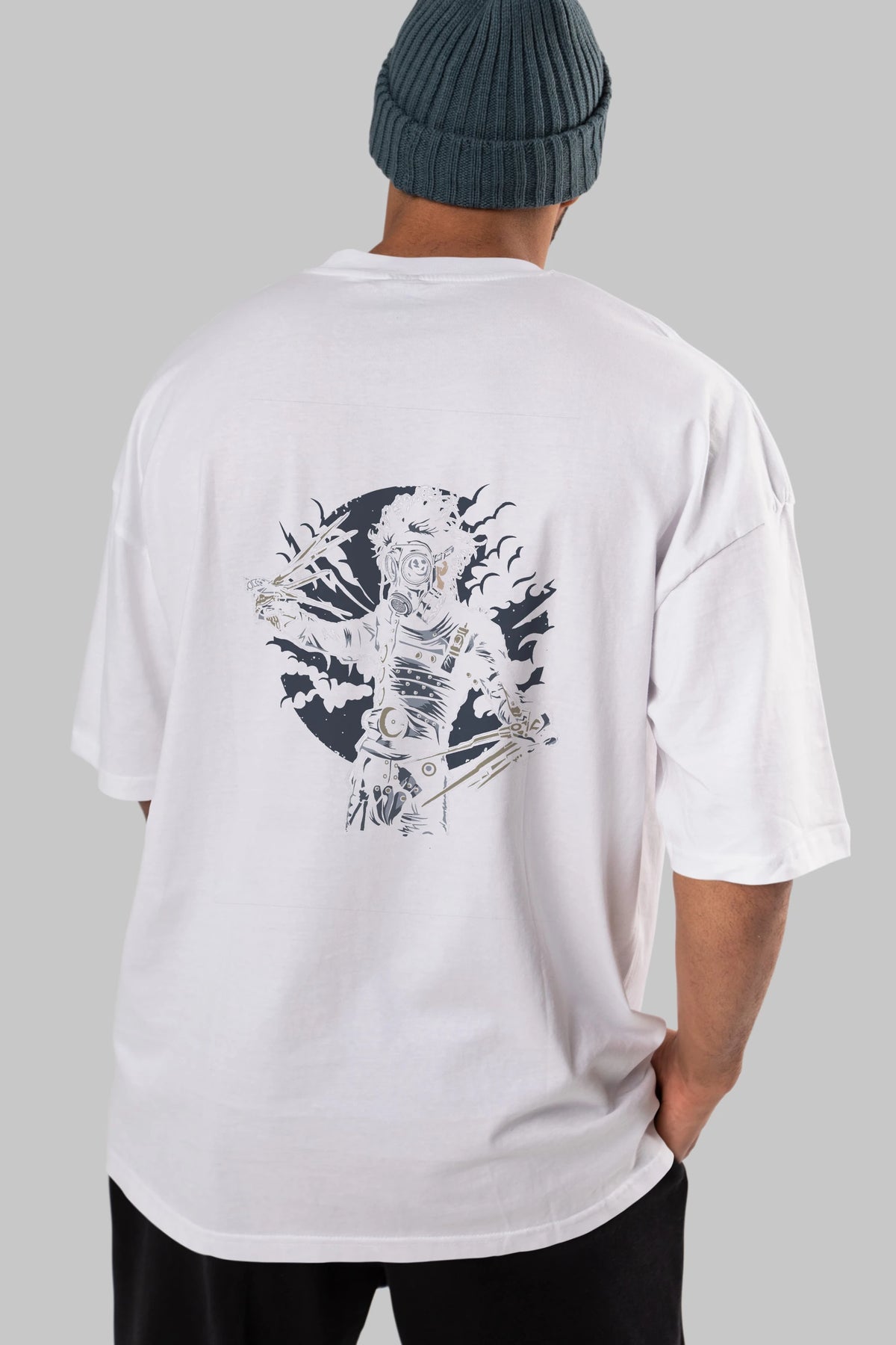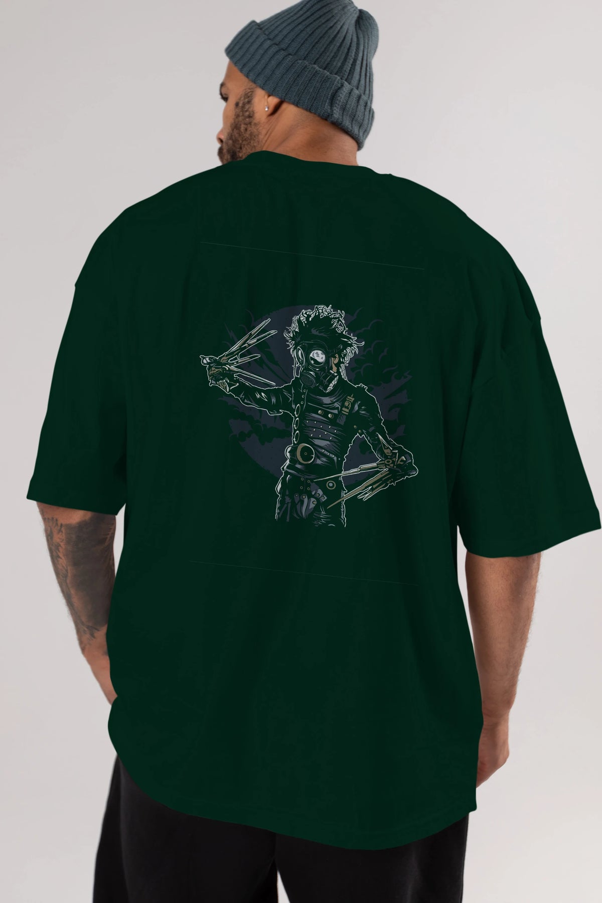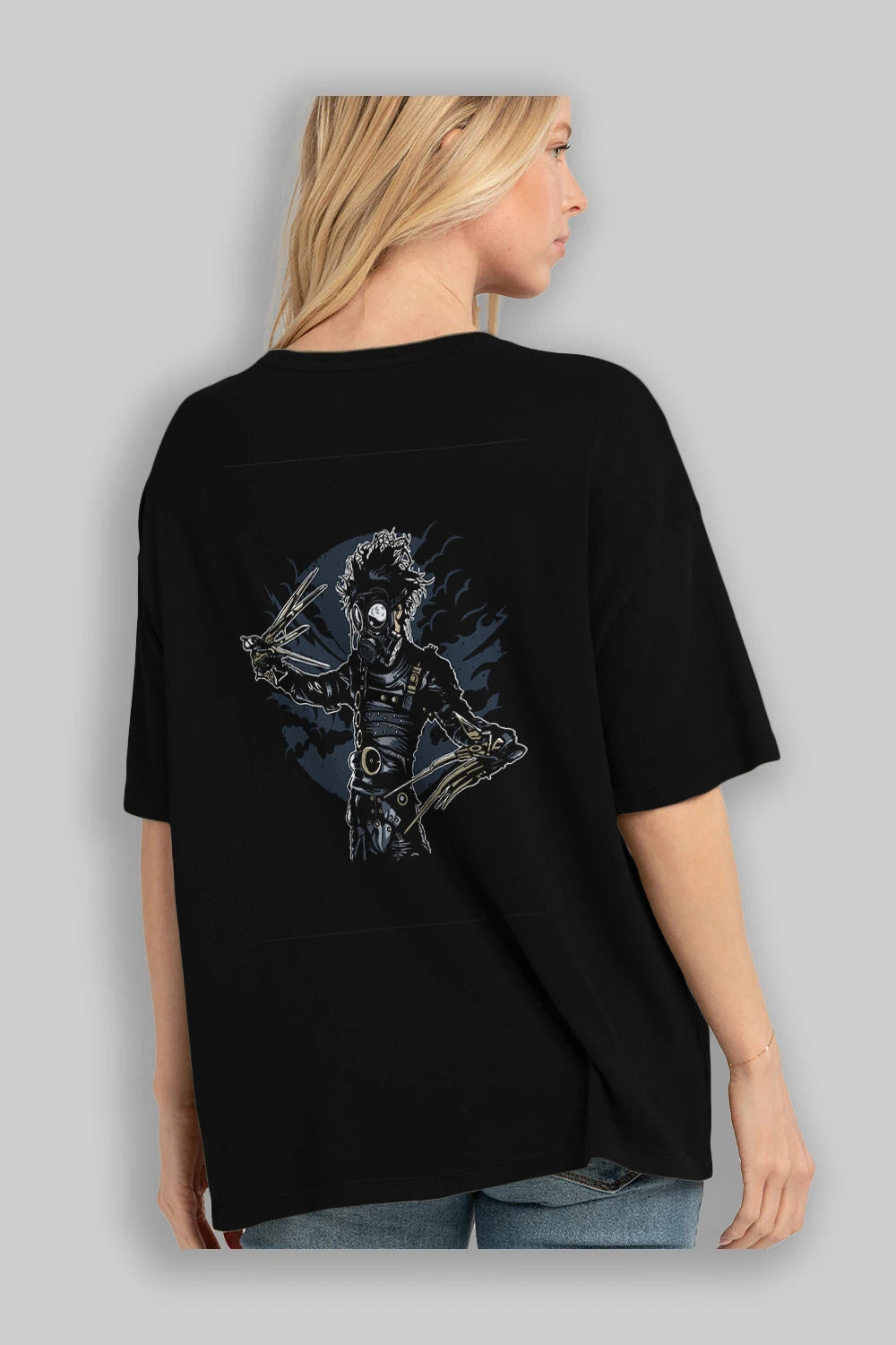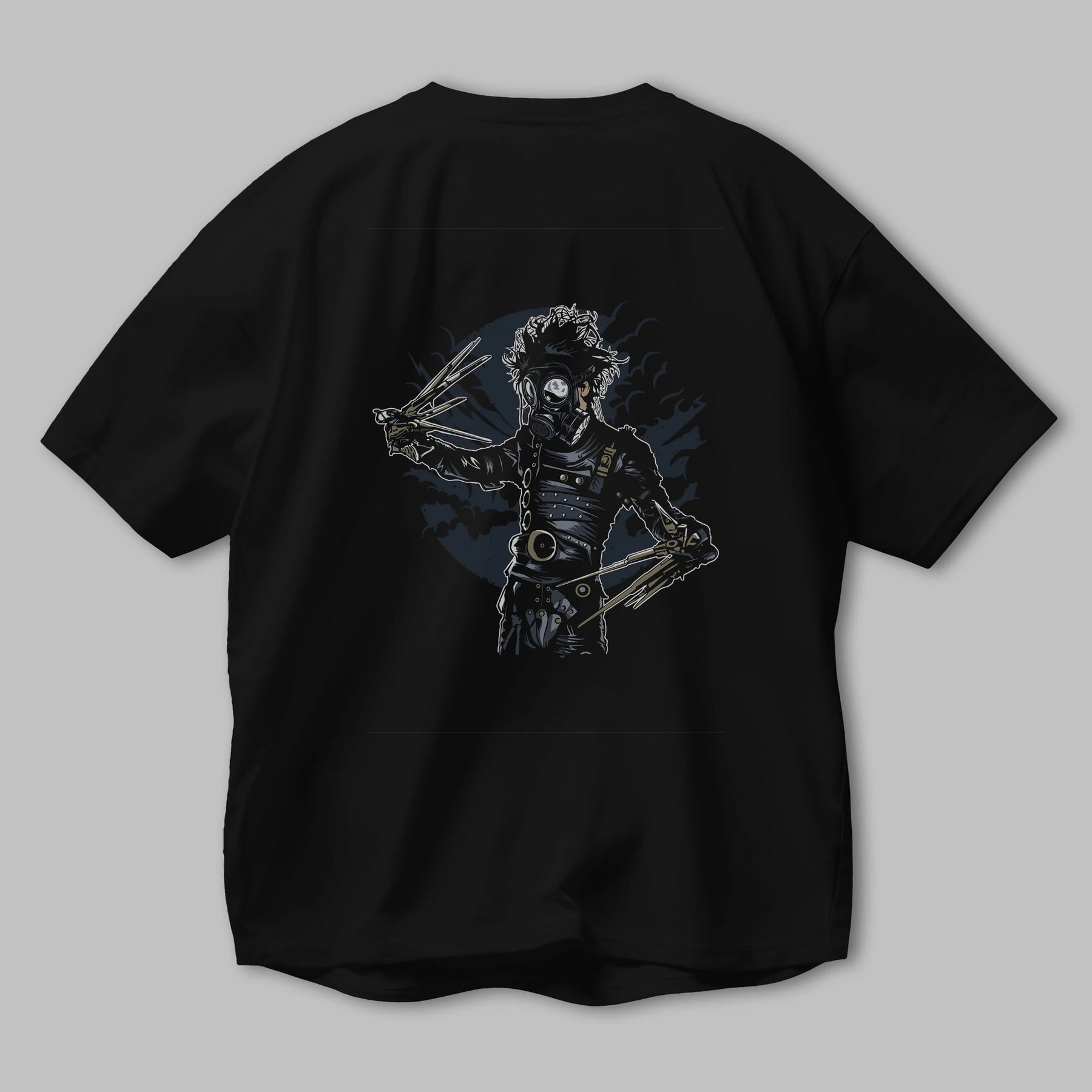 Gas Mask Scissors Arka Baskılı Oversize t-shirt Erkek Kadın Unisex %100 Pamuk