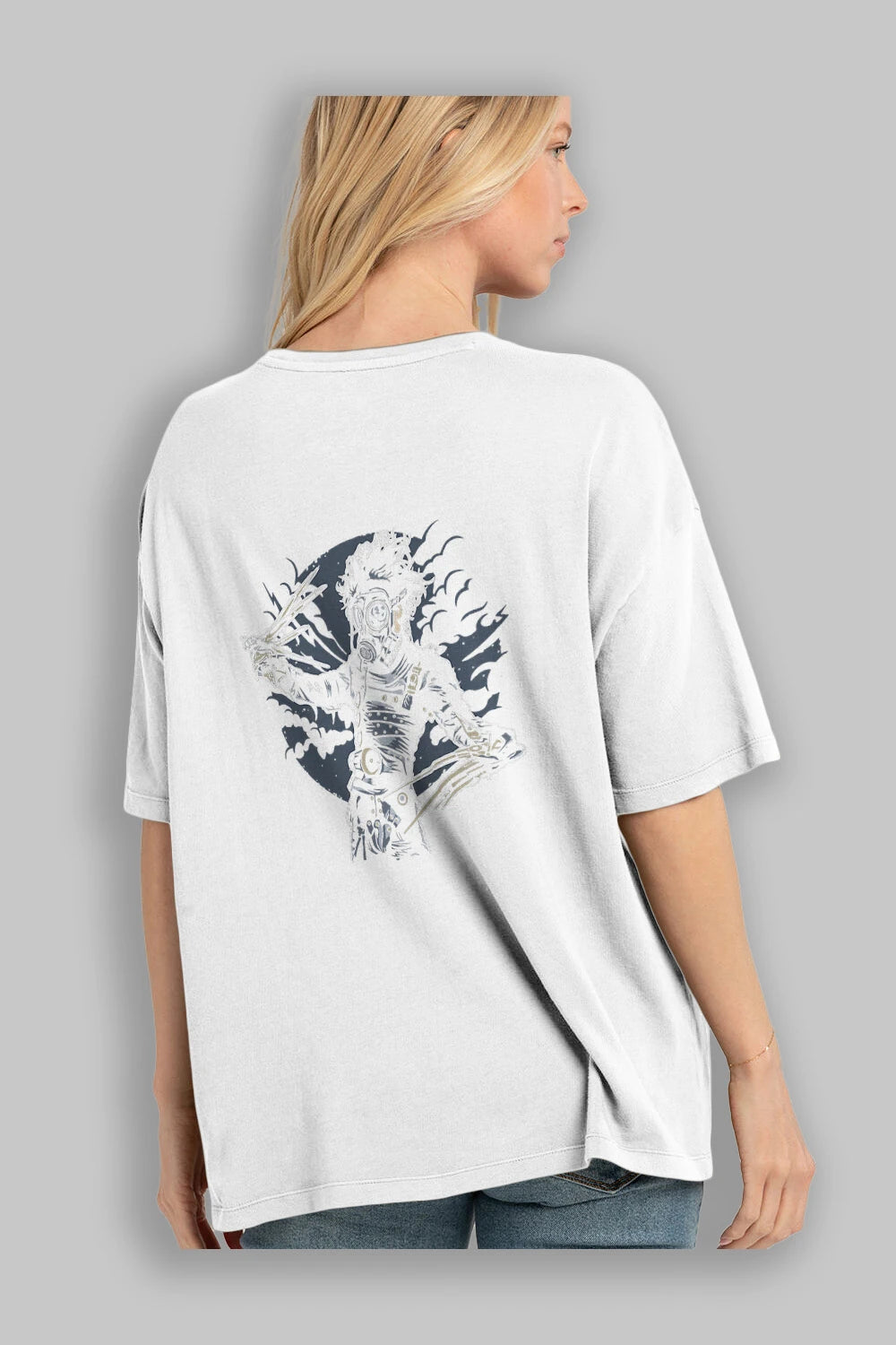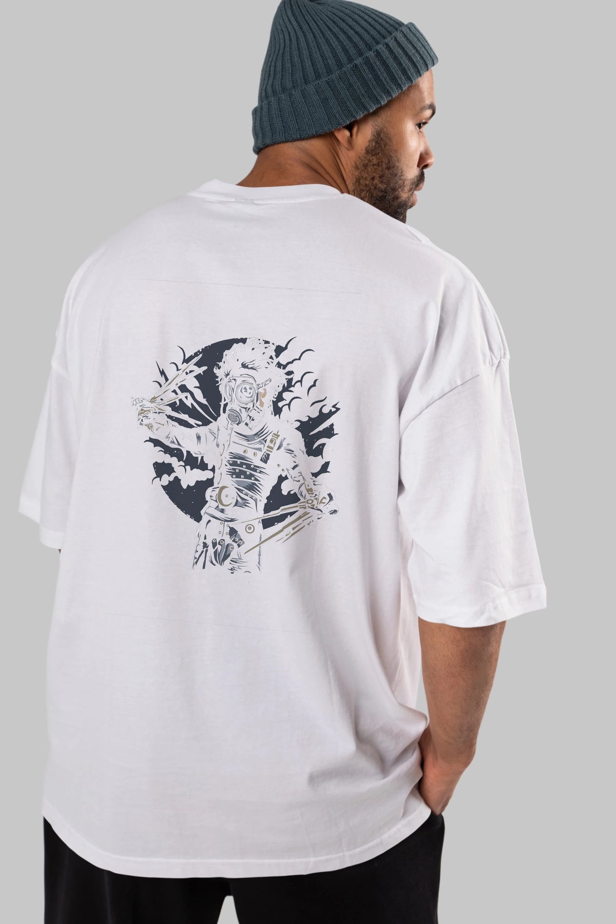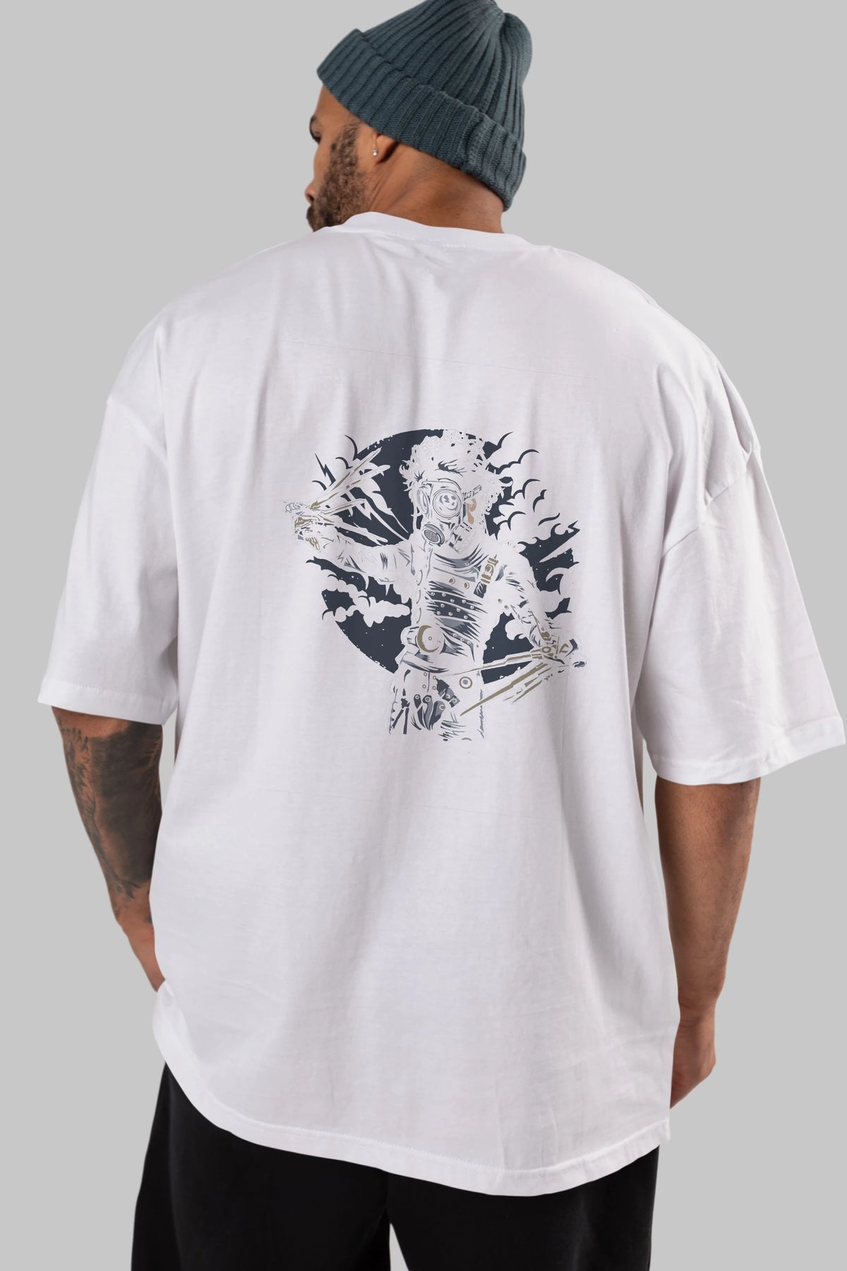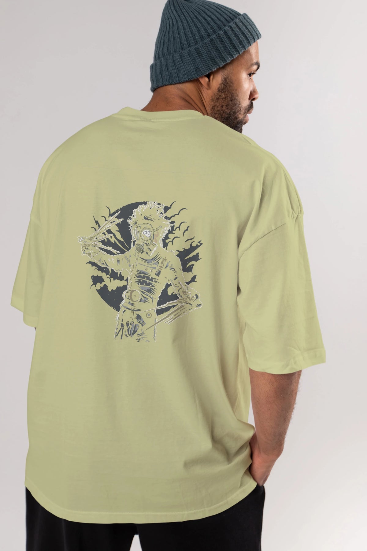 Gas Mask Scissors Arka Baskılı Oversize t-shirt Erkek Kadın Unisex %100 Pamuk