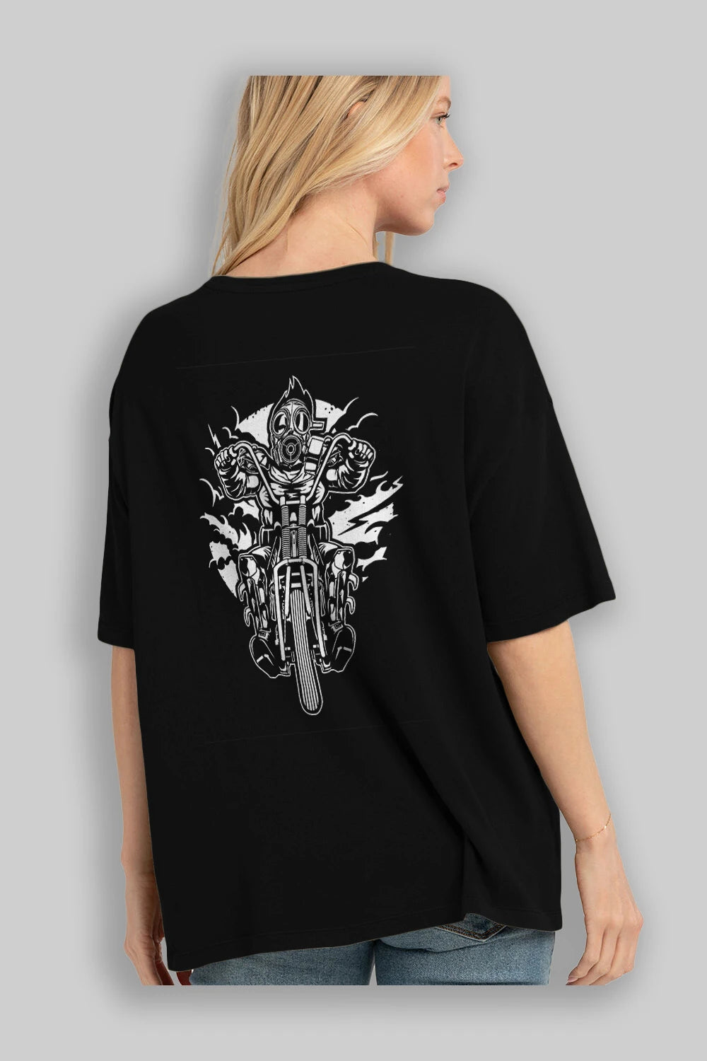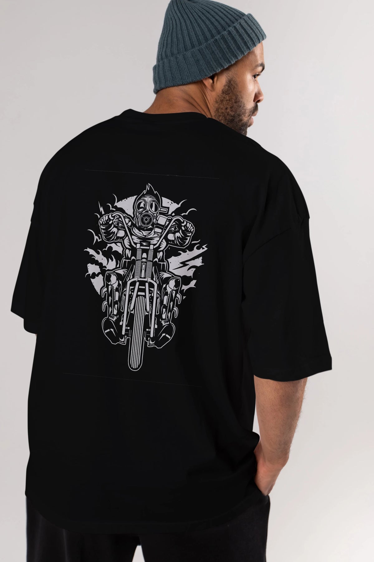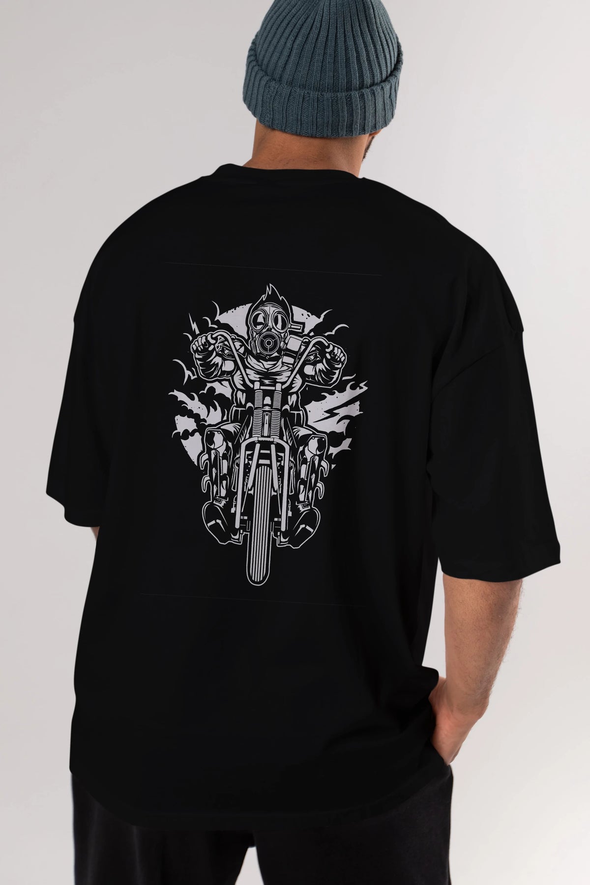 Gasmask Chopper Arka Baskılı Oversize t-shirt Erkek Kadın Unisex %100 Pamuk