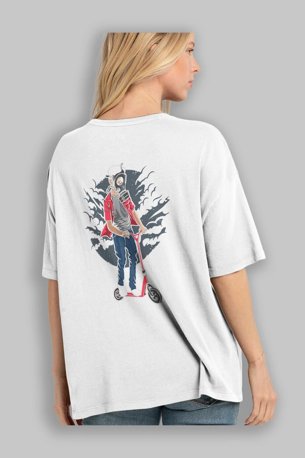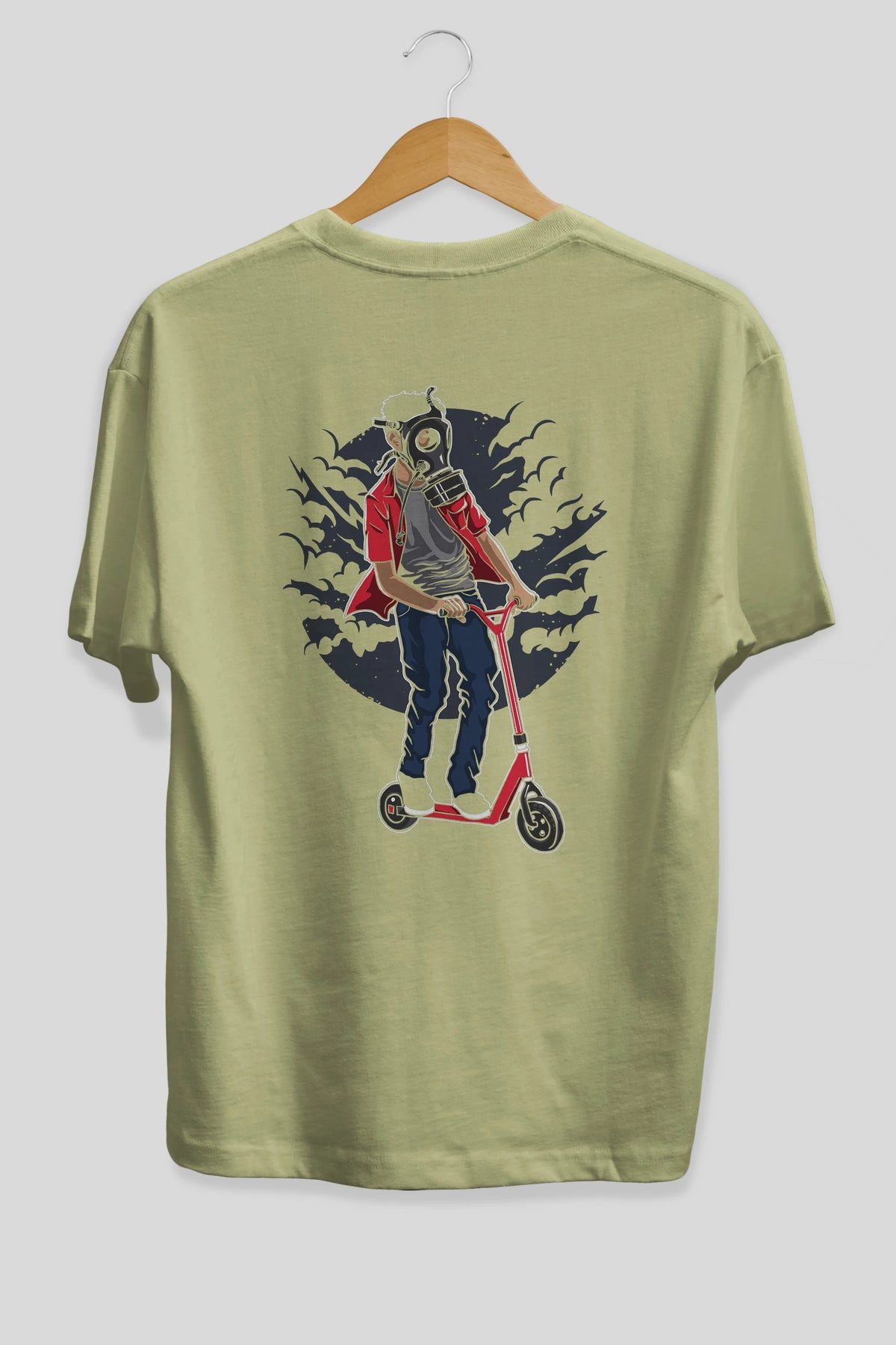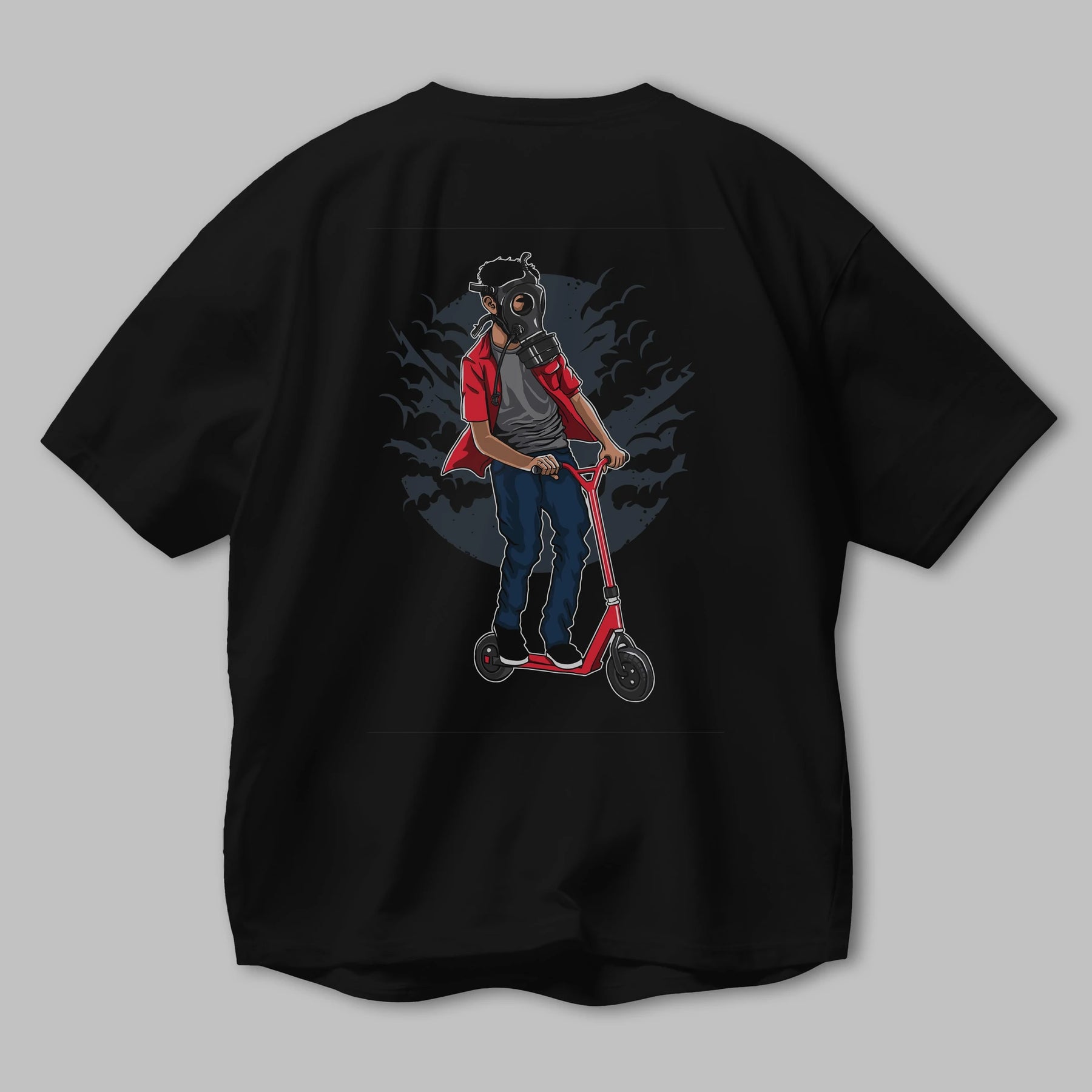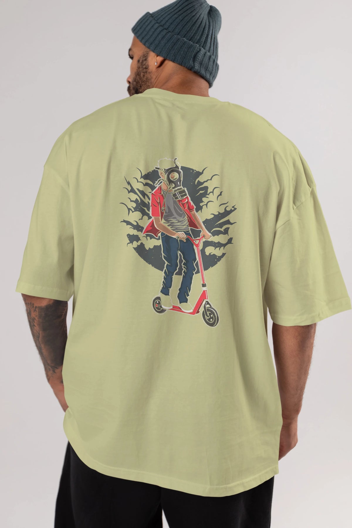 Gasmask Rider Arka Baskılı Oversize t-shirt Erkek Kadın Unisex %100 Pamuk