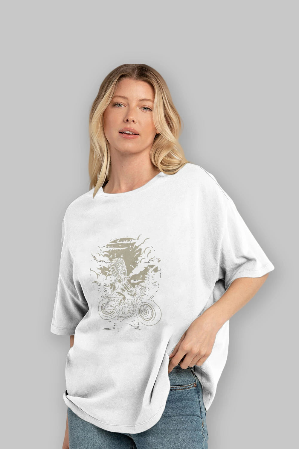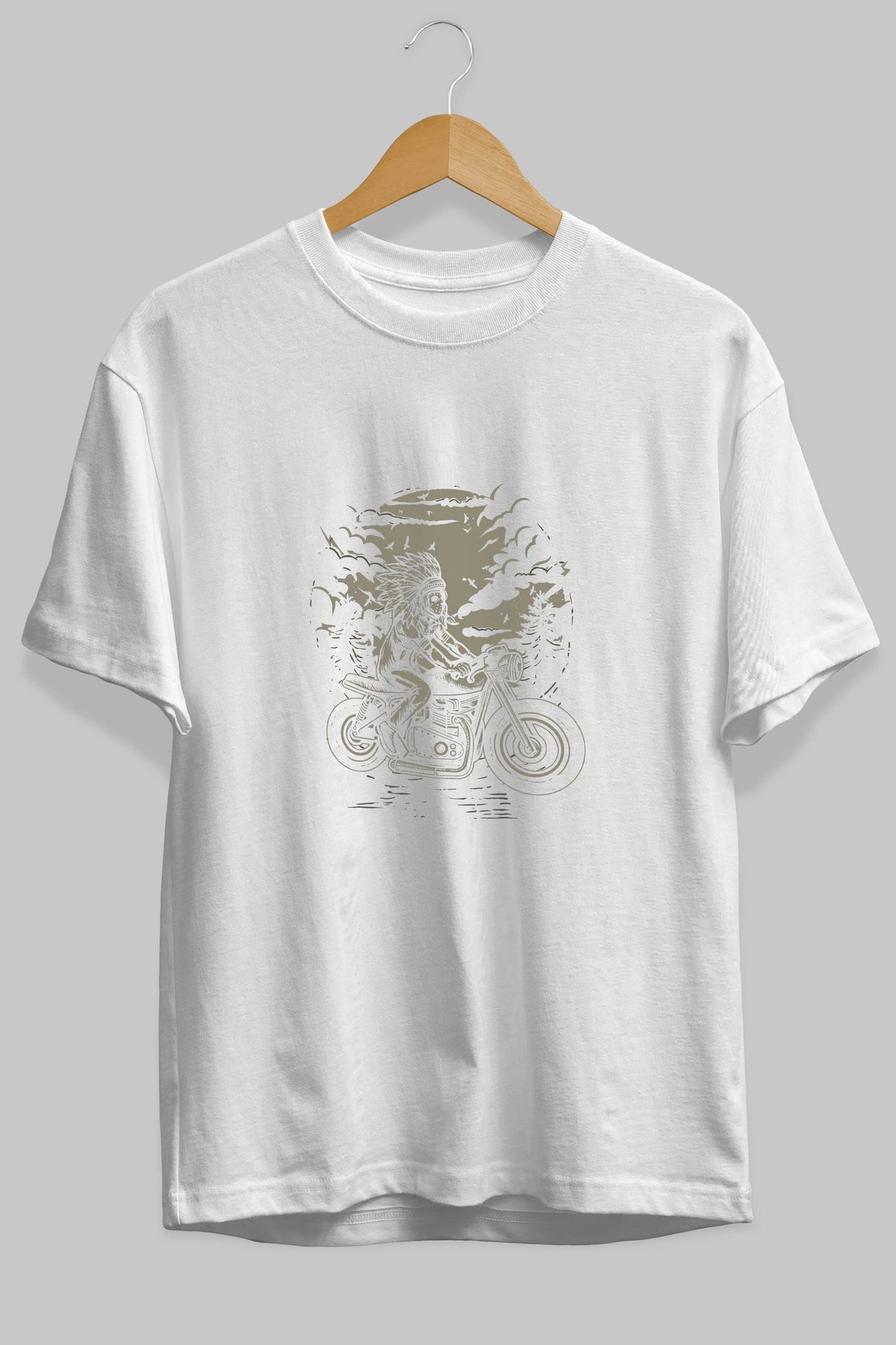 Indian Chief Rider Ön Baskılı Oversize t-shirt Erkek Kadın Unisex %100 Pamuk tişort