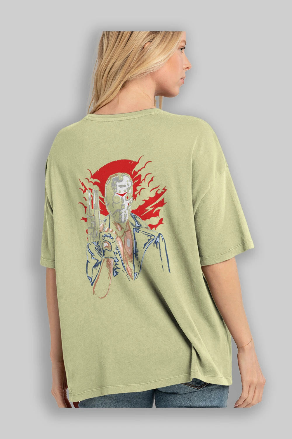Hem erkekler hem de kadınlar için uygun, taze, modern bir baskıya sahip baskılı oversize t-shirt.