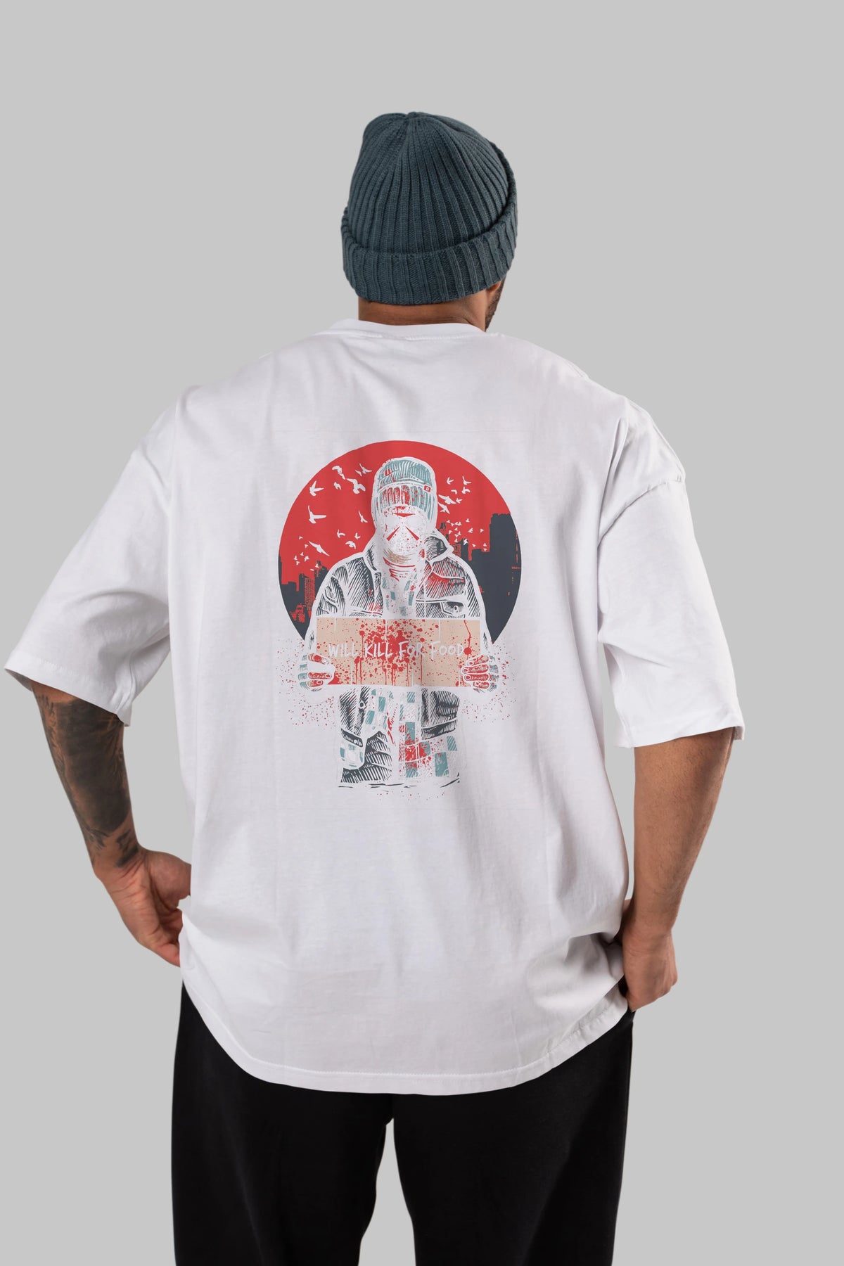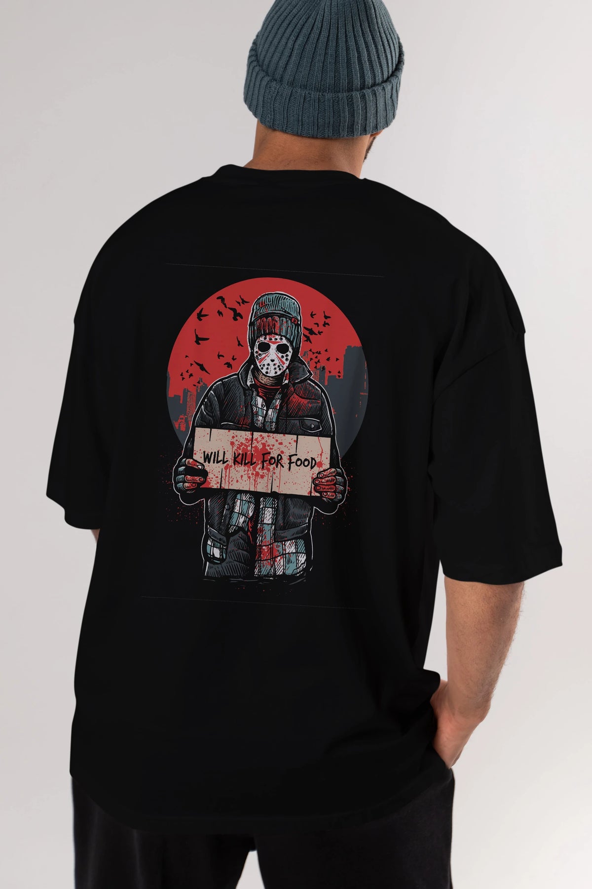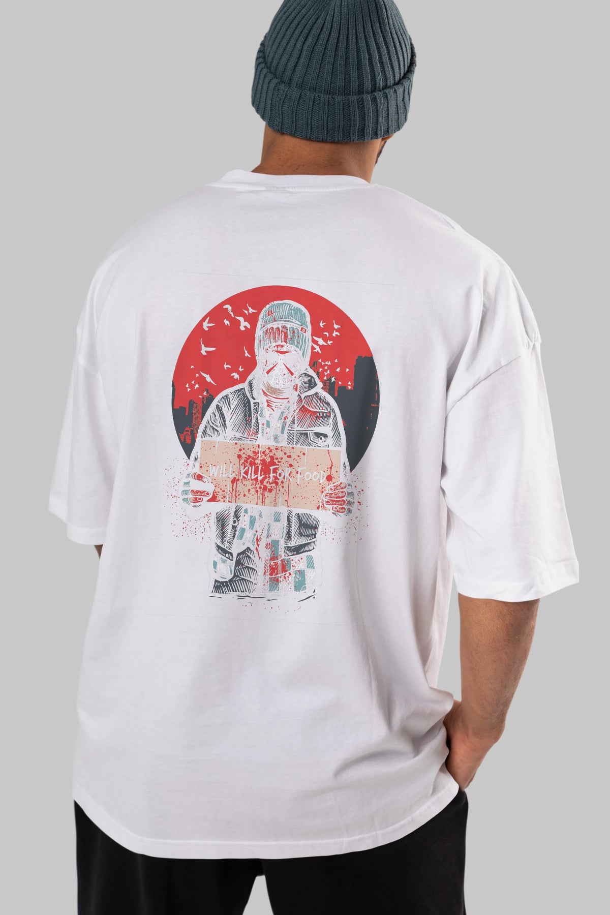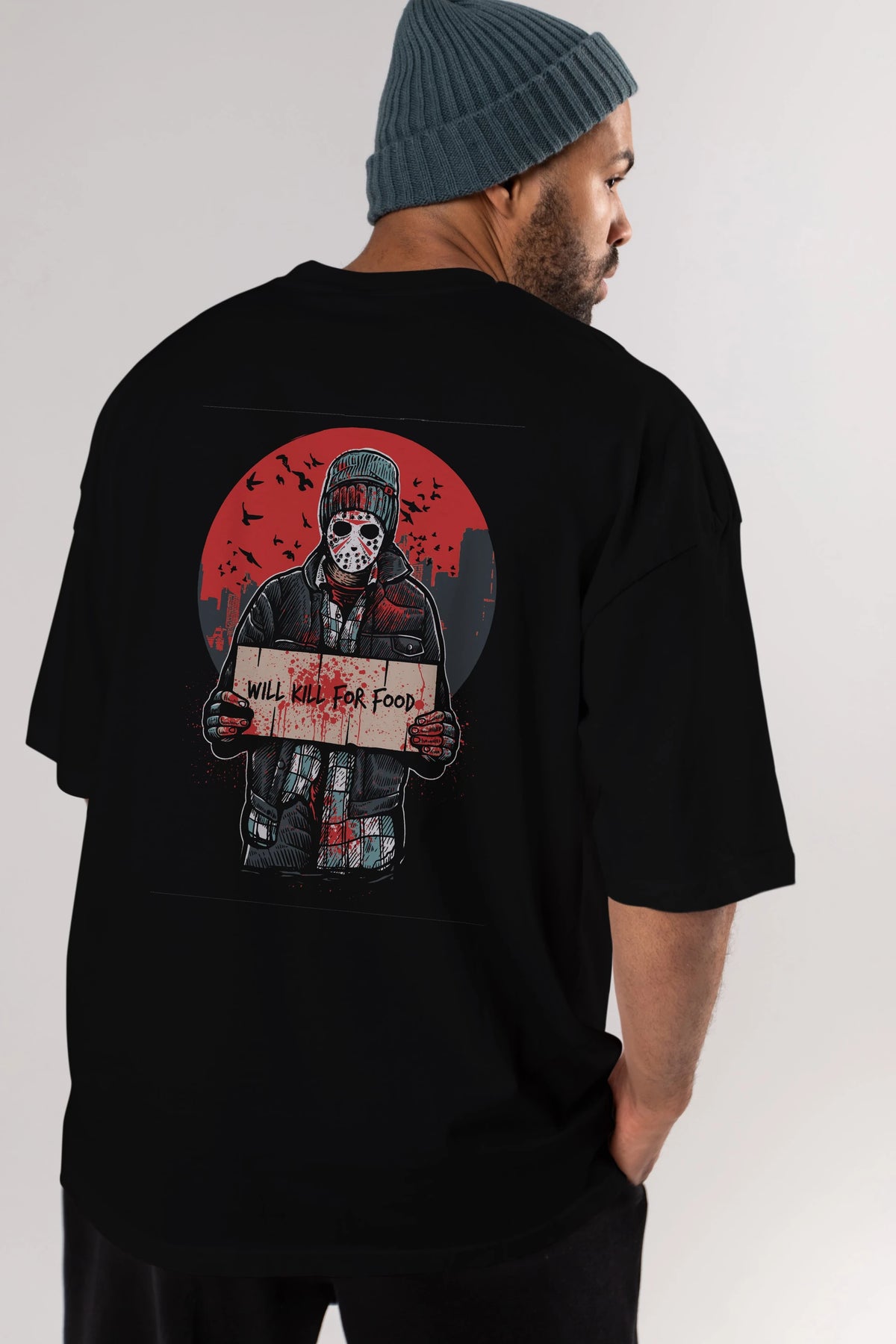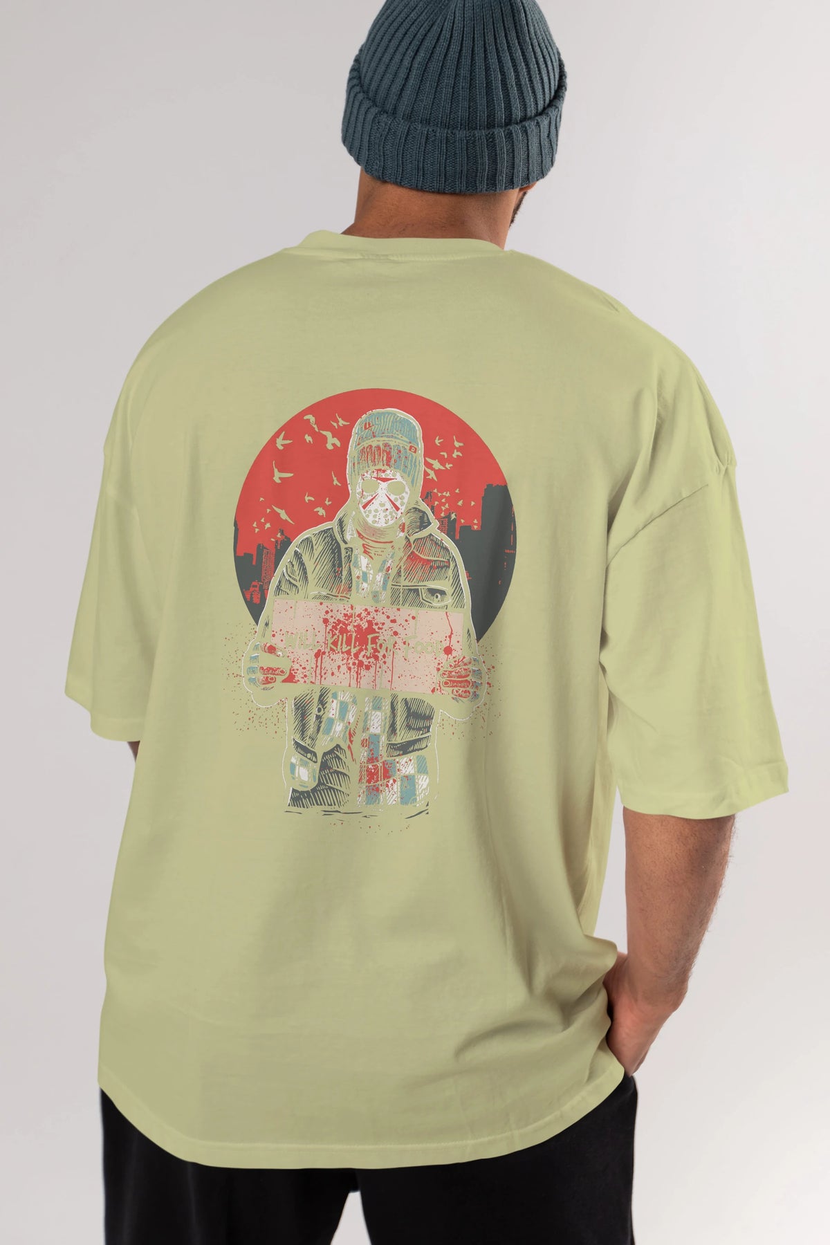 Kill For Food Arka Baskılı Oversize t-shirt Erkek Kadın Unisex %100 Pamuk