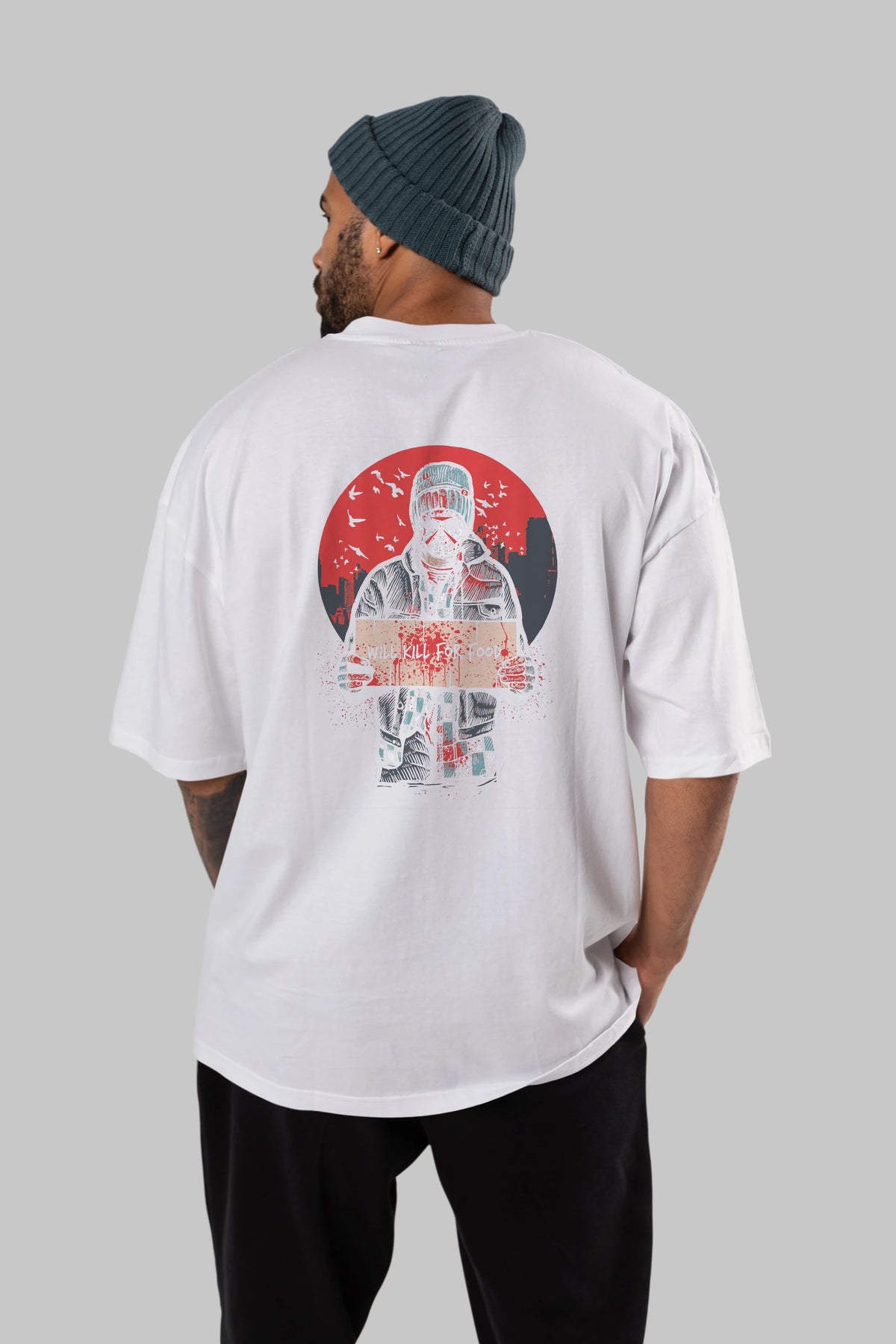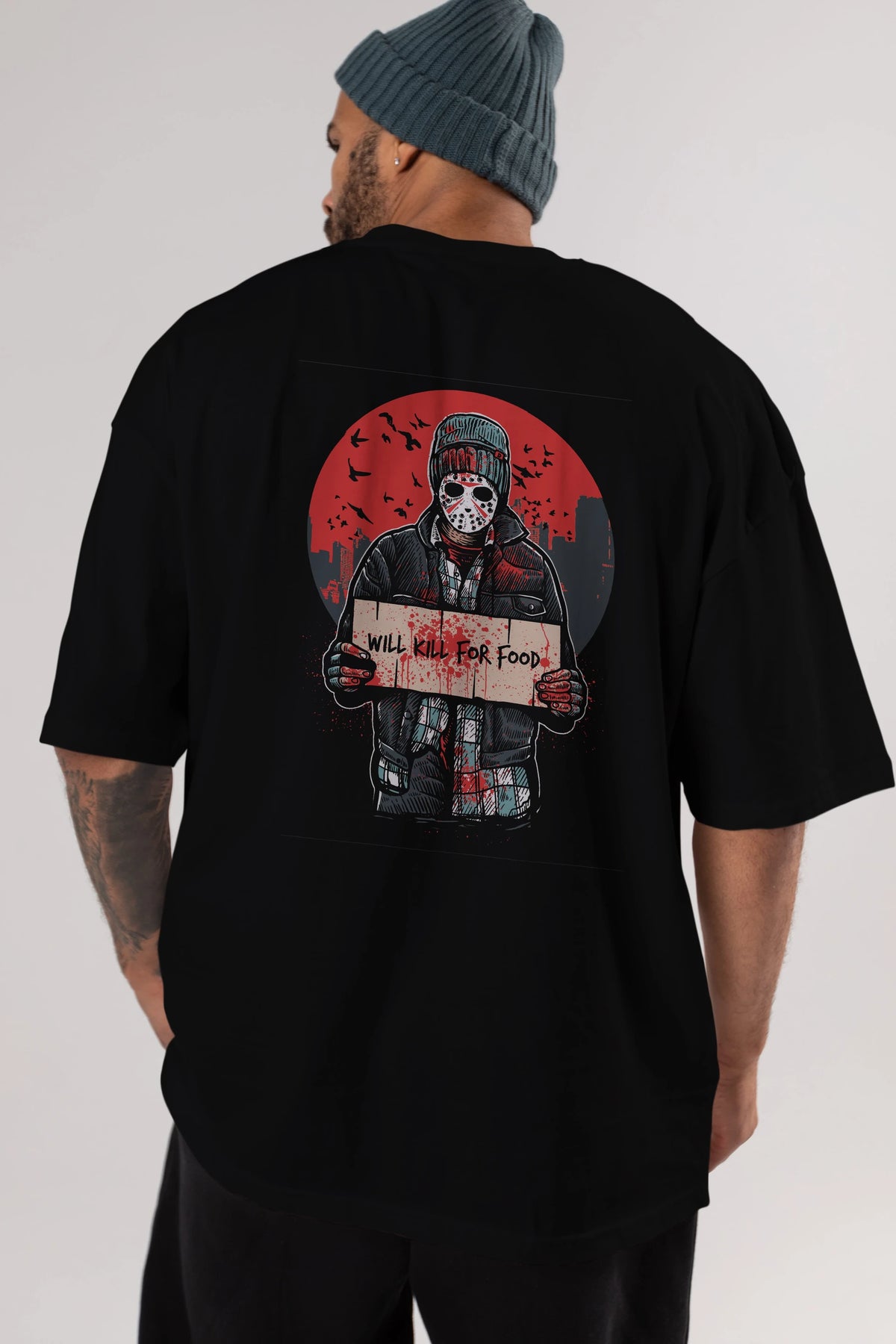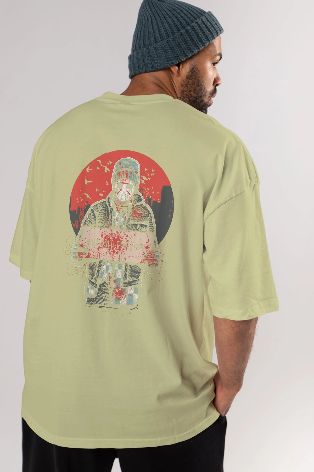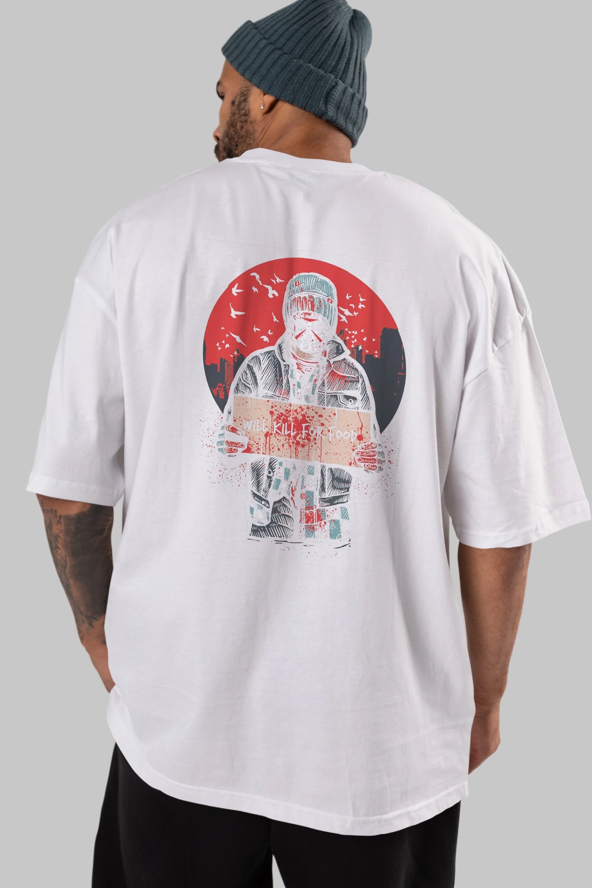 Kill For Food Arka Baskılı Oversize t-shirt Erkek Kadın Unisex %100 Pamuk