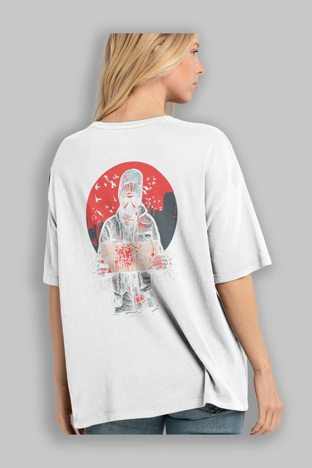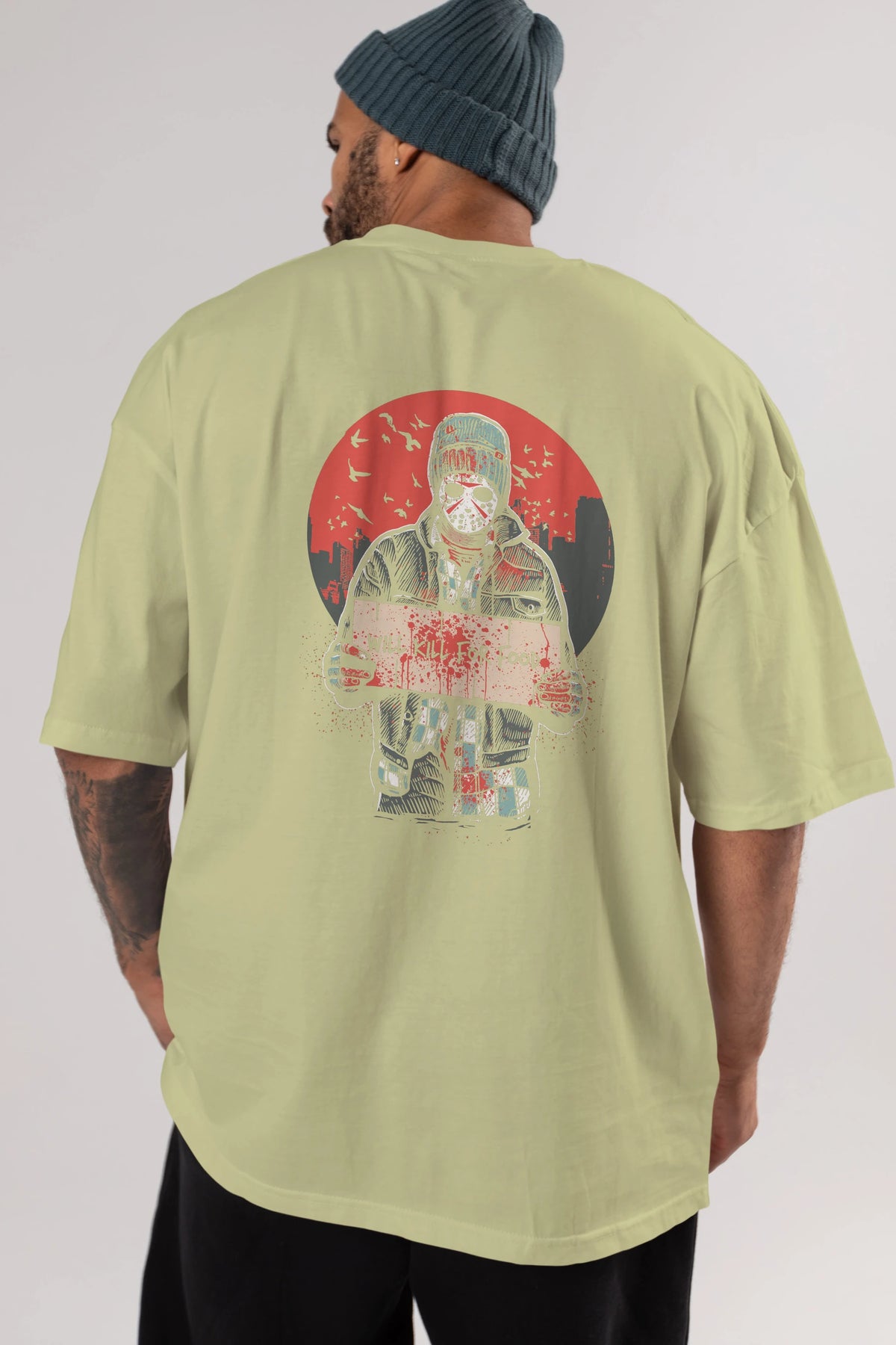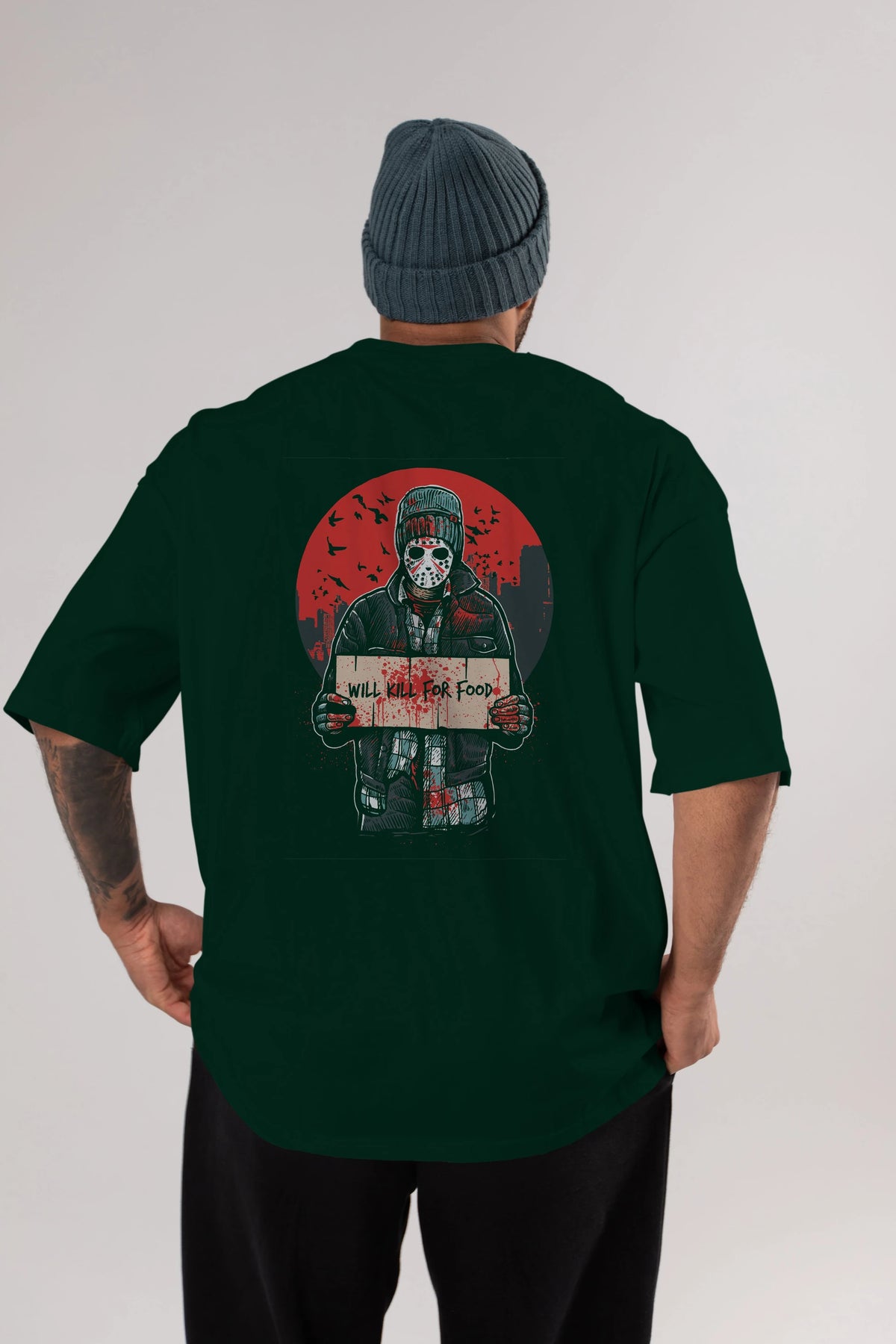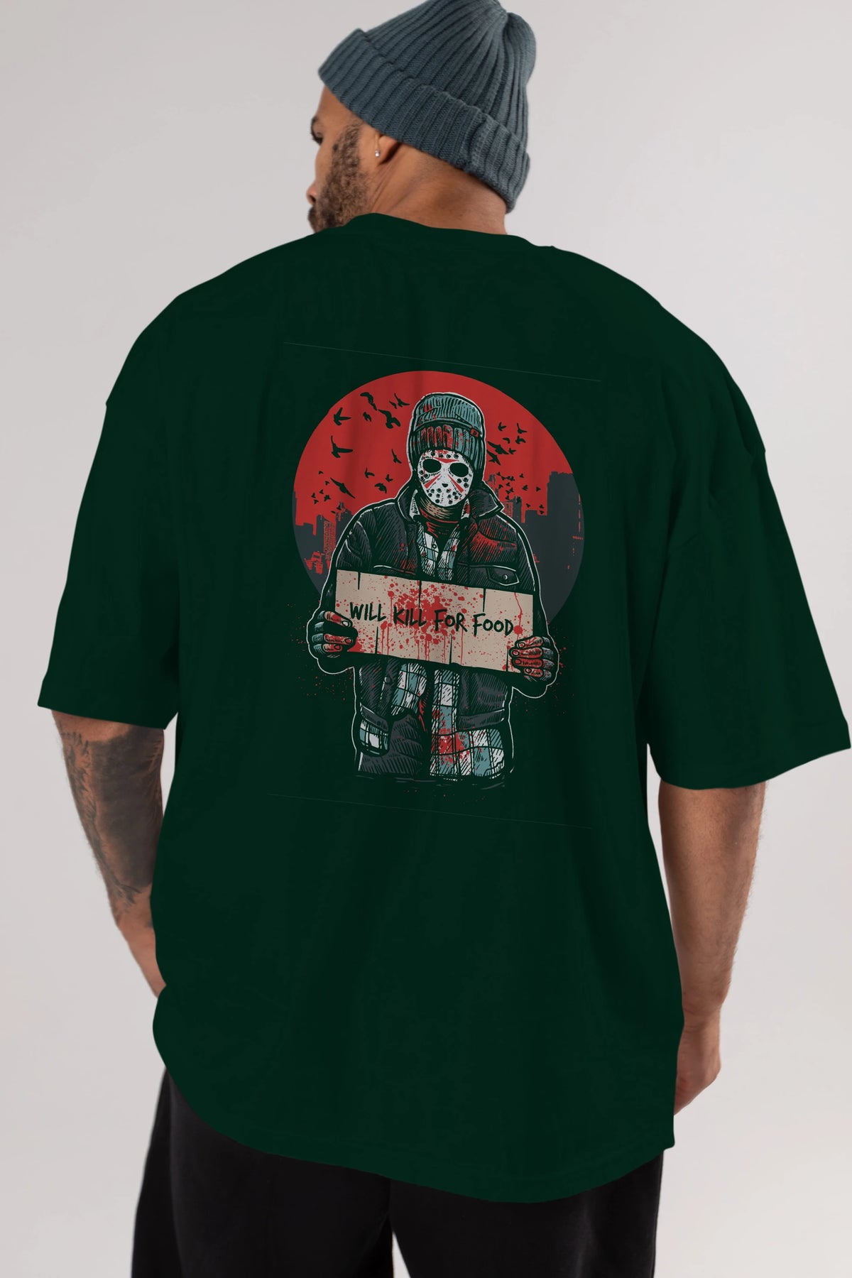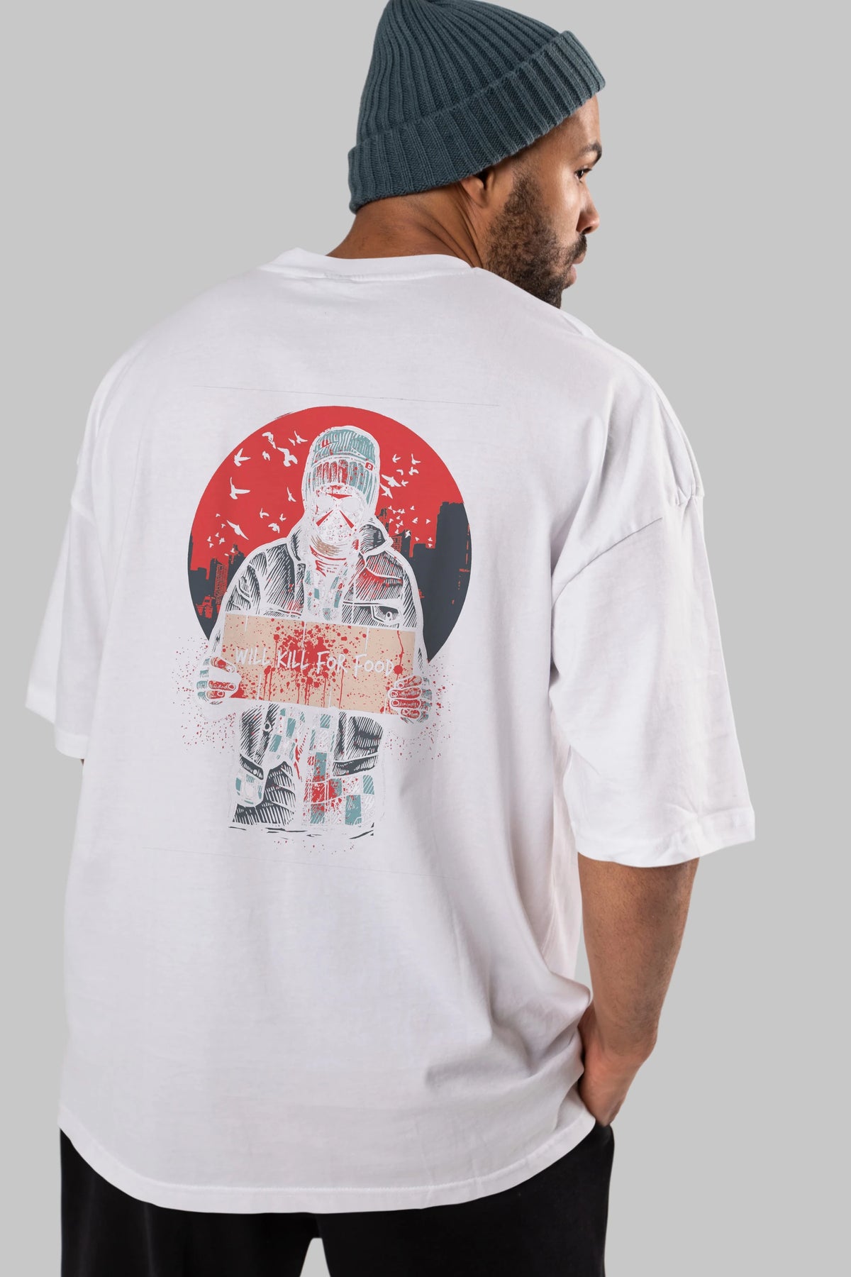 Kill For Food Arka Baskılı Oversize t-shirt Erkek Kadın Unisex %100 Pamuk