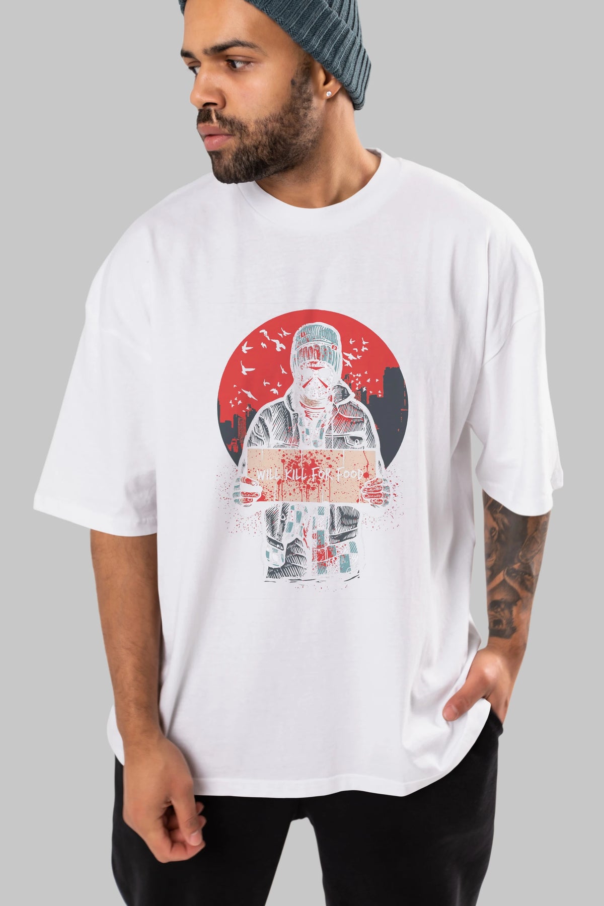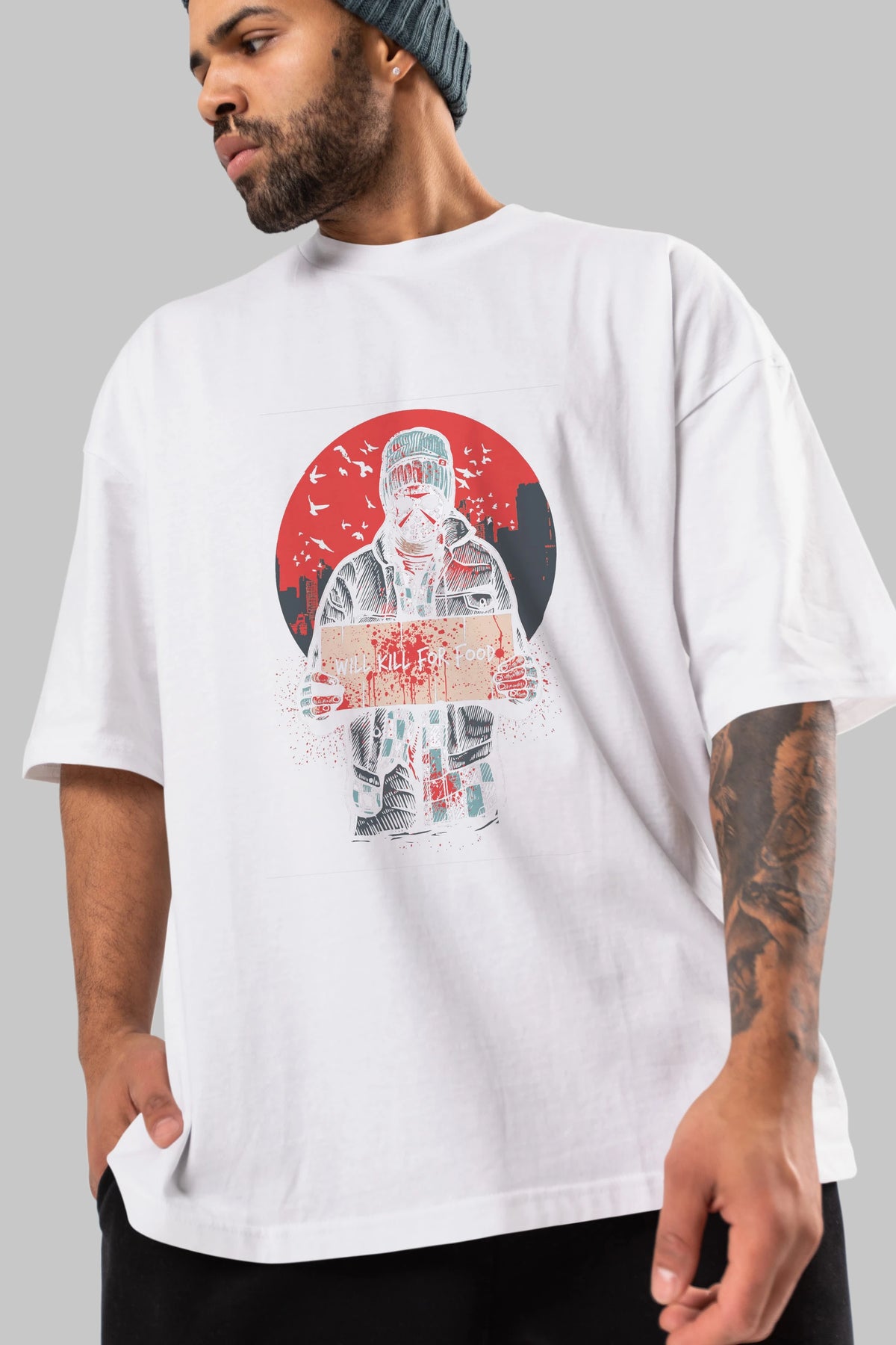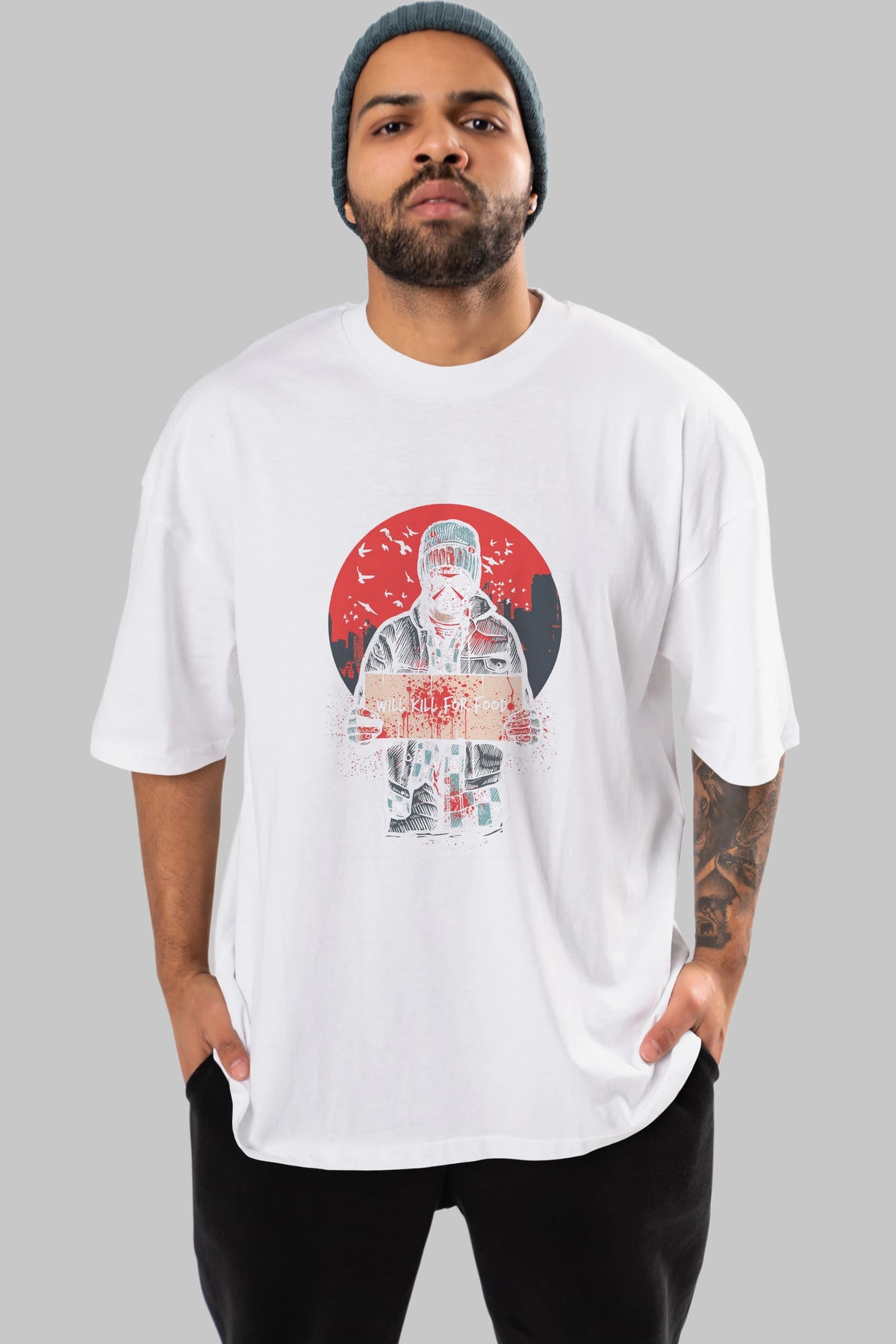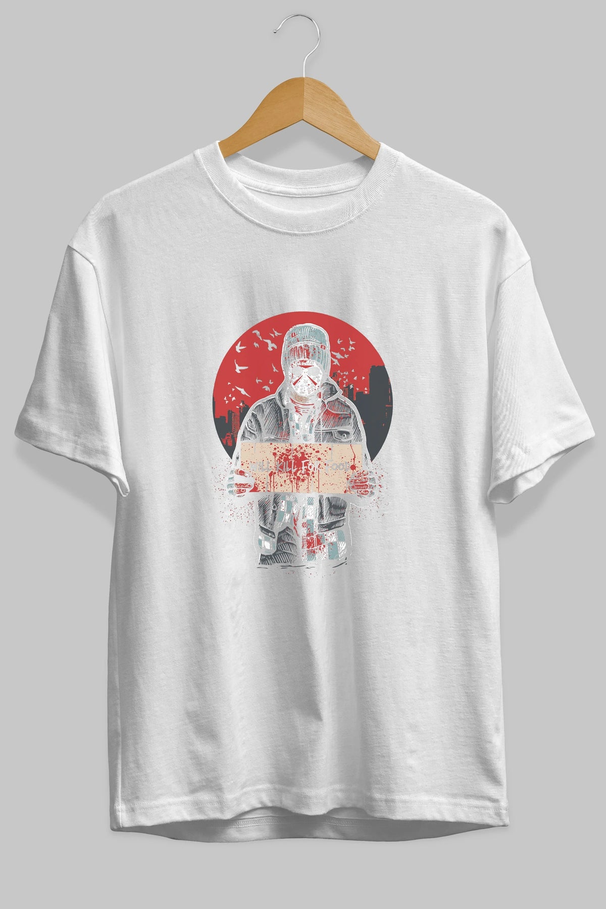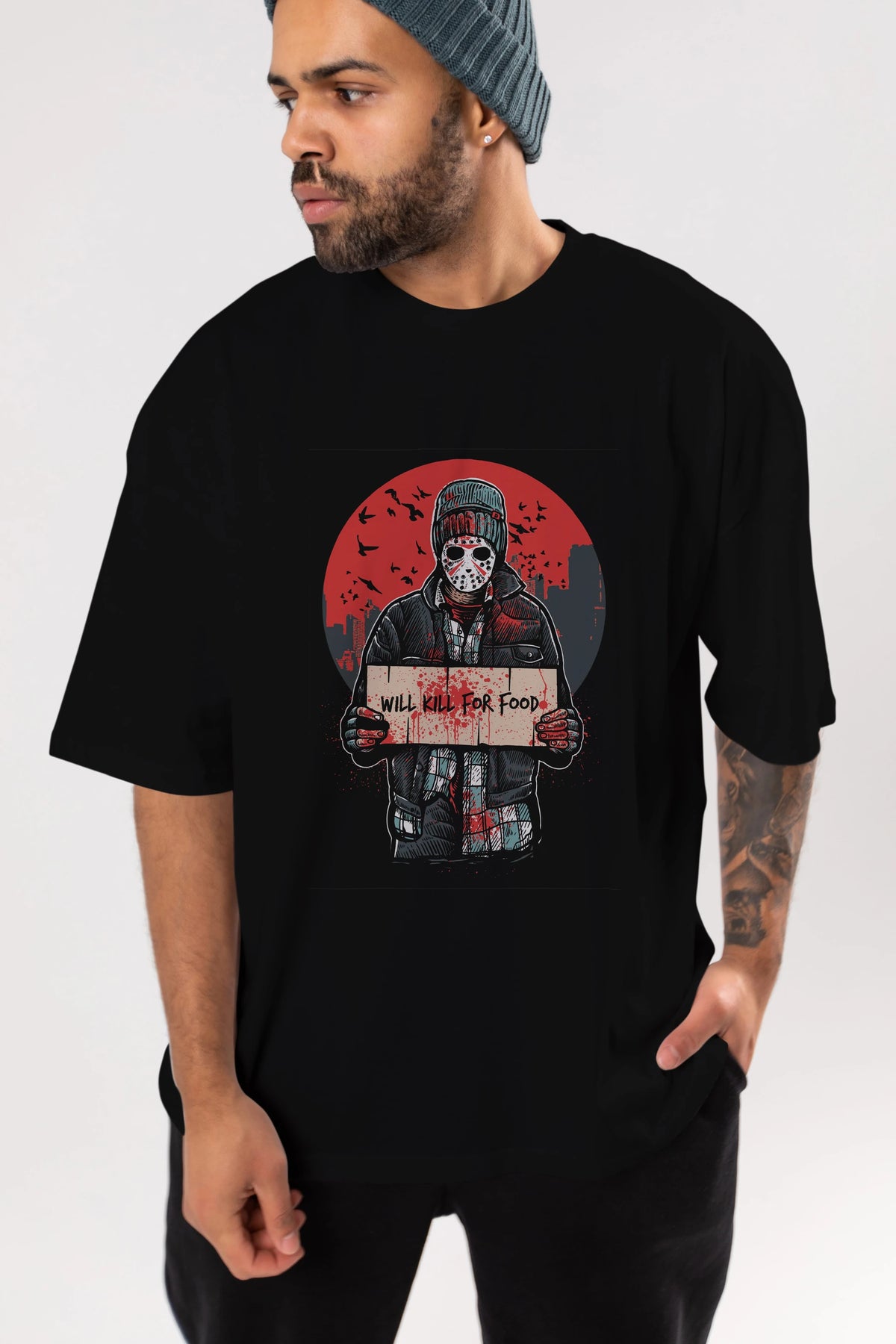 Kill For Food Ön Baskılı Oversize t-shirt Erkek Kadın Unisex %100 Pamuk tişort