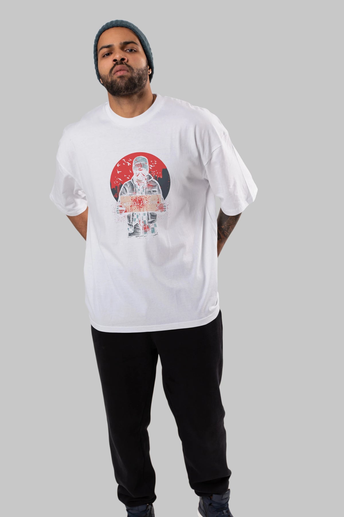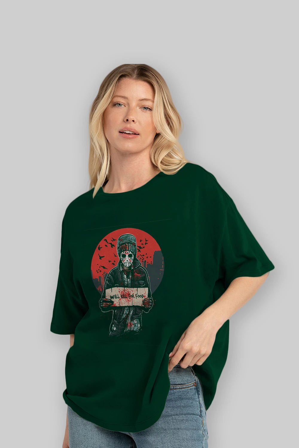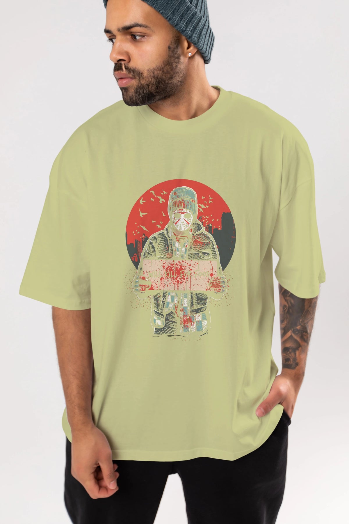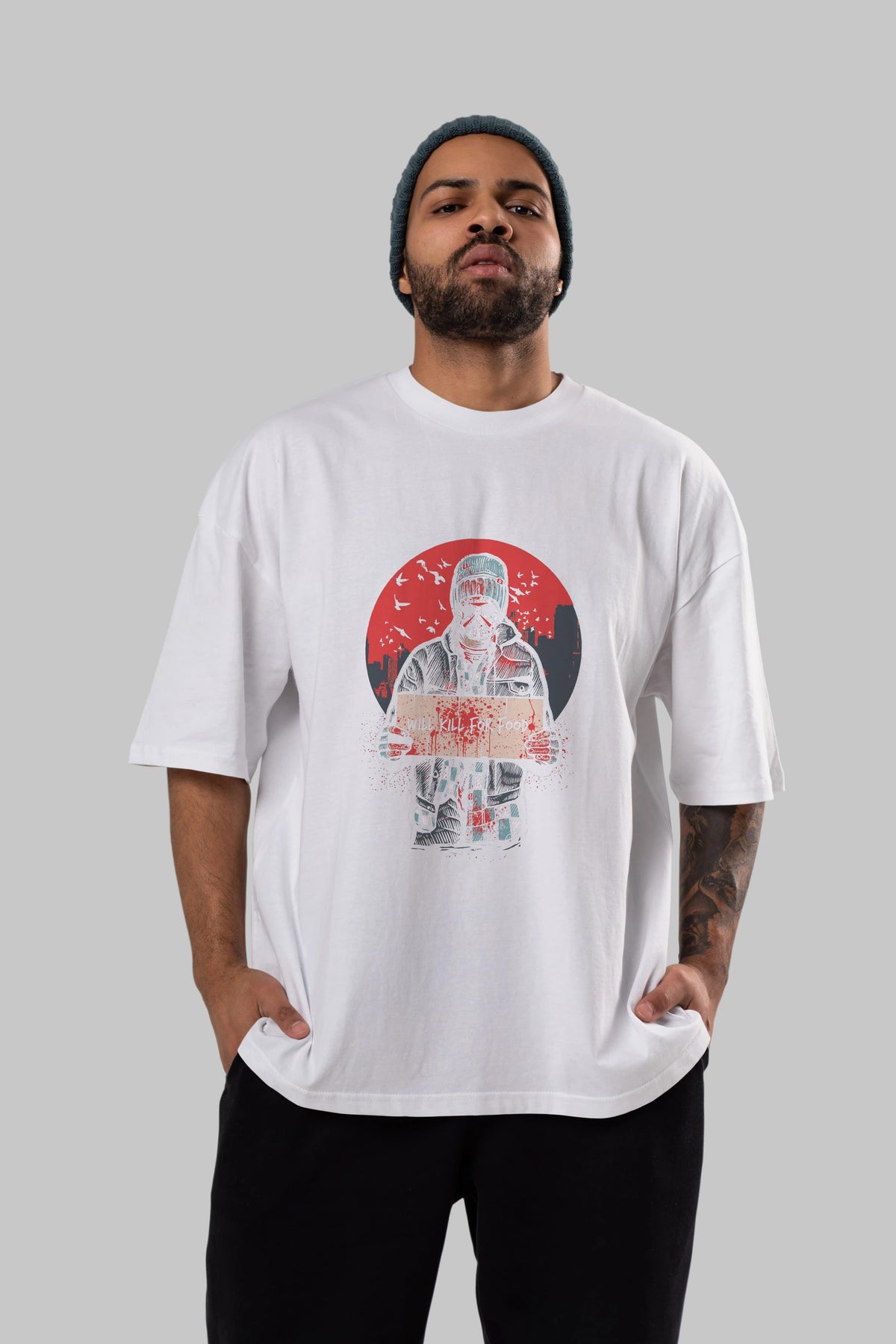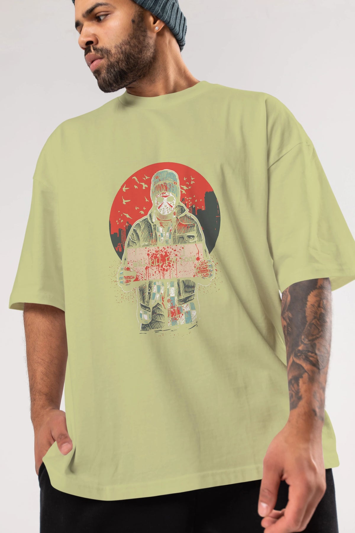 Kill For Food Ön Baskılı Oversize t-shirt Erkek Kadın Unisex %100 Pamuk tişort