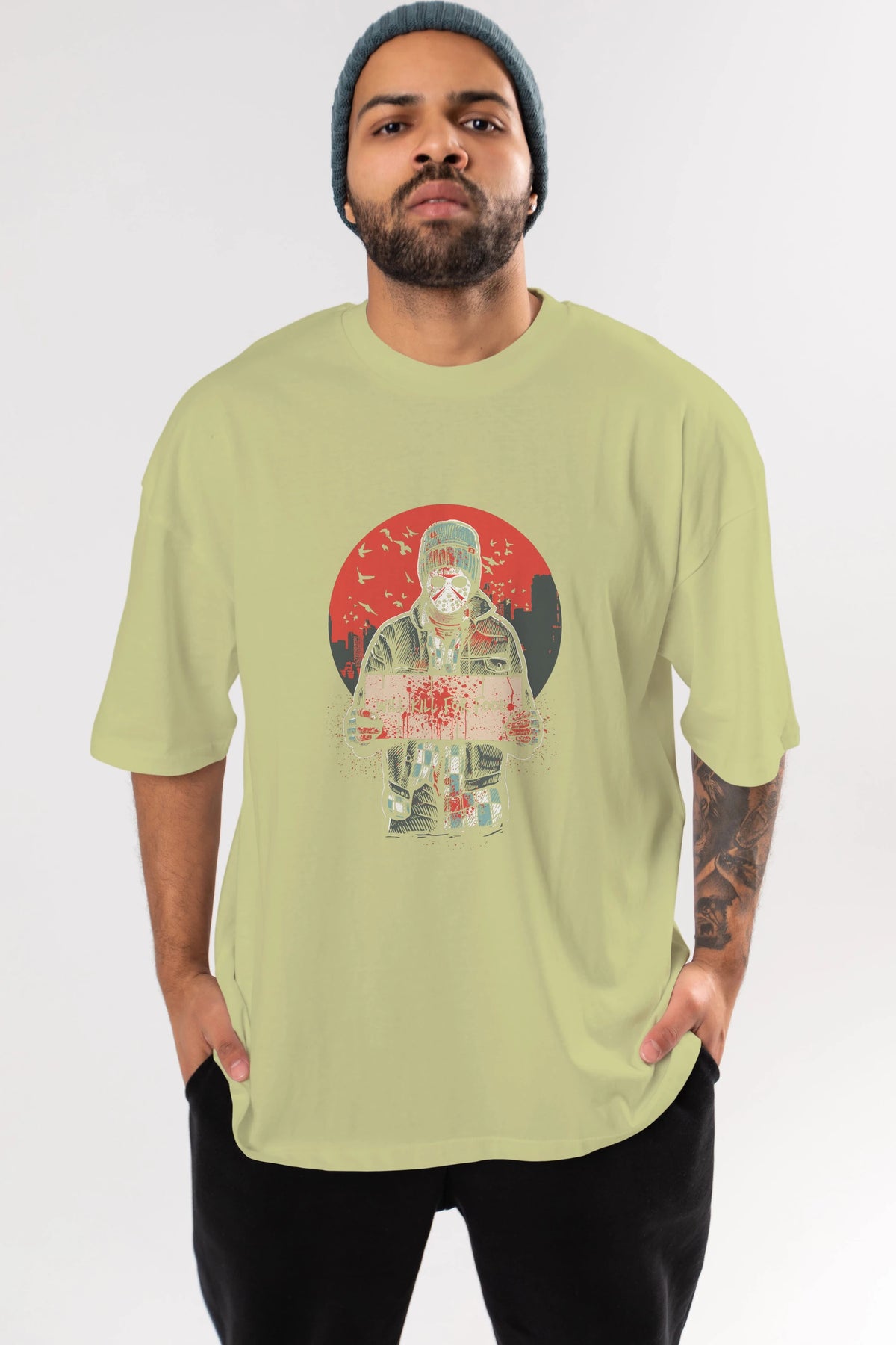 Unisex Baskılı Oversize t-shirt, gardırobunuza mükemmel bir ektir. Yumuşak ve hafif kumaştan üretilen bu şık tişort, kısa kollu ve Oversize uyumu ile tamamlanan klasik bir tasarımına sahiptir. Canlı baskılı grafikler, kalabalığın arasından şık bir şekilde sıyrılmanızı sağlayacaktır. Günlük giyim veya özel günler için mükemmel olan bu çok yönlü tişört, kısa sürede favorilerinizden biri haline gelecektir.