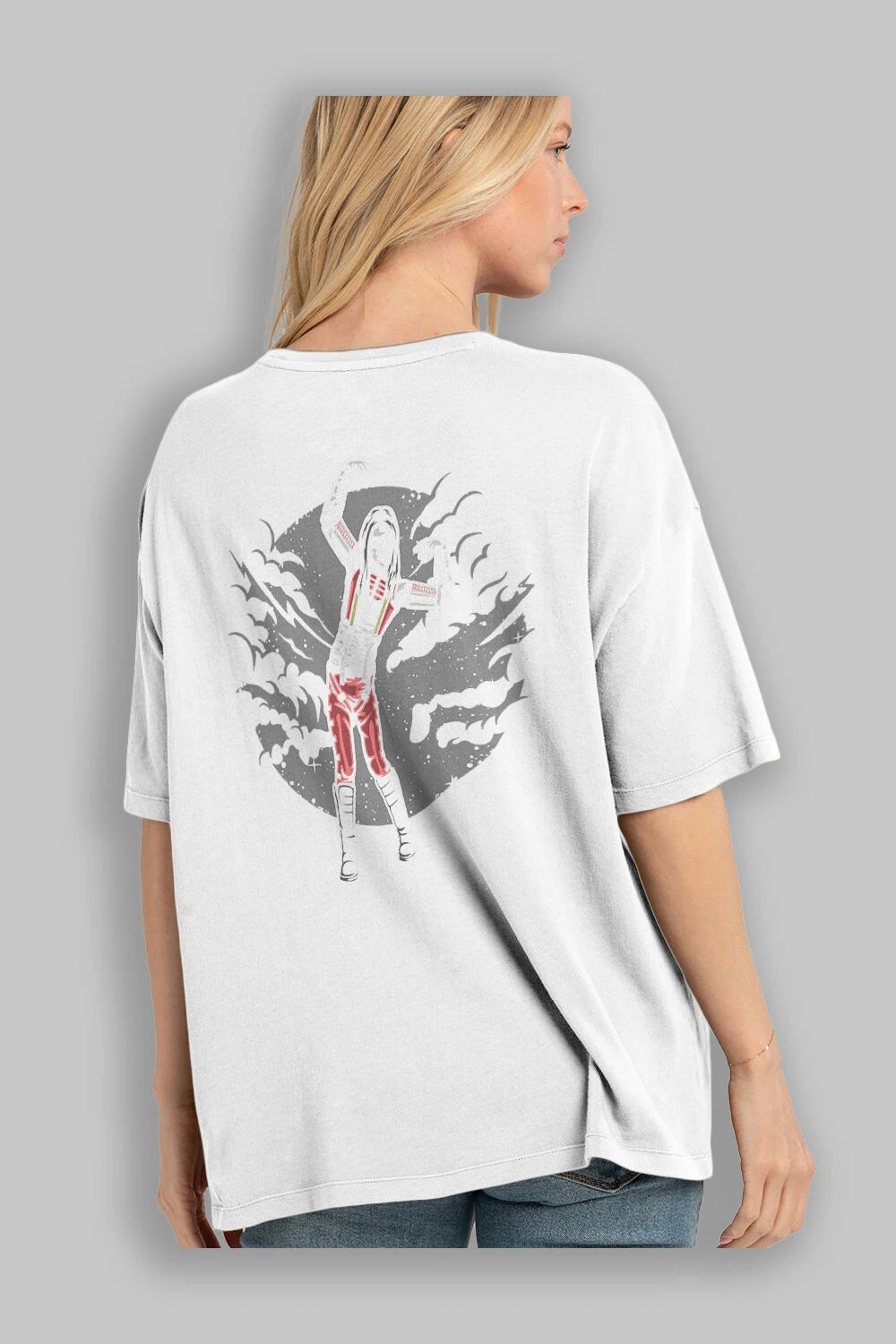 Hem erkekler hem de kadınlar için uygun, taze, modern bir baskıya sahip baskılı oversize t-shirt.