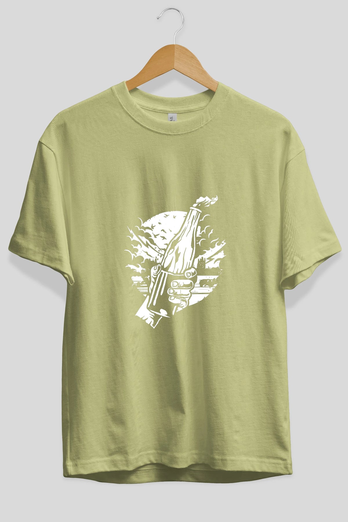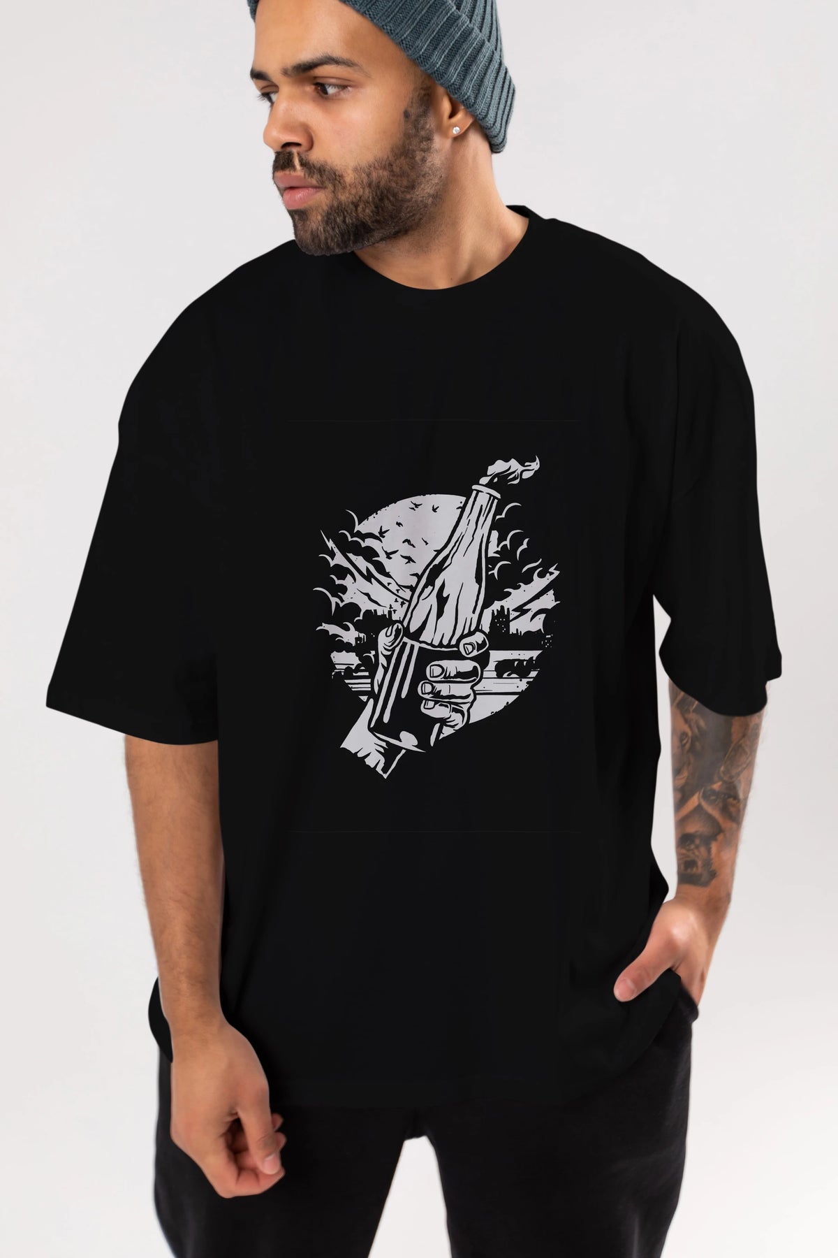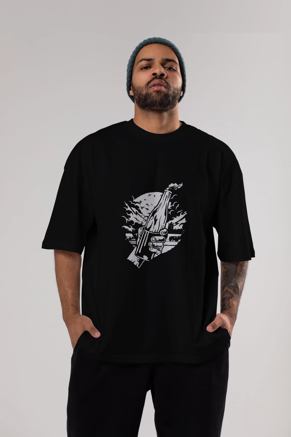 Molotov Cocktail Ön Baskılı Oversize t-shirt Erkek Kadın Unisex %100 Pamuk tişort