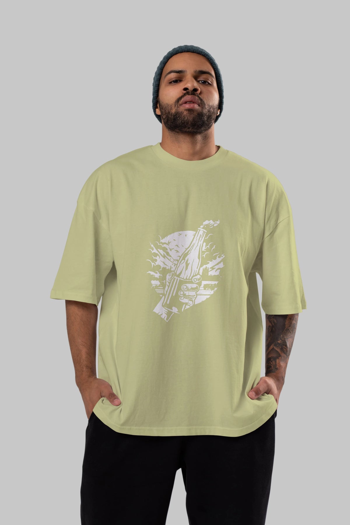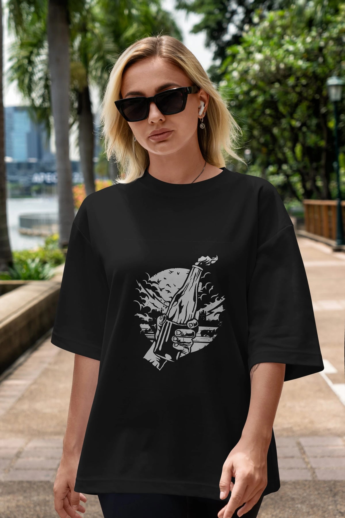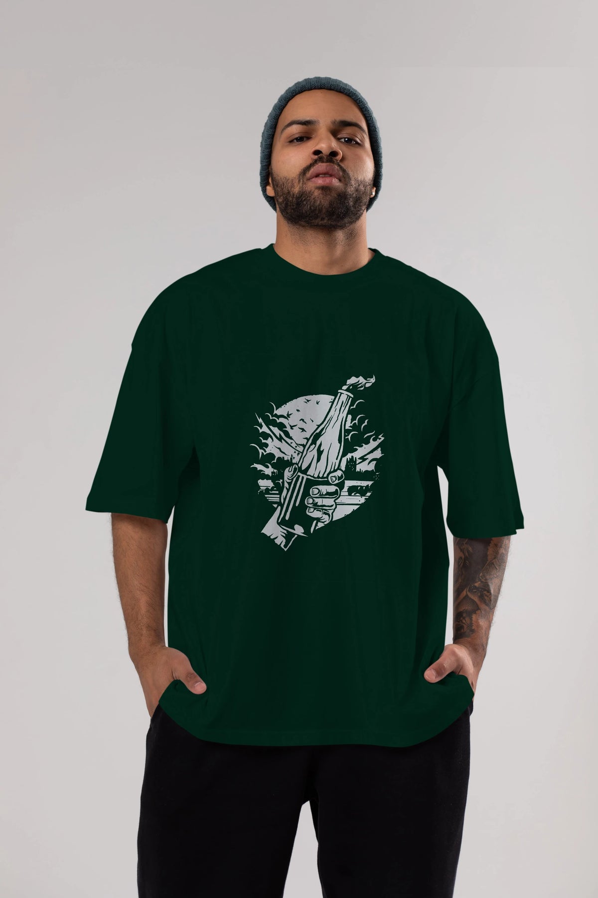 Molotov Cocktail Ön Baskılı Oversize t-shirt Erkek Kadın Unisex %100 Pamuk tişort