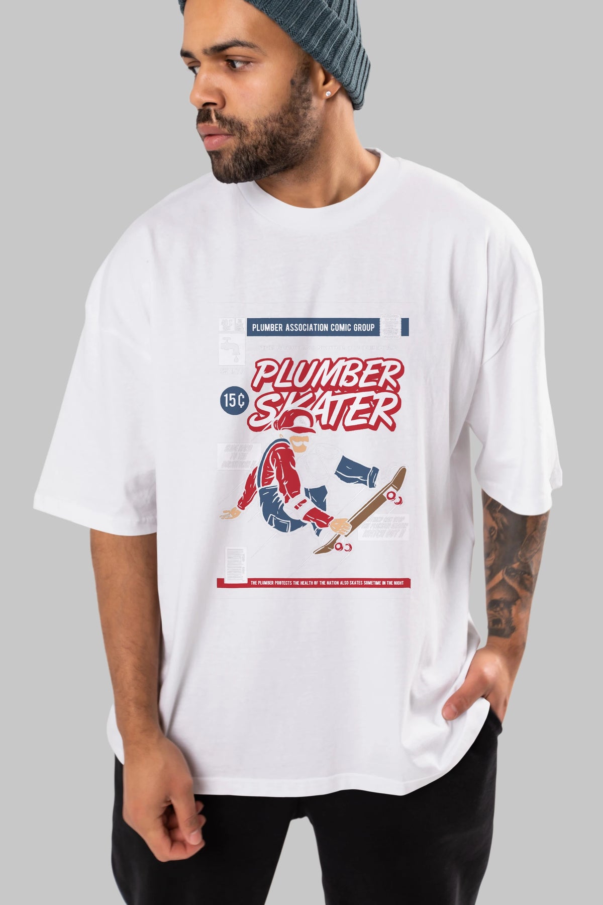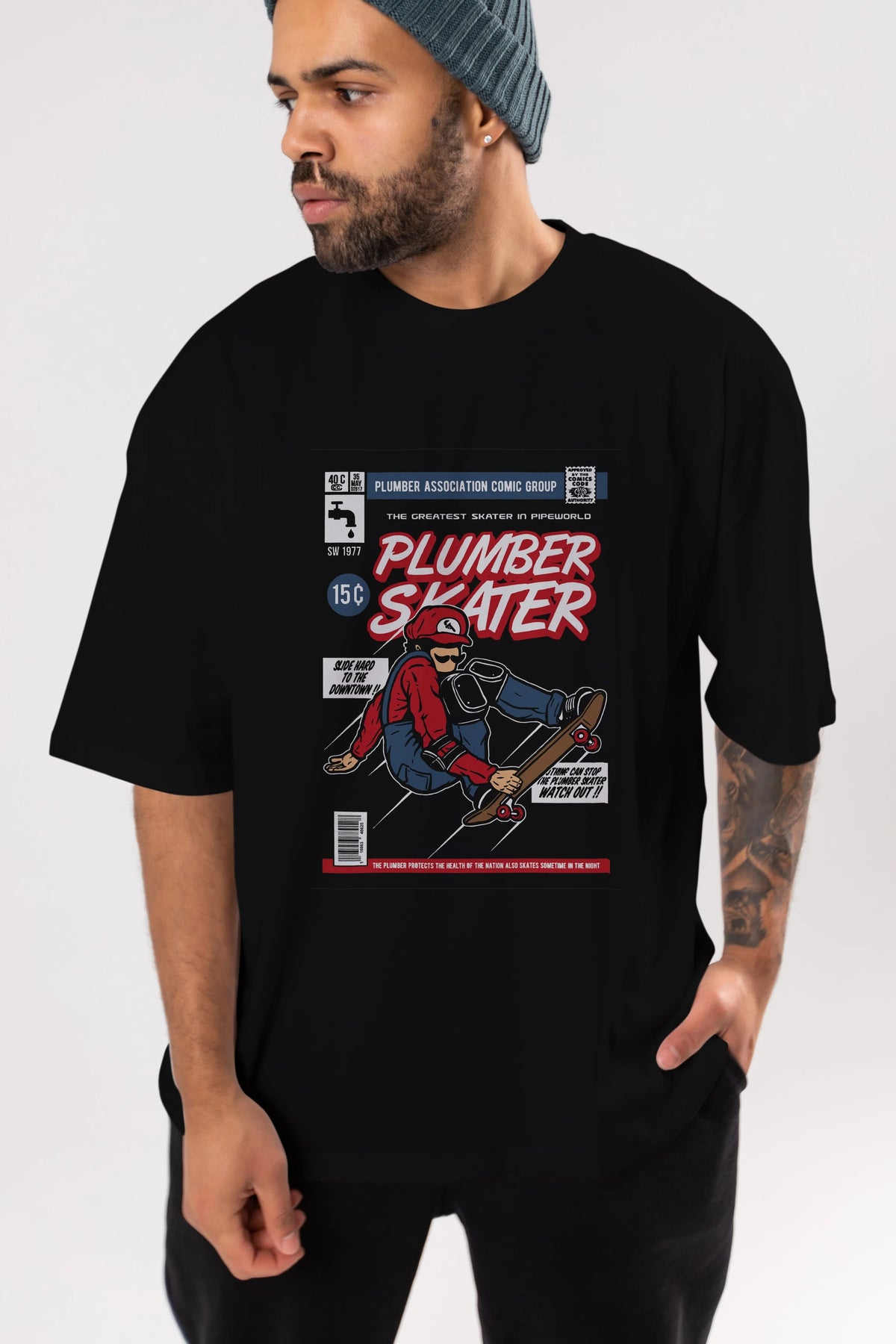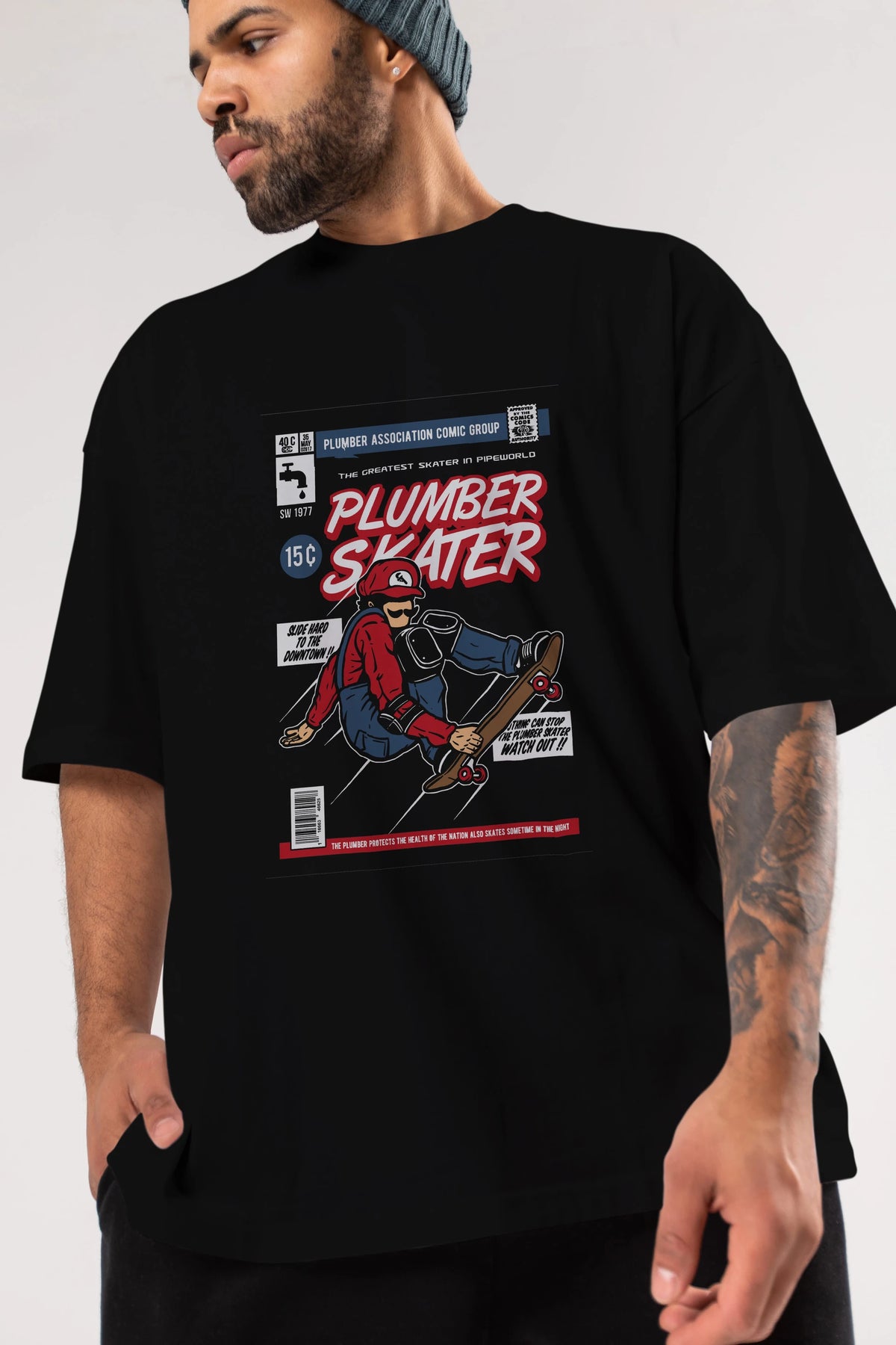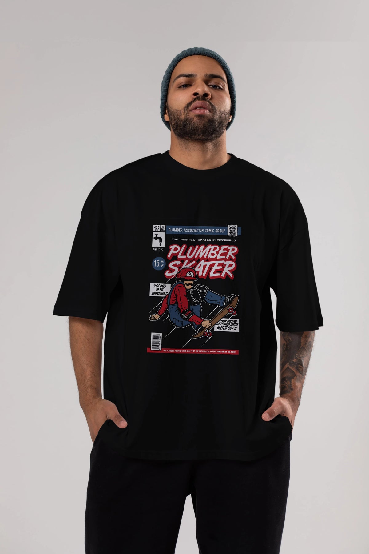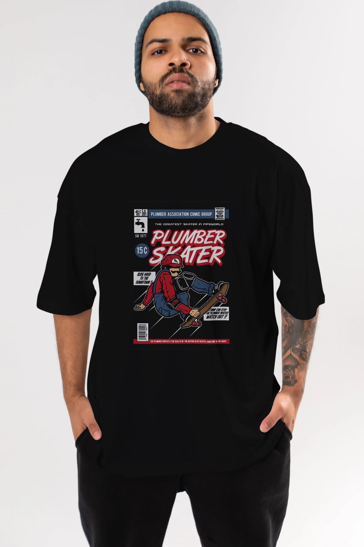 Plumber Skater Ön Baskılı Oversize t-shirt Erkek Kadın Unisex %100 Pamuk tişort
