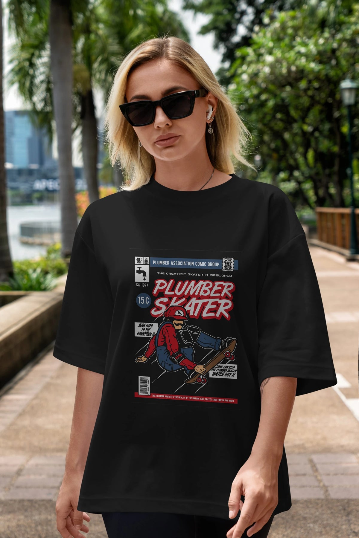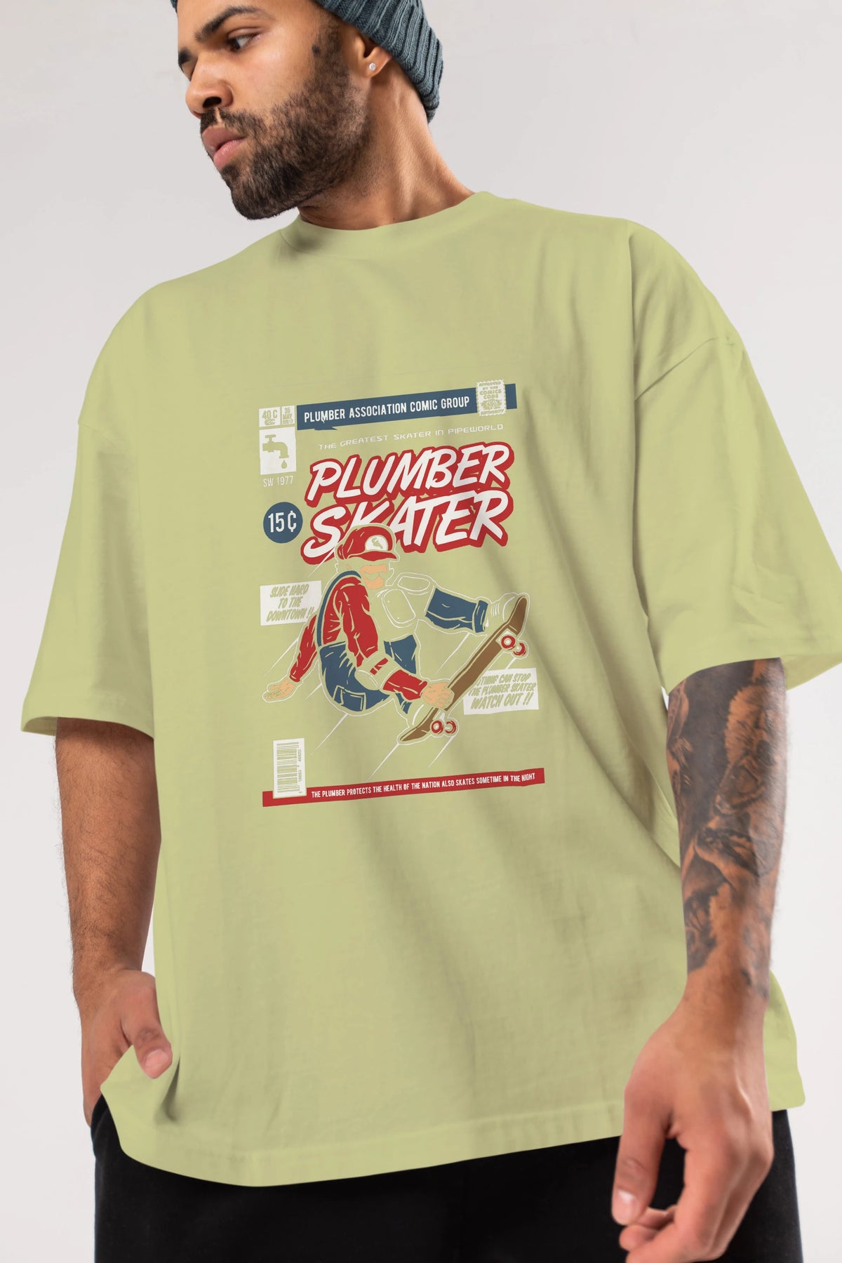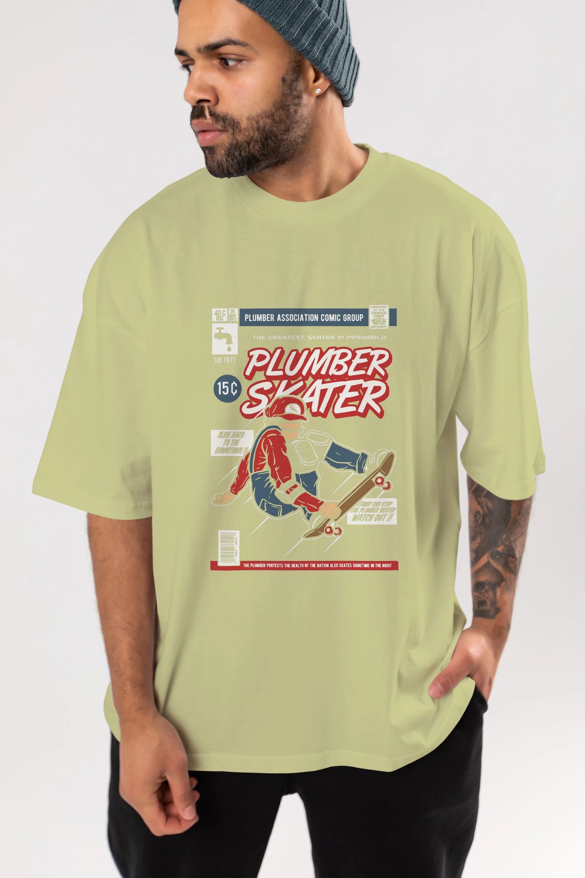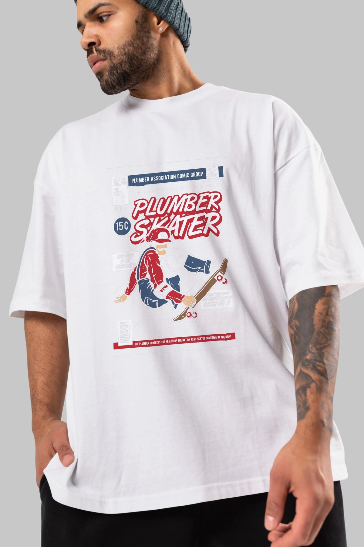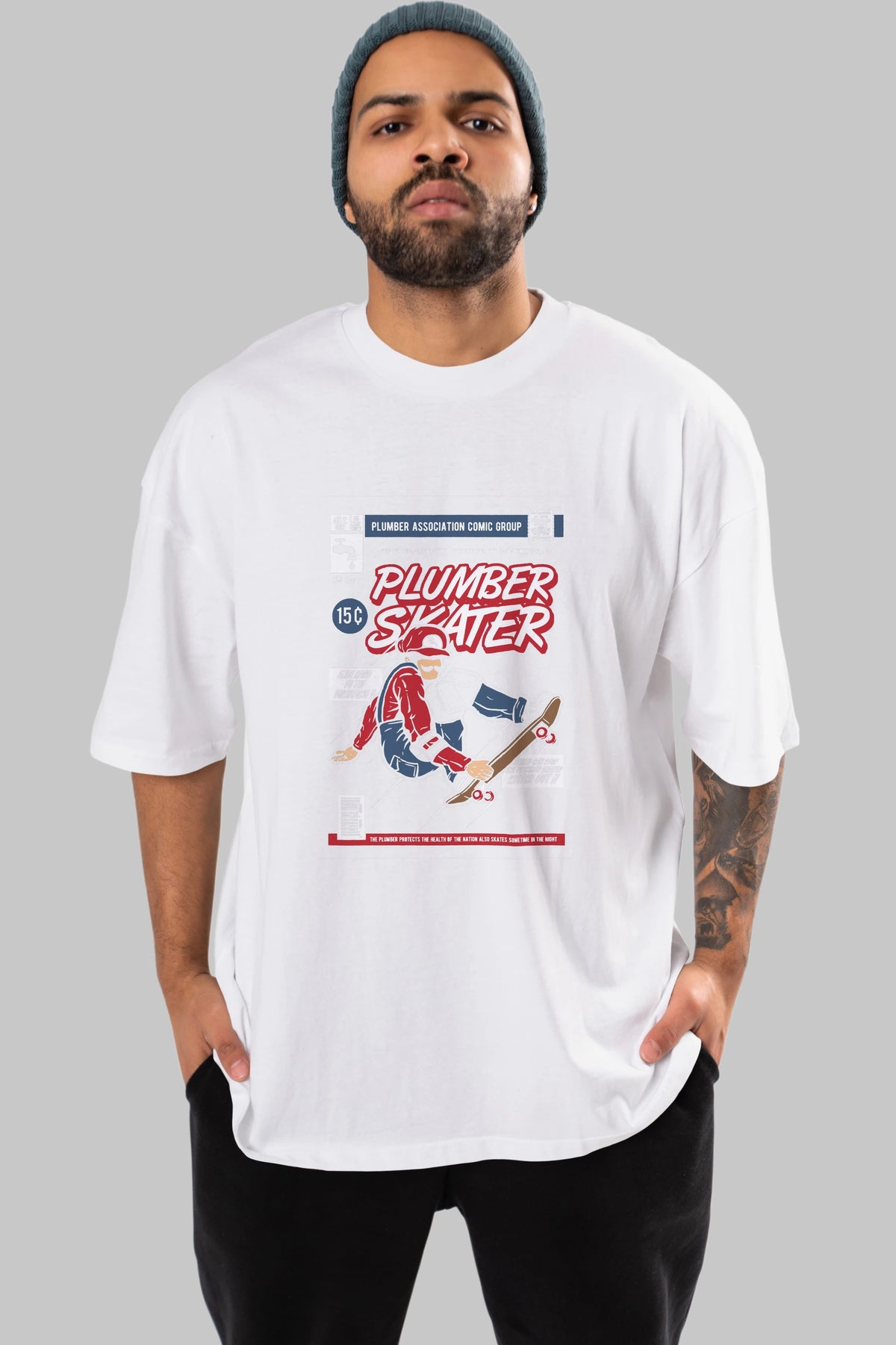 Plumber Skater Ön Baskılı Oversize t-shirt Erkek Kadın Unisex %100 Pamuk tişort