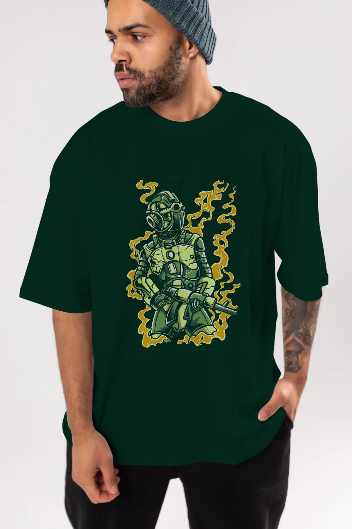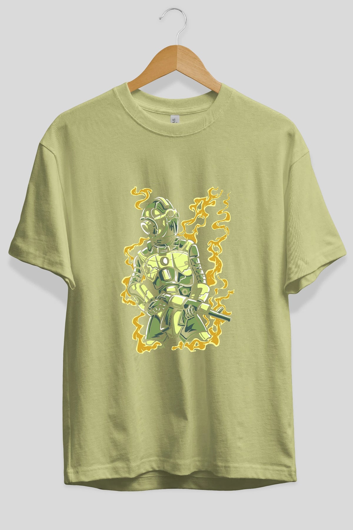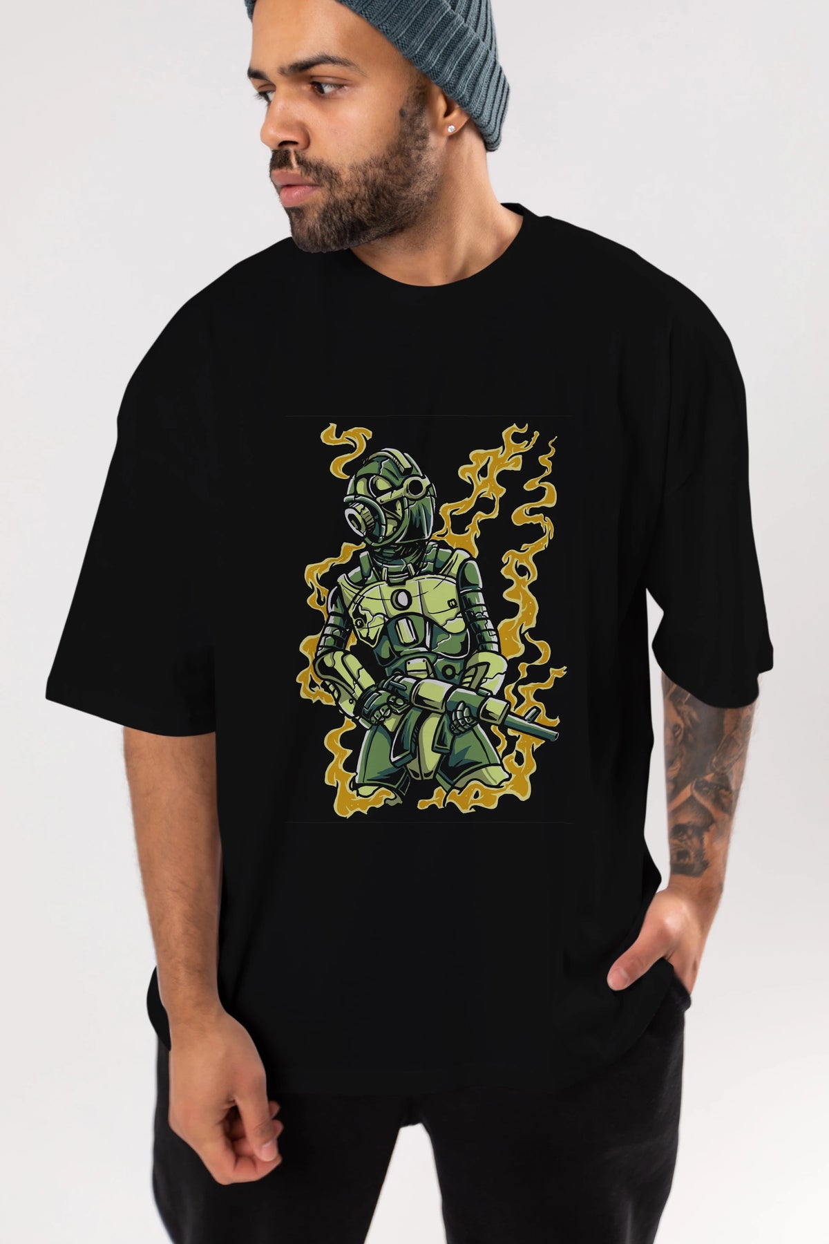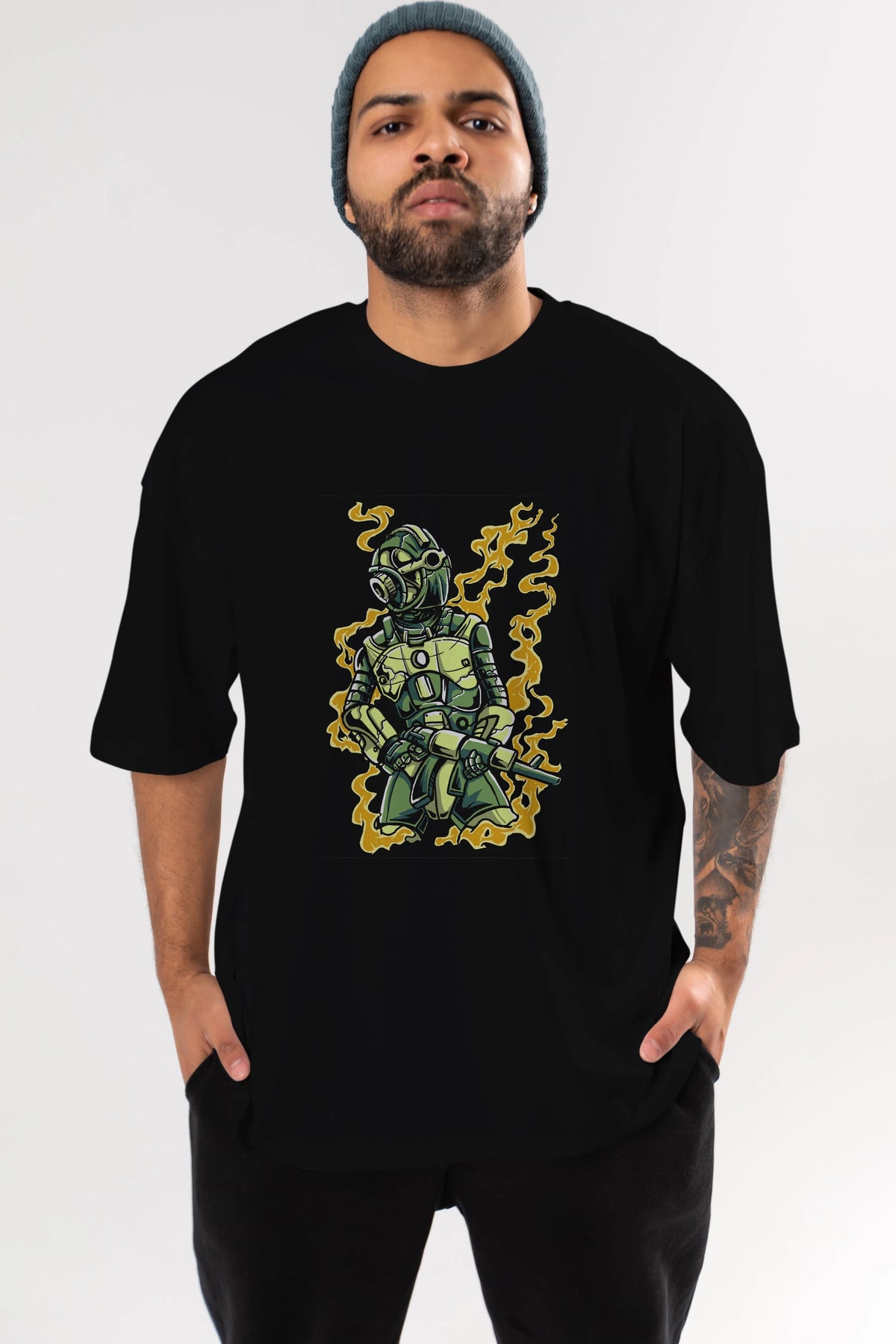 Robot Soldier Ön Baskılı Oversize t-shirt Erkek Kadın Unisex %100 Pamuk tişort
