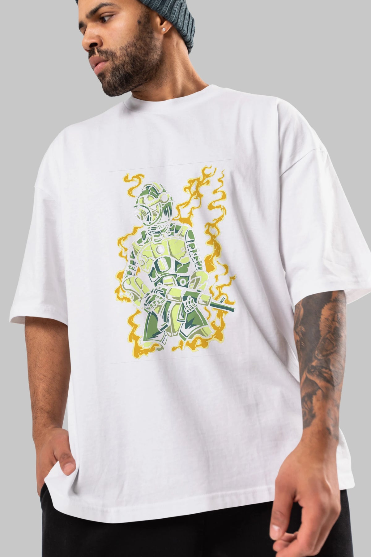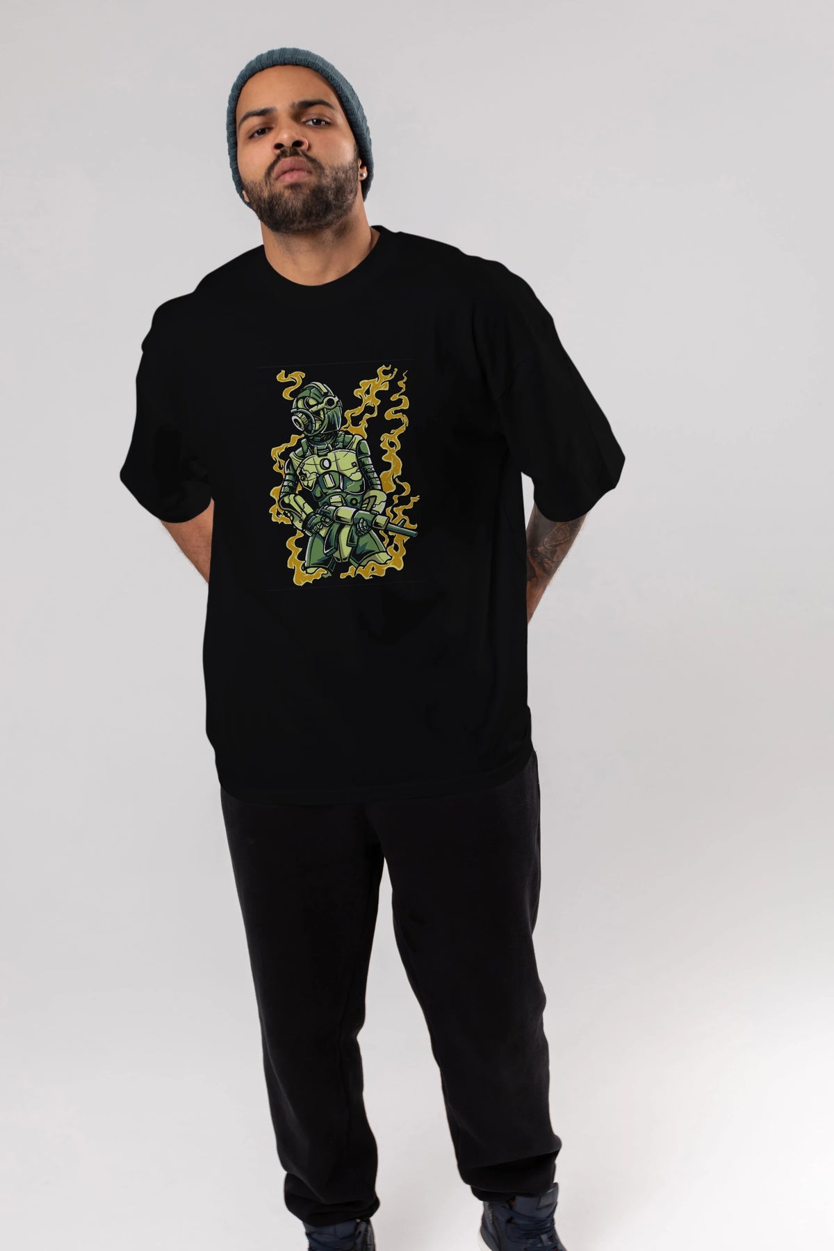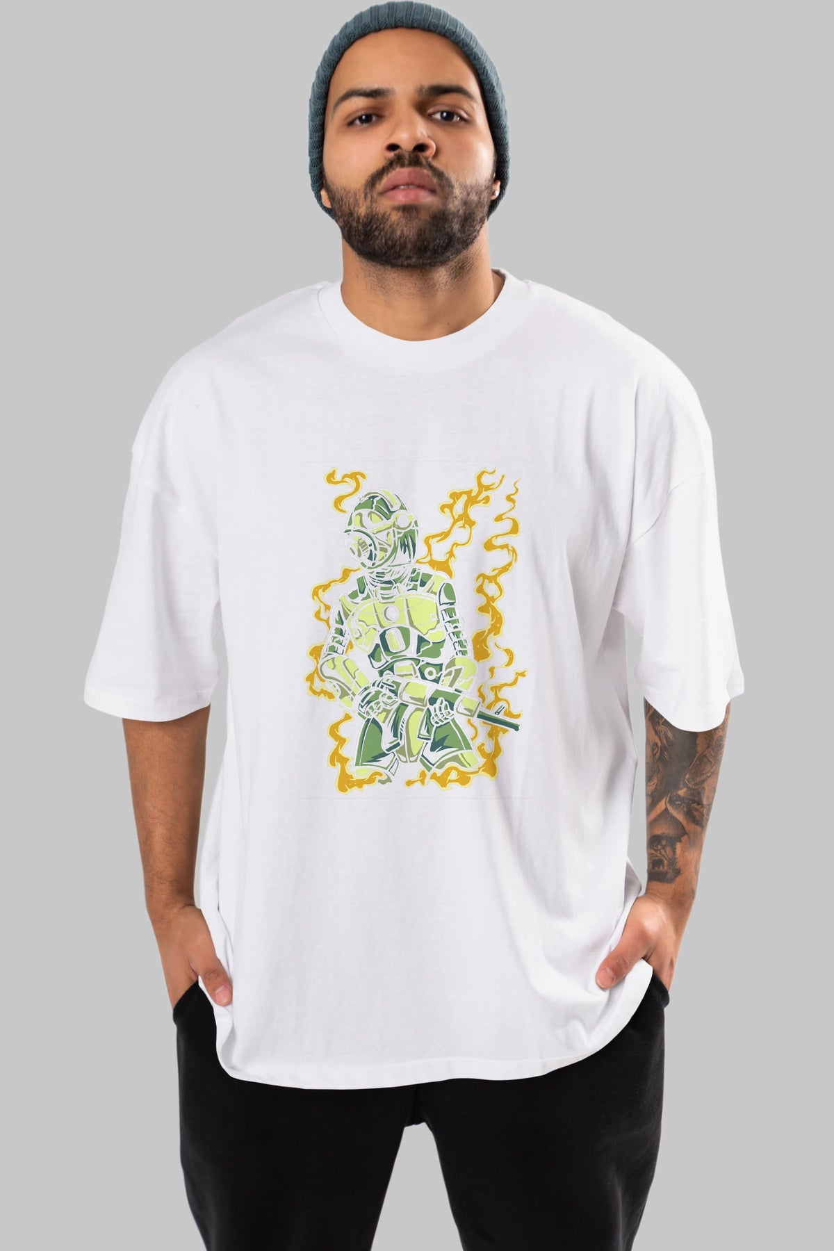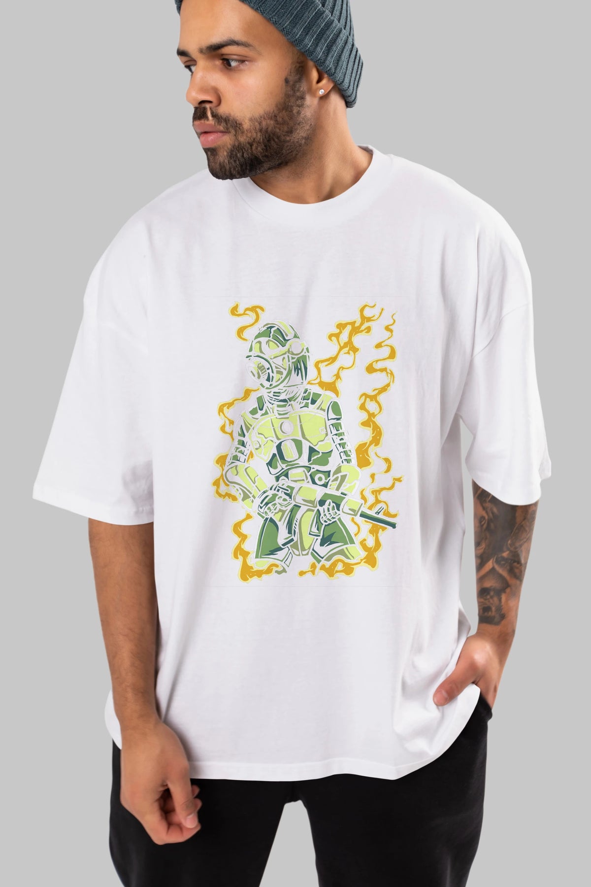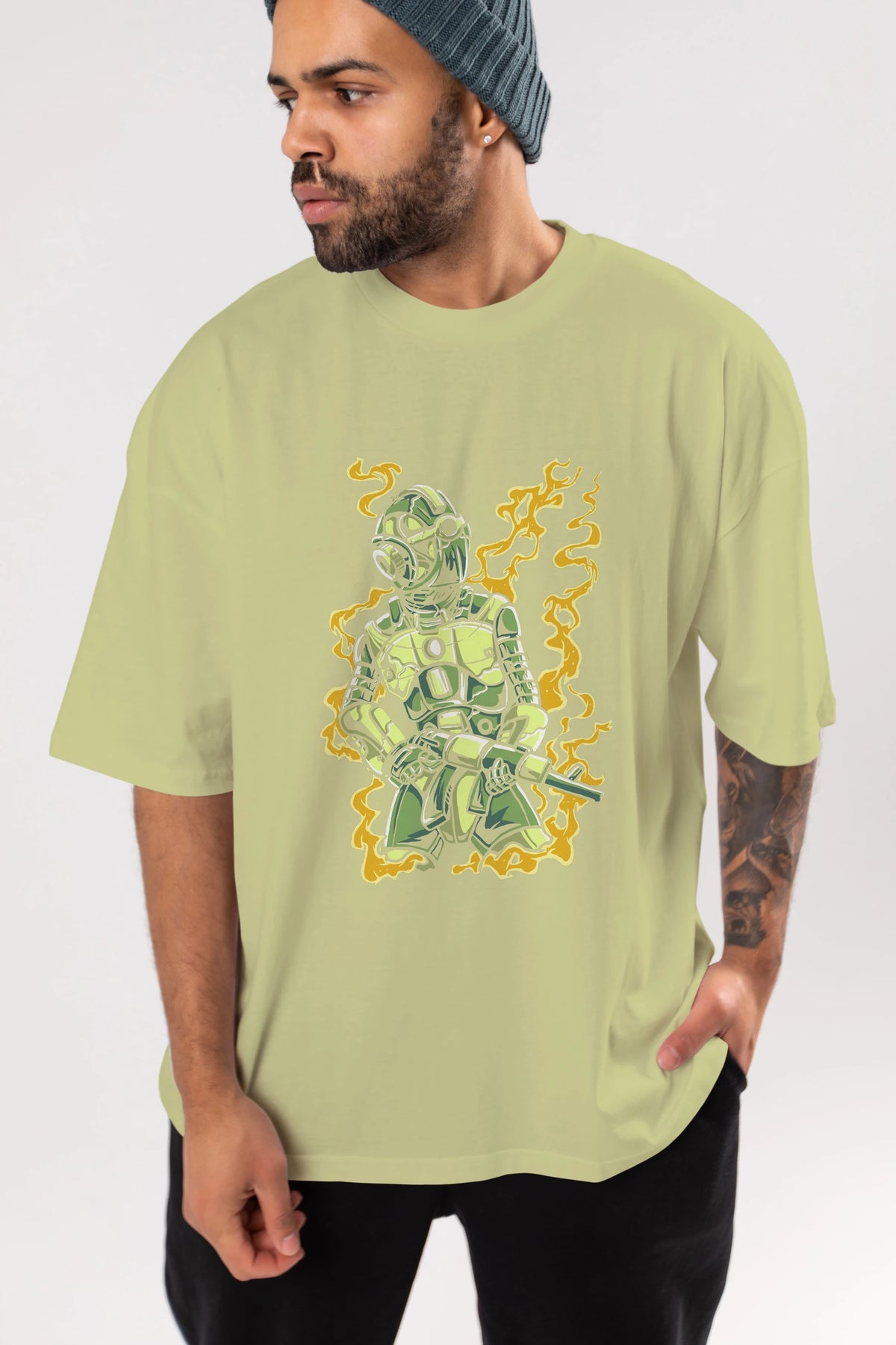 Robot Soldier Ön Baskılı Oversize t-shirt Erkek Kadın Unisex %100 Pamuk tişort