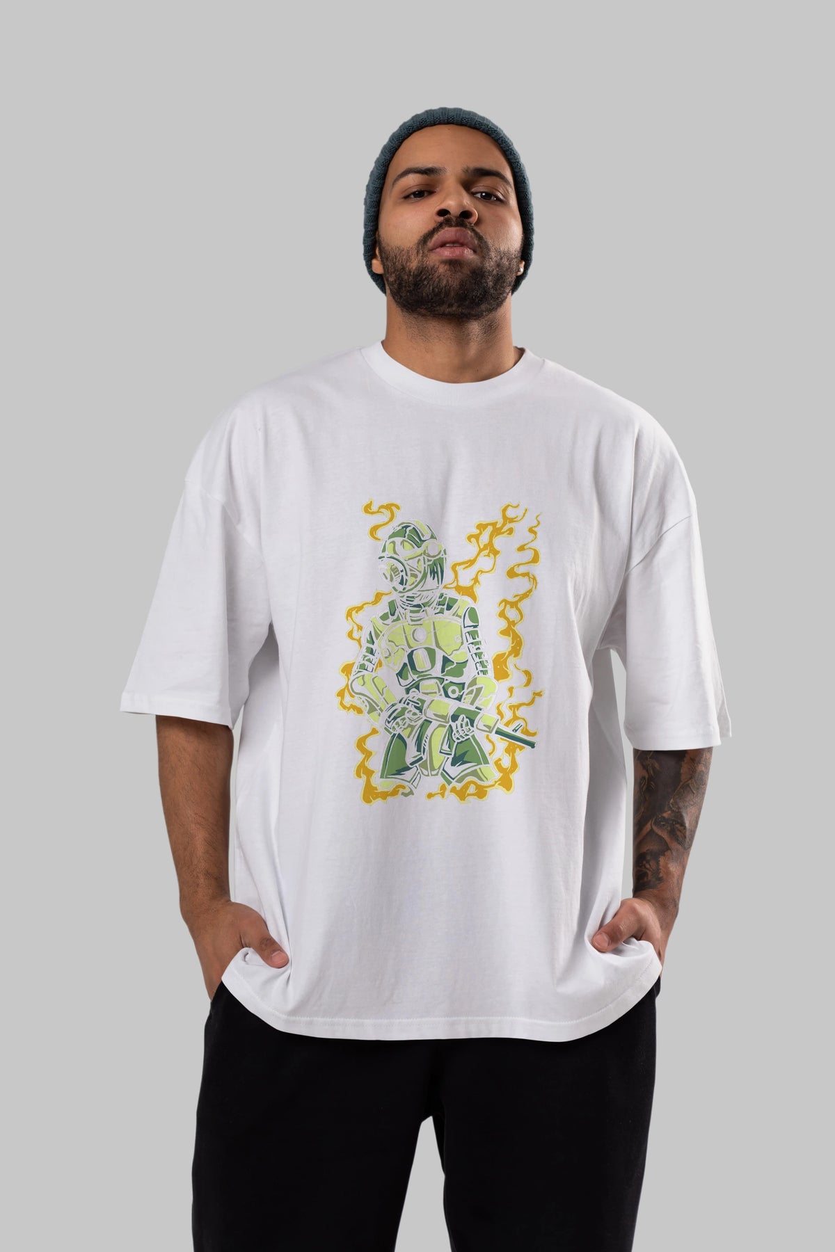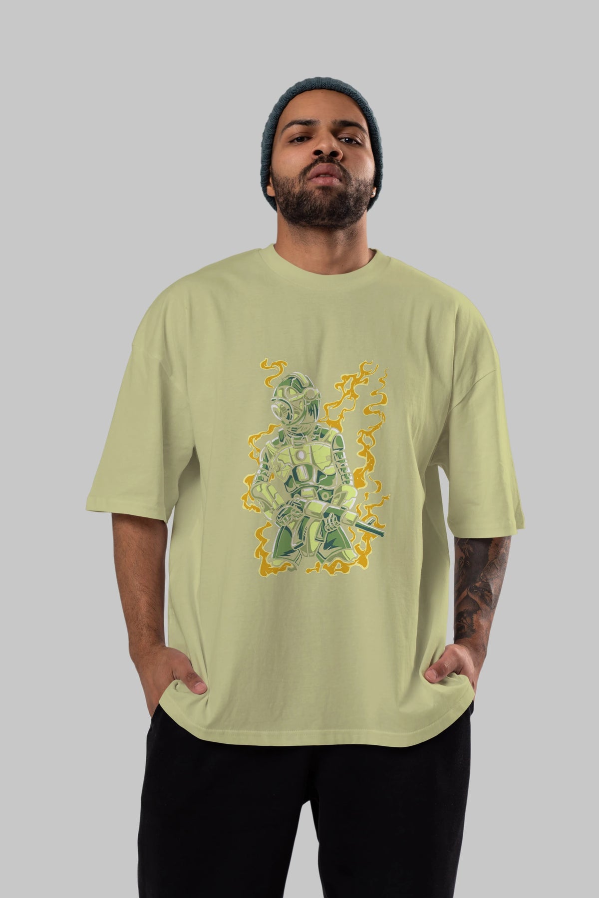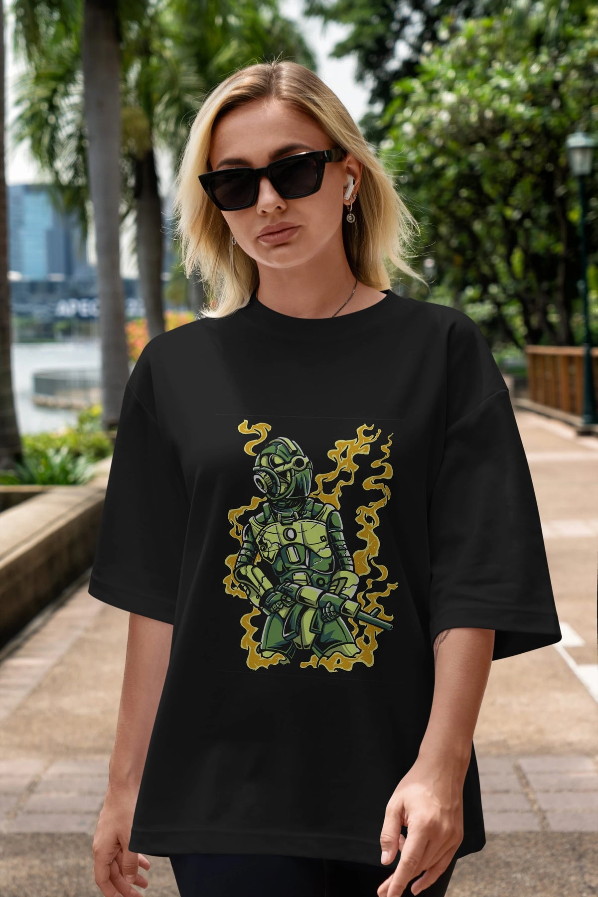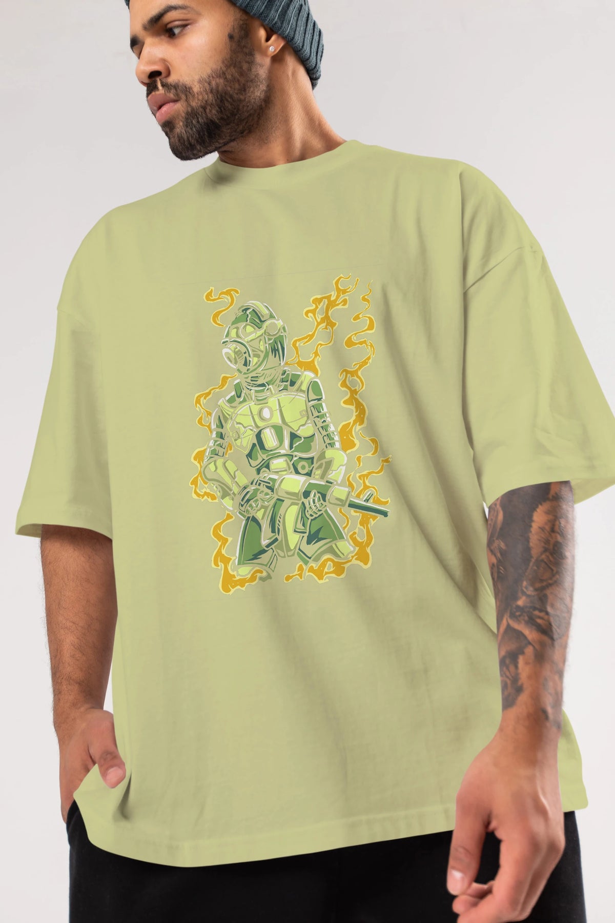 Robot Soldier Ön Baskılı Oversize t-shirt Erkek Kadın Unisex %100 Pamuk tişort