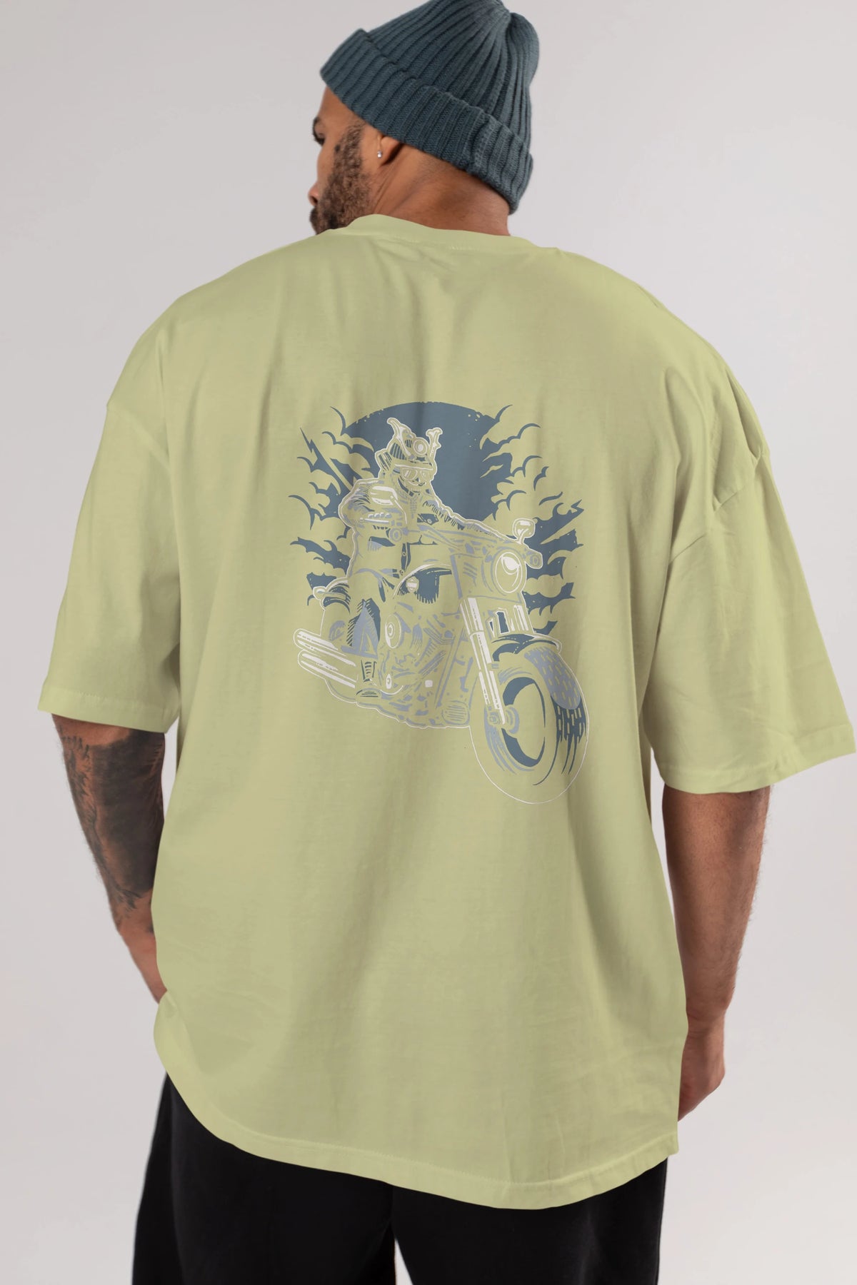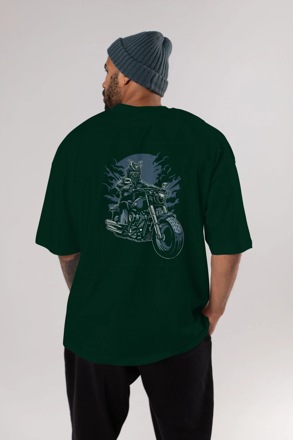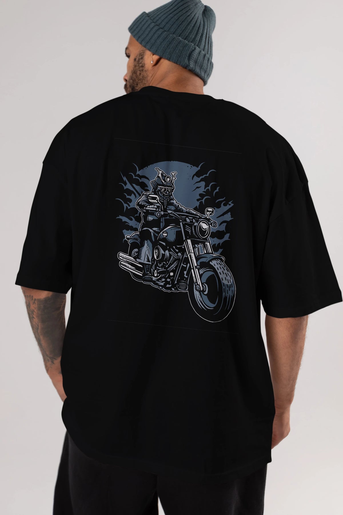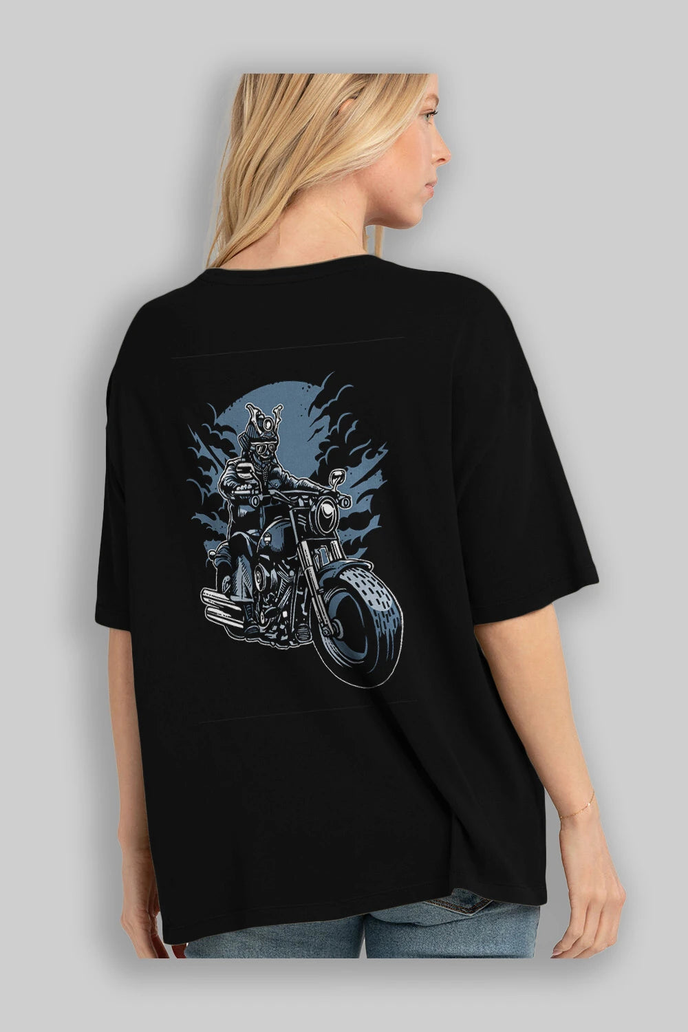 Samurai Ride Arka Baskılı Oversize t-shirt Erkek Kadın Unisex %100 Pamuk