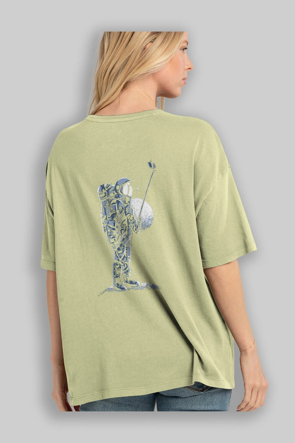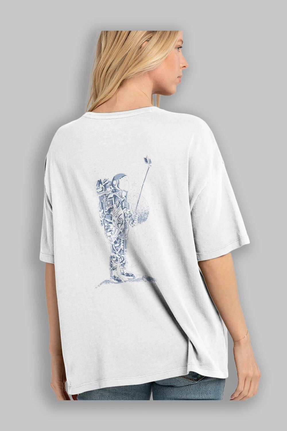 Selfie Astronaut Arka Baskılı Oversize t-shirt Erkek Kadın Unisex %100 Pamuk