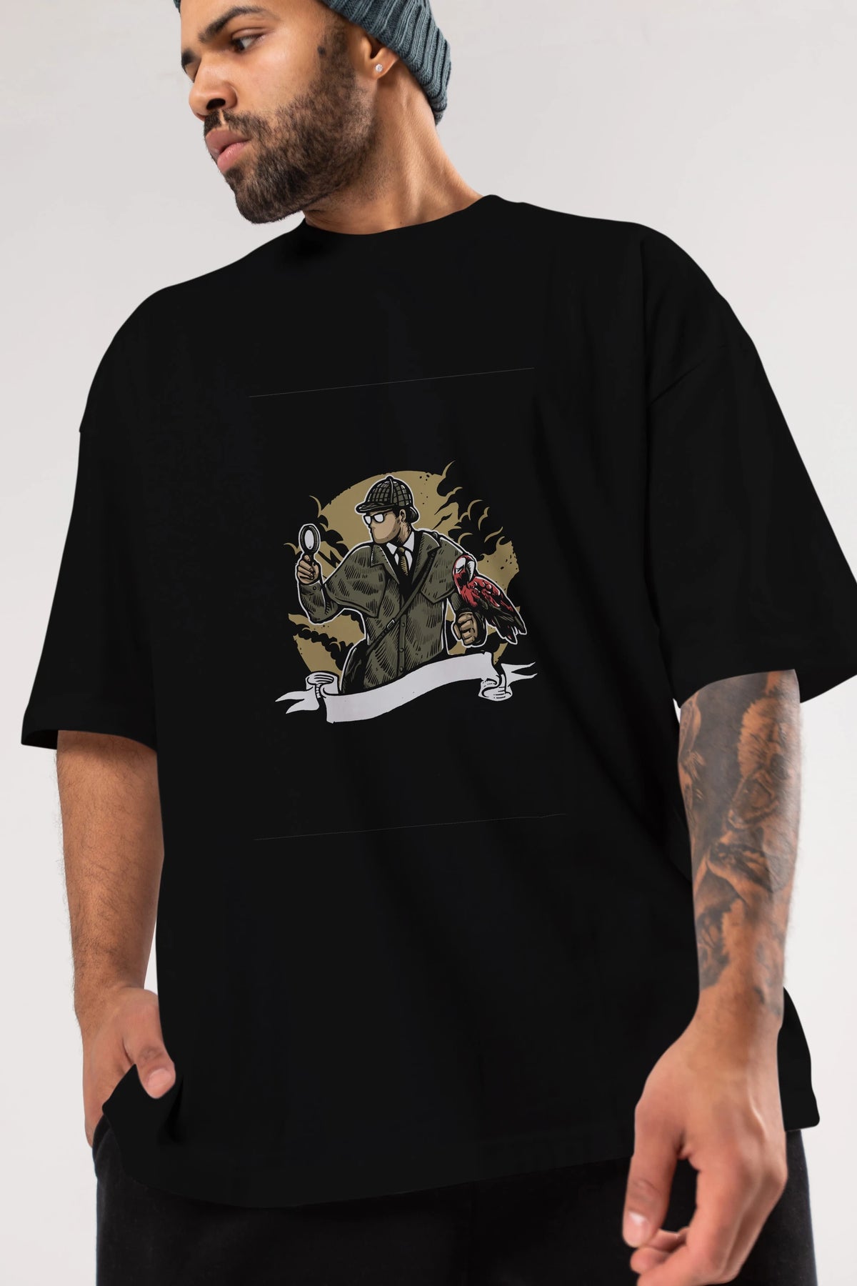 Sherlock Holmes Ön Baskılı Oversize t-shirt Erkek Kadın Unisex %100 Pamuk tişort
