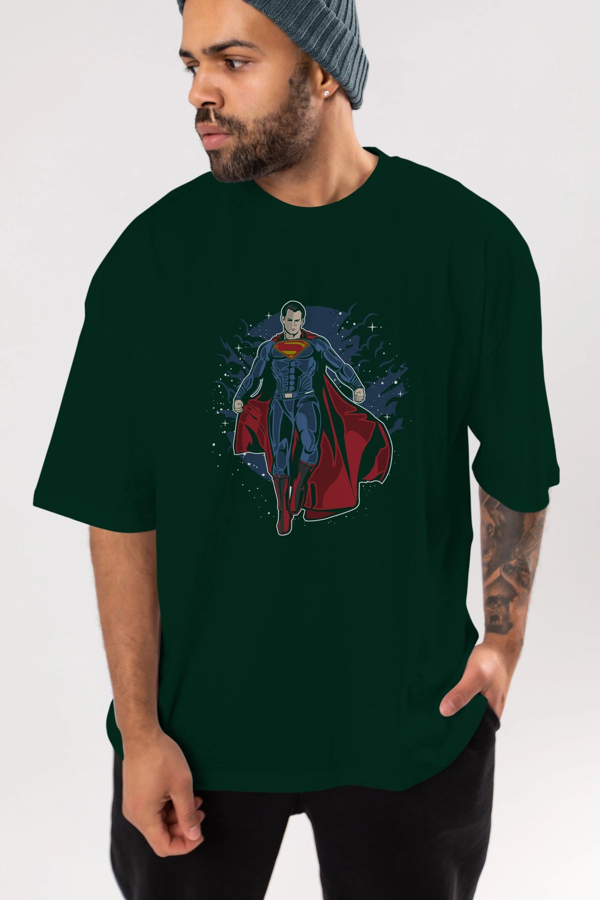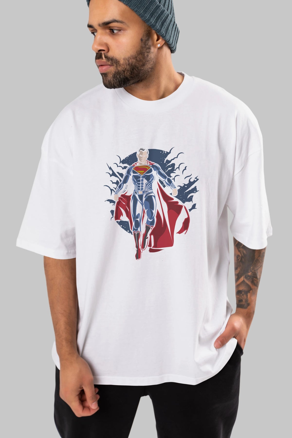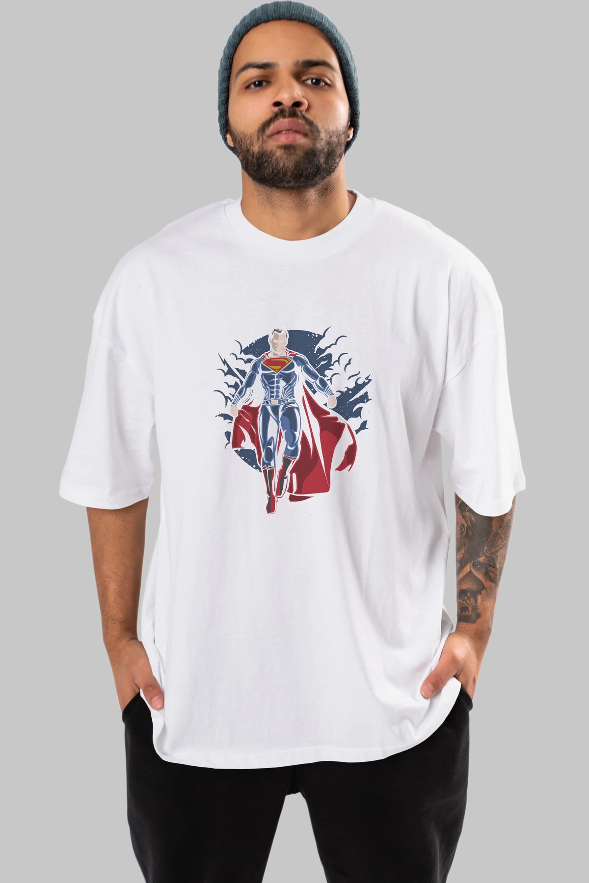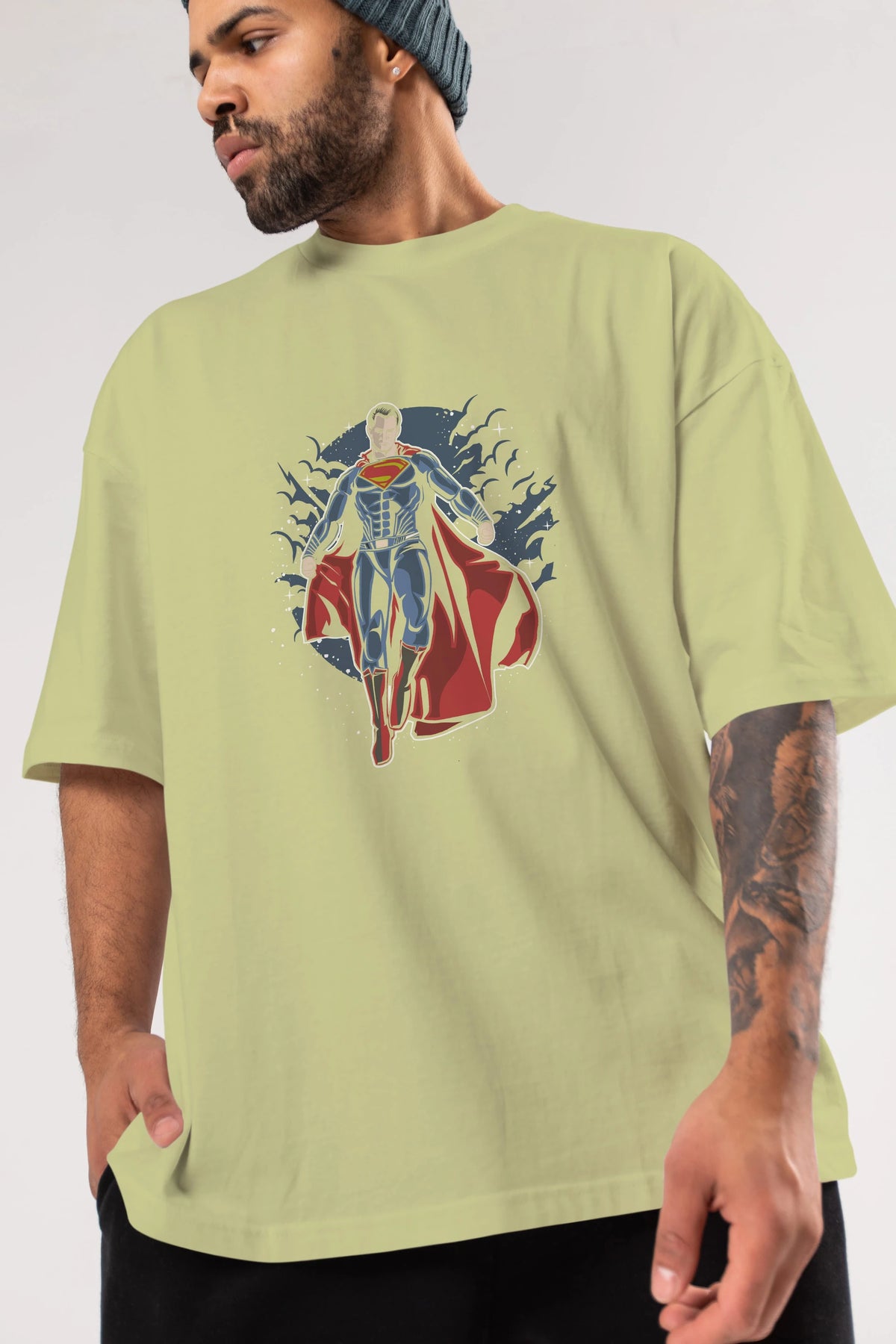 SUPERMAN Ön Baskılı Oversize t-shirt Erkek Kadın Unisex %100 Pamuk tişort