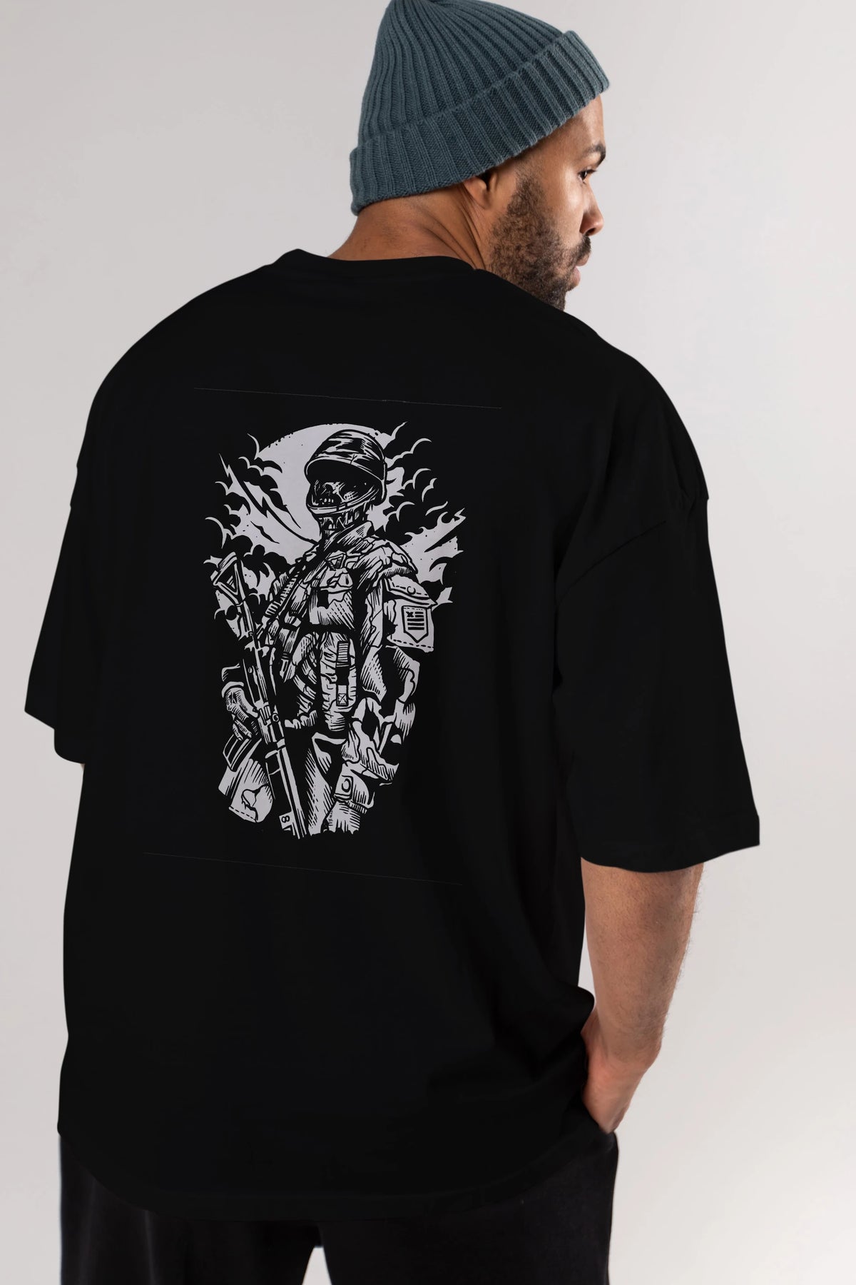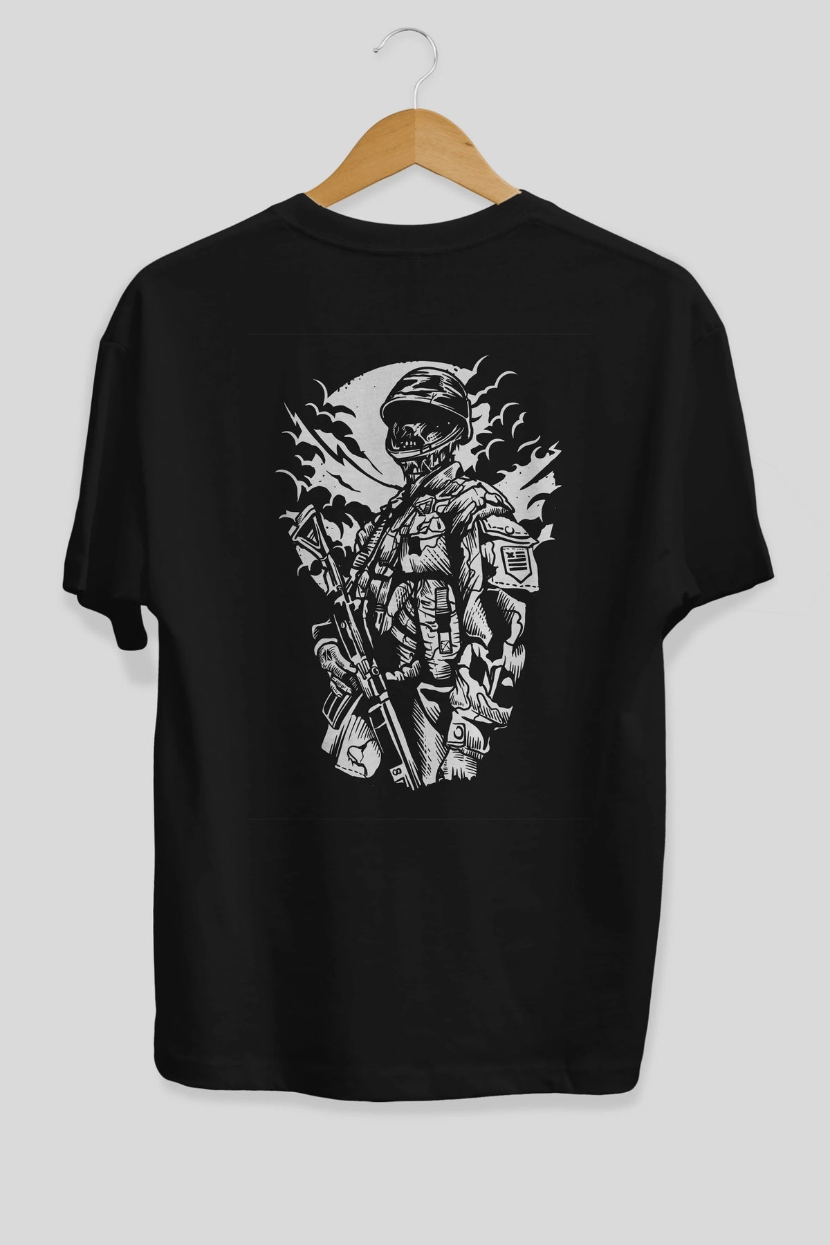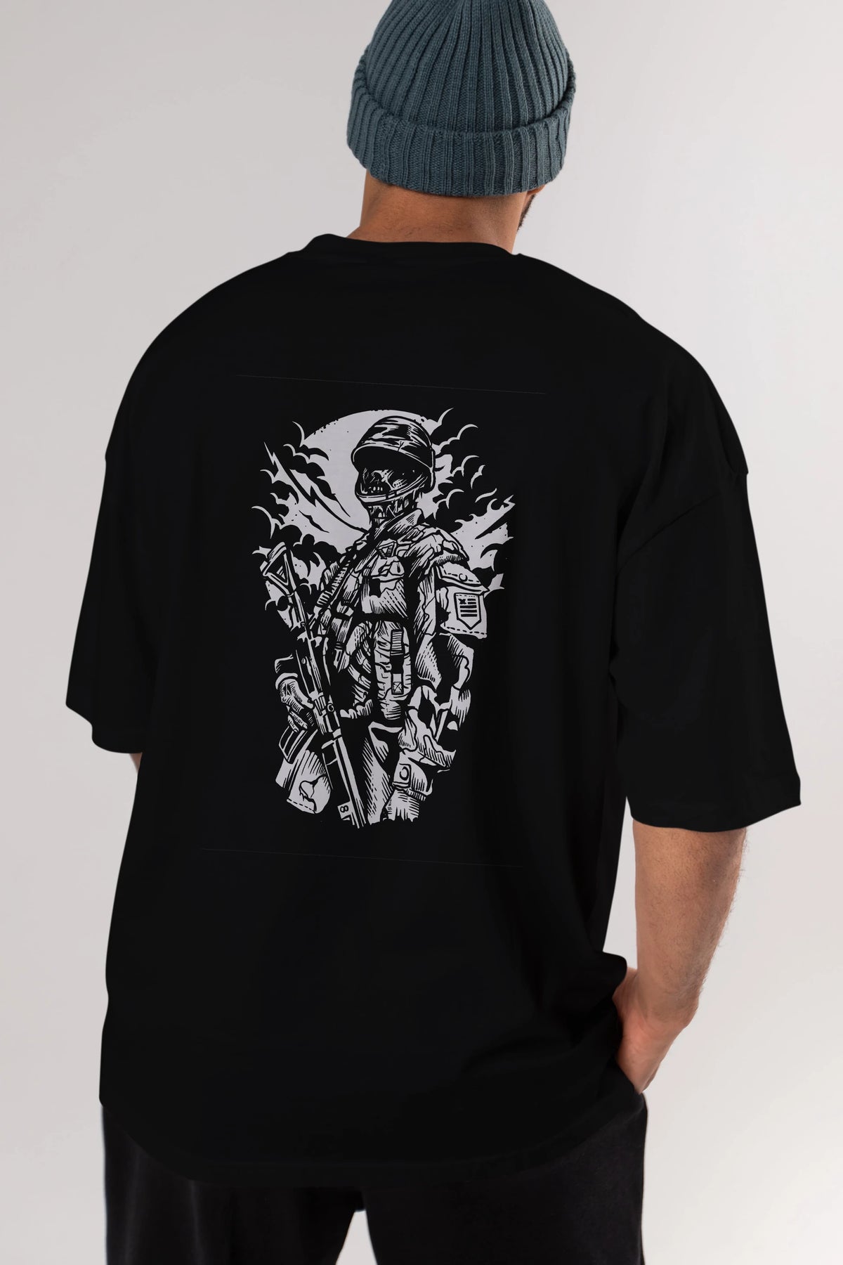 Zombie Soldier Arka Baskılı Oversize t-shirt Erkek Kadın Unisex %100 Pamuk