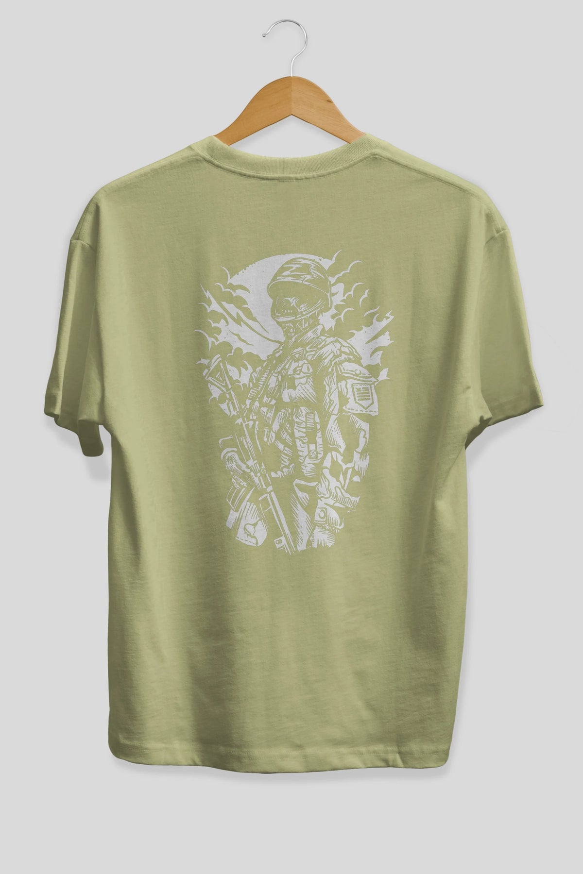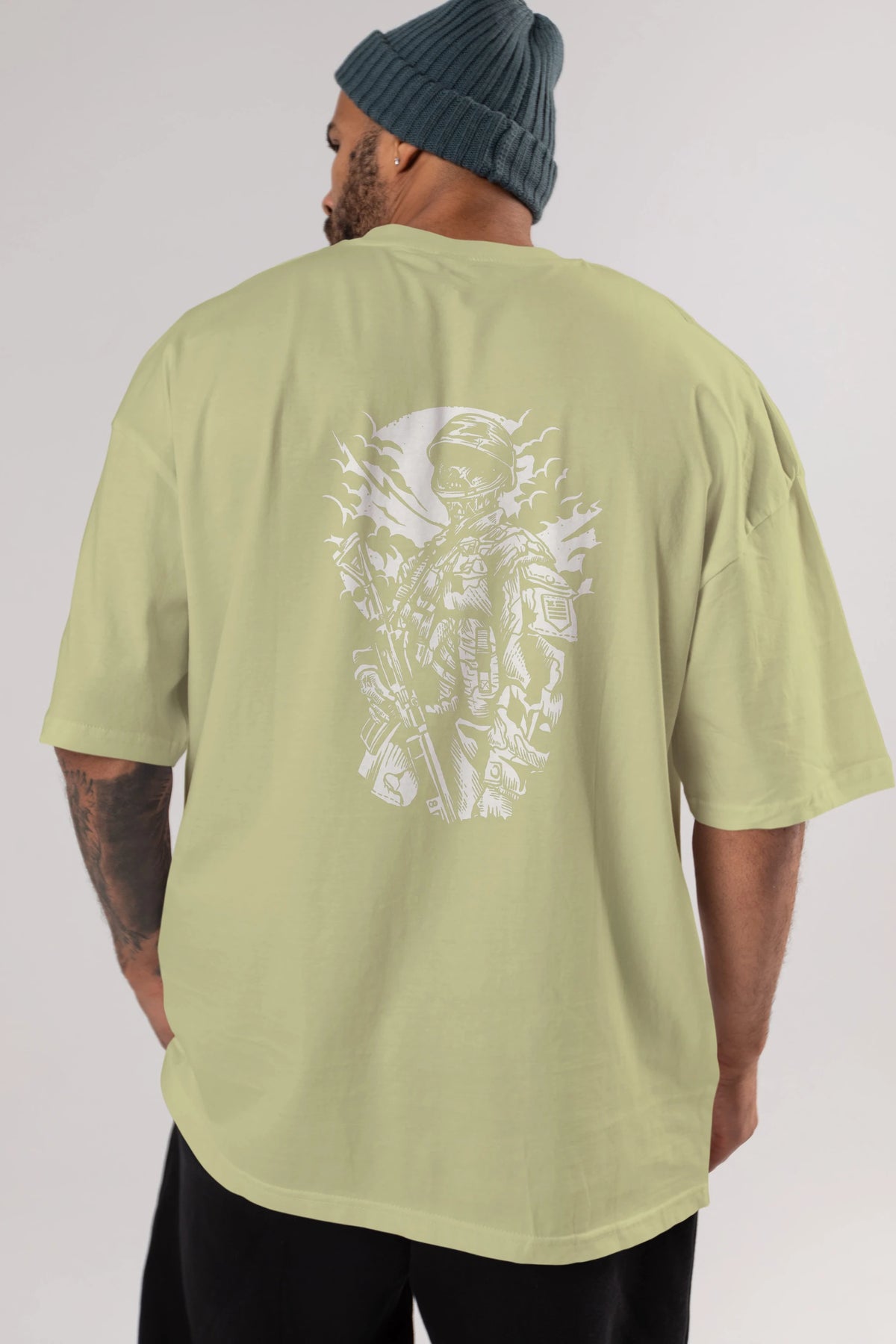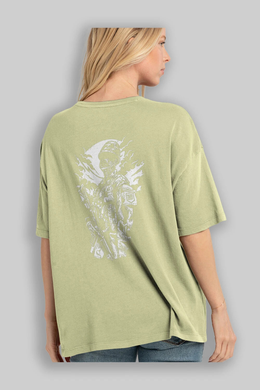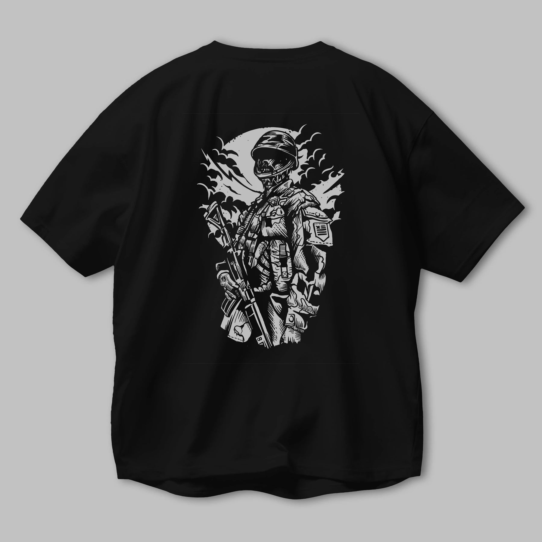 Zombie Soldier Arka Baskılı Oversize t-shirt Erkek Kadın Unisex %100 Pamuk