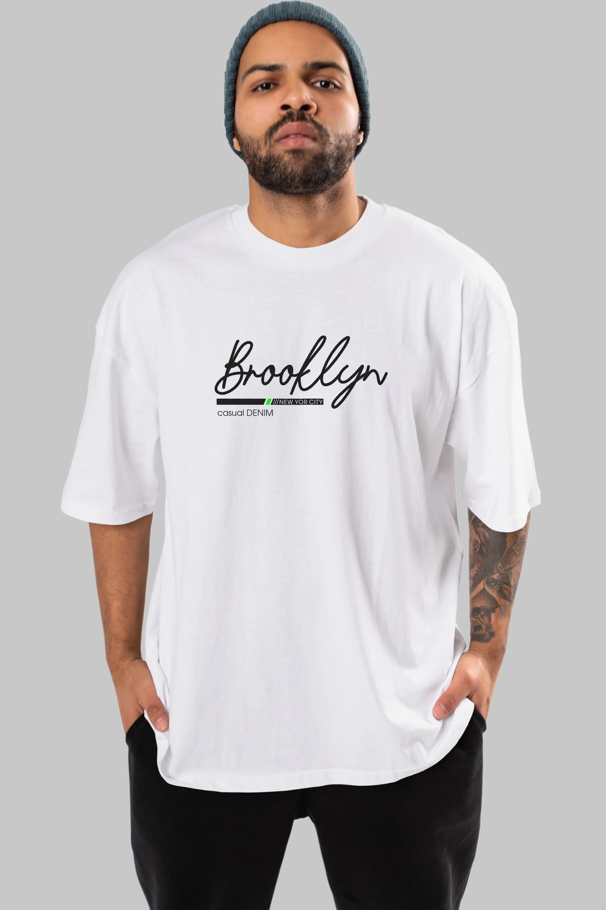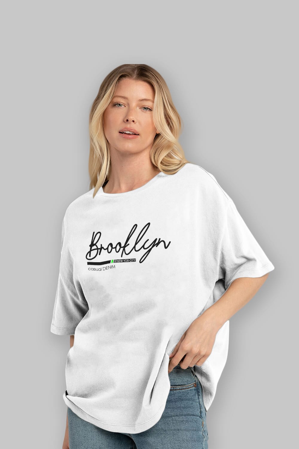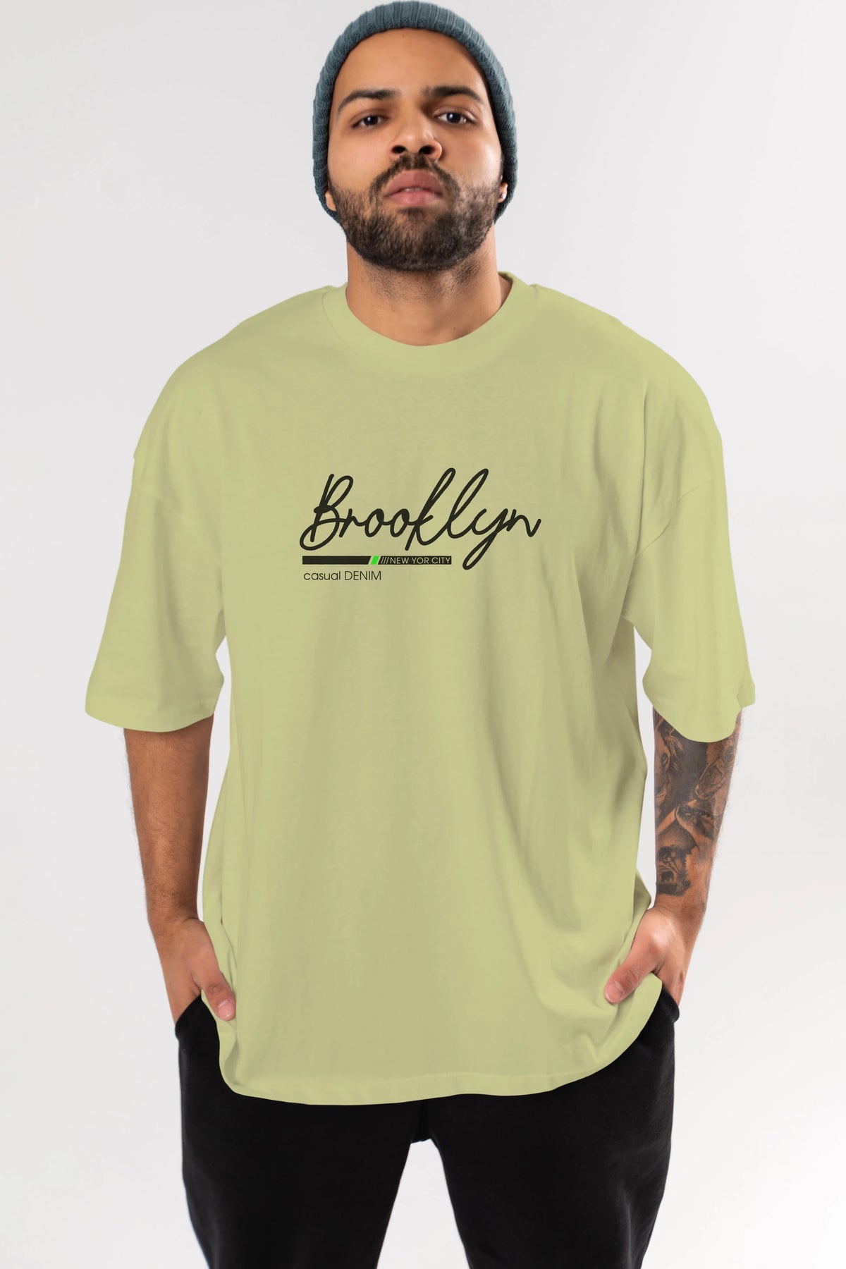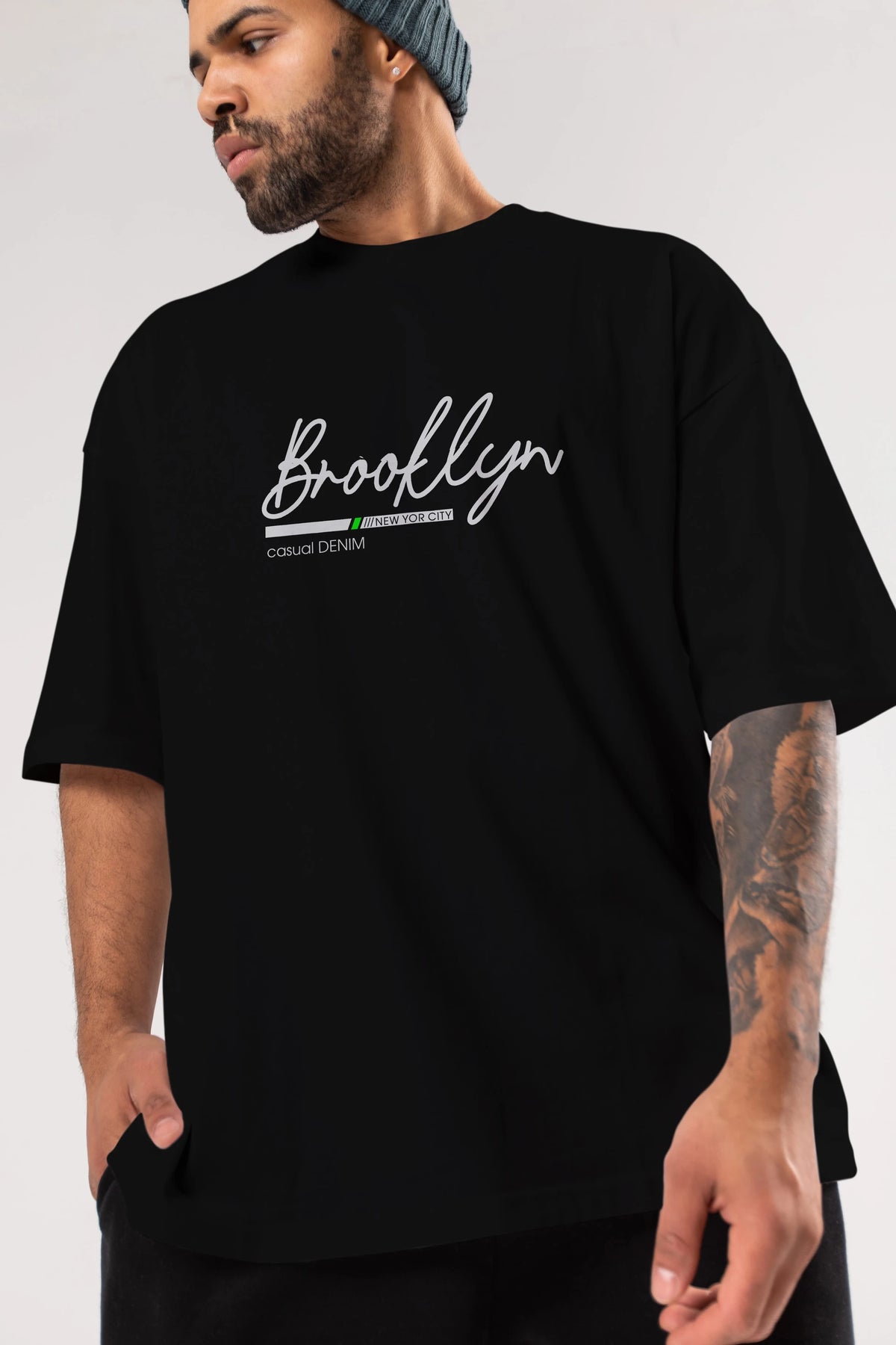 Brooklyn Denim Ön Baskılı Oversize t-shirt Erkek Kadın Unisex