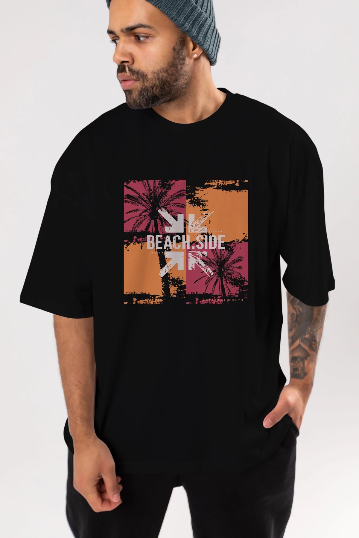 Beach Side Ön Baskılı Oversize t-shirt Erkek Kadın Unisex