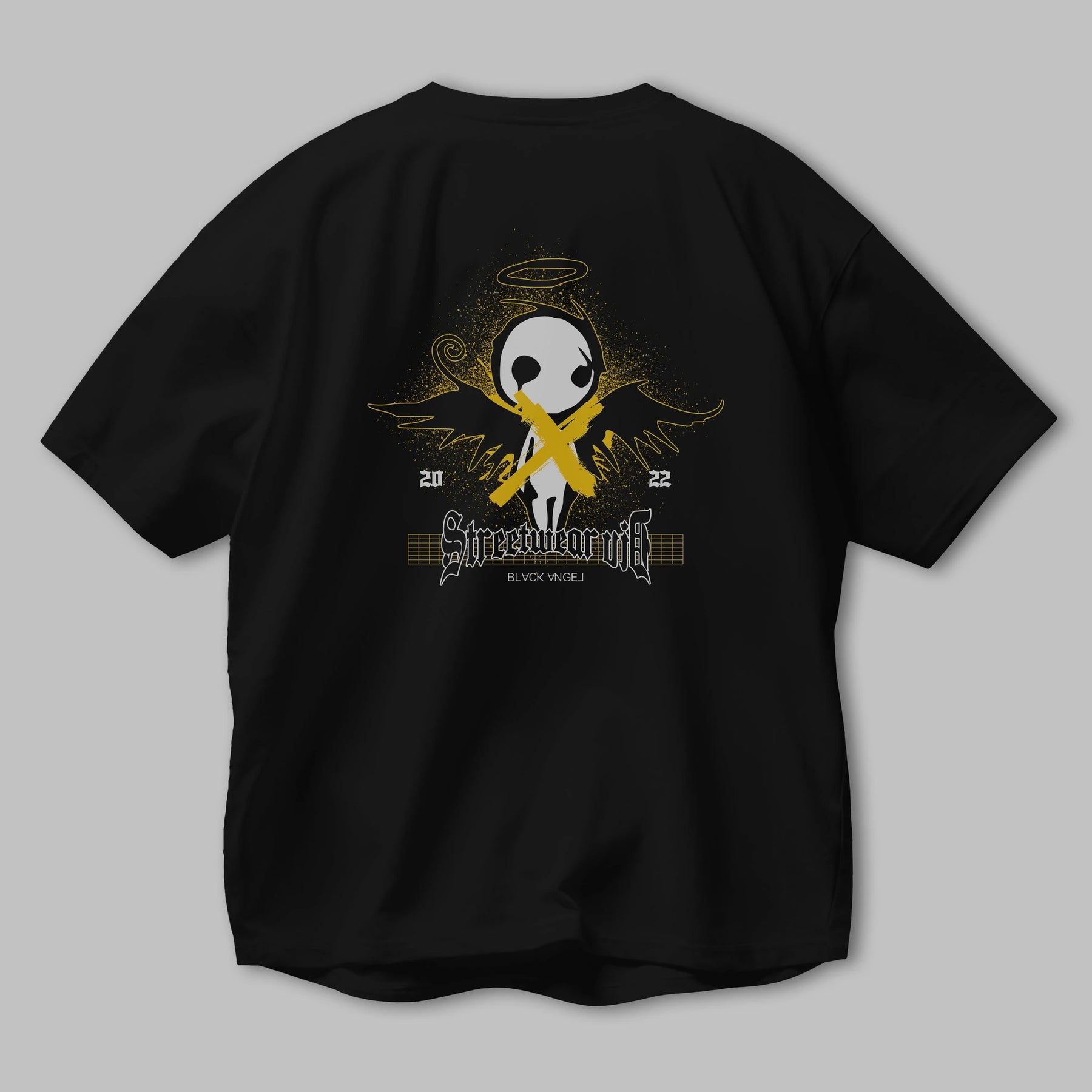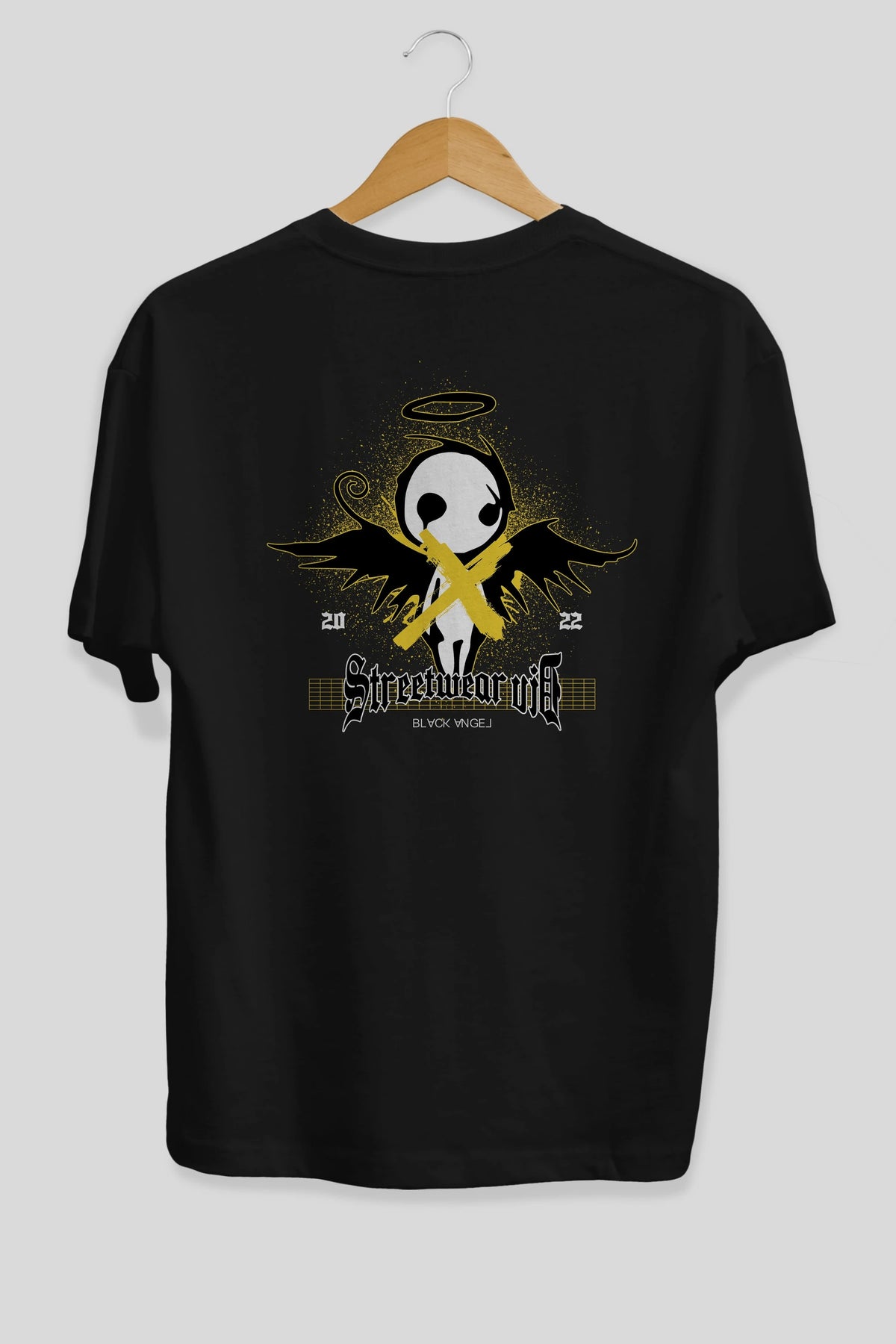 Black Angel Arka Baskılı Oversize t-shirt Erkek Kadın Unisex