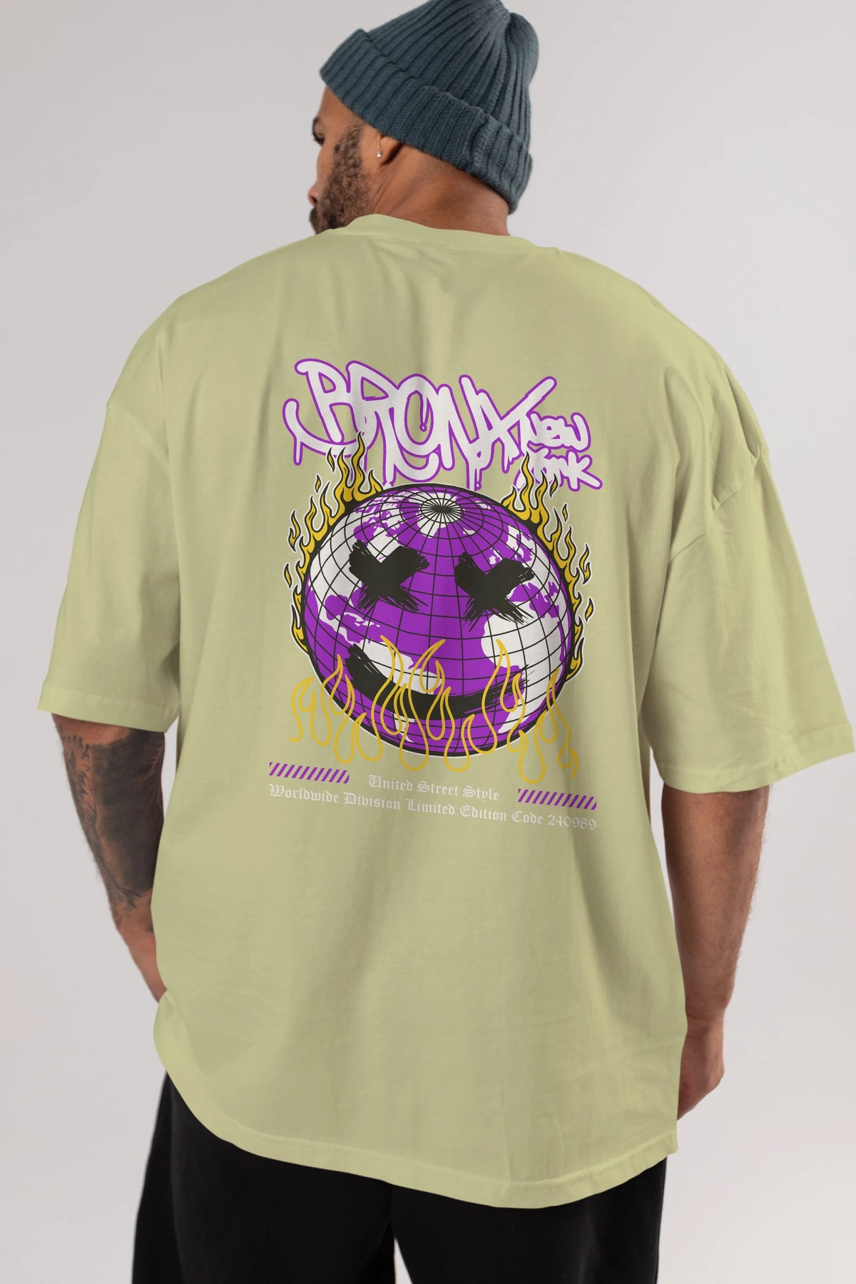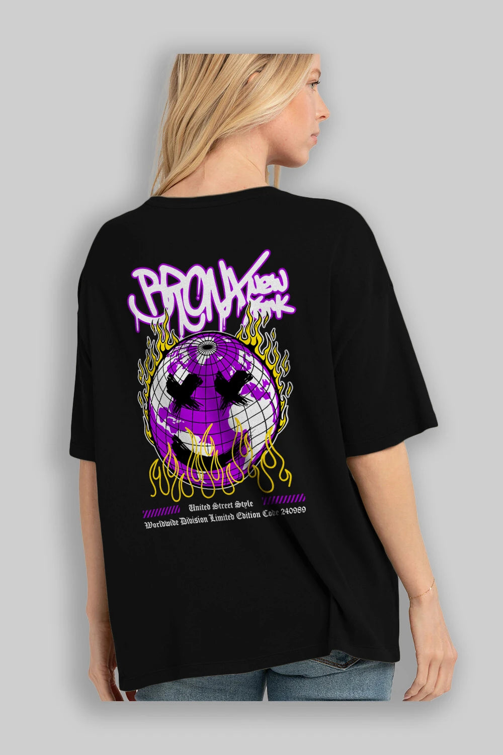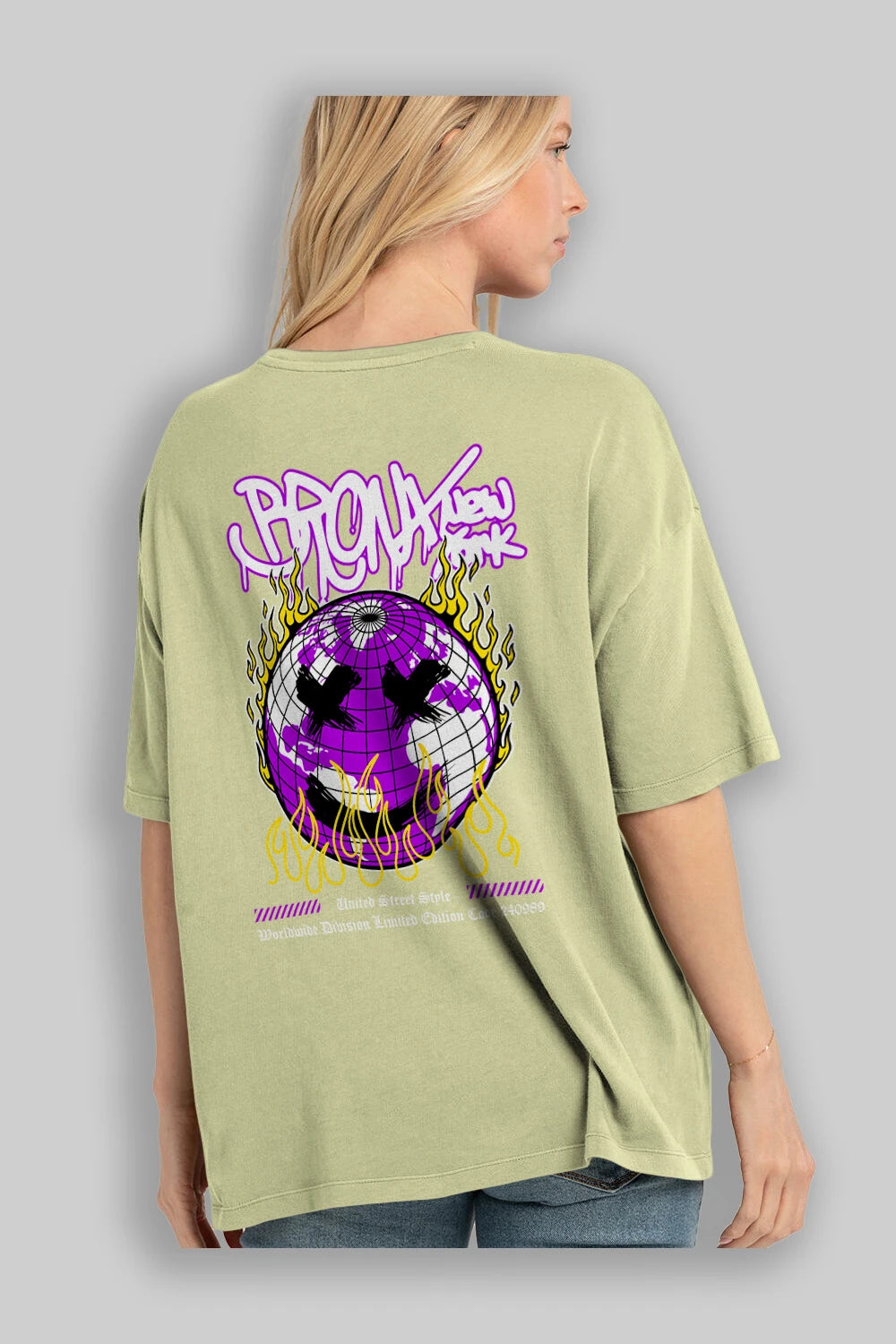 Hem erkekler hem de kadınlar için uygun, taze, modern bir baskıya sahip baskılı oversize t-shirt.
