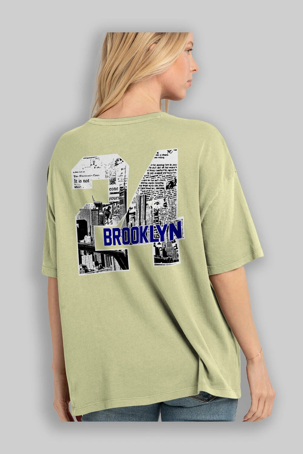 Brooklyn 24 Arka Baskılı Oversize t-shirt Erkek Kadın Unisex