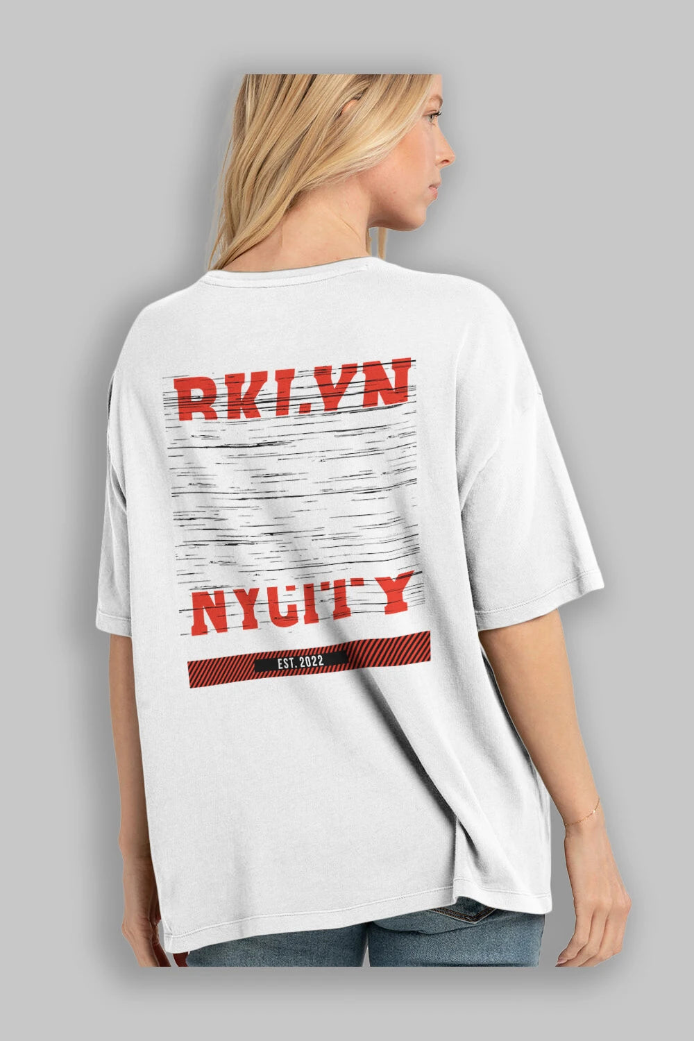Hem erkekler hem de kadınlar için uygun, taze, modern bir baskıya sahip baskılı oversize t-shirt.