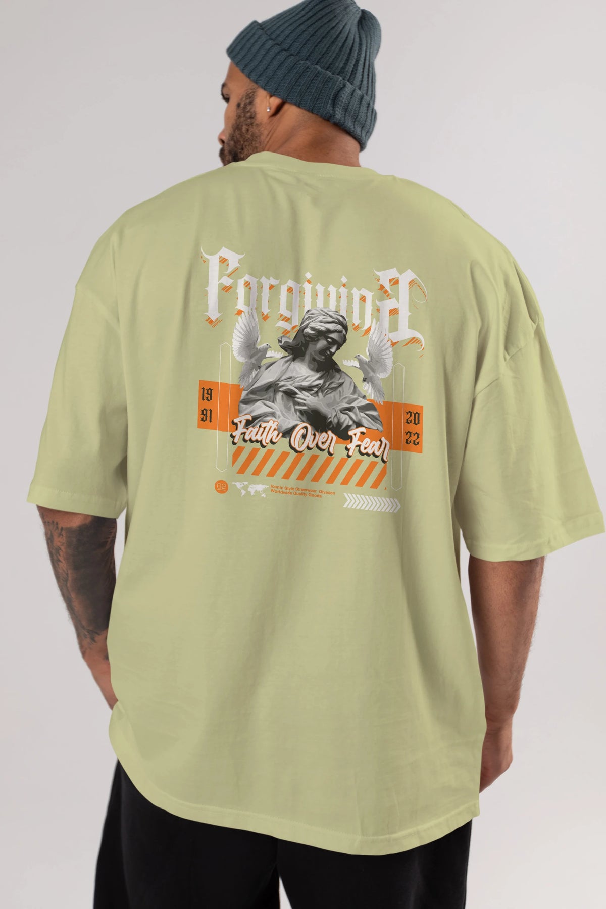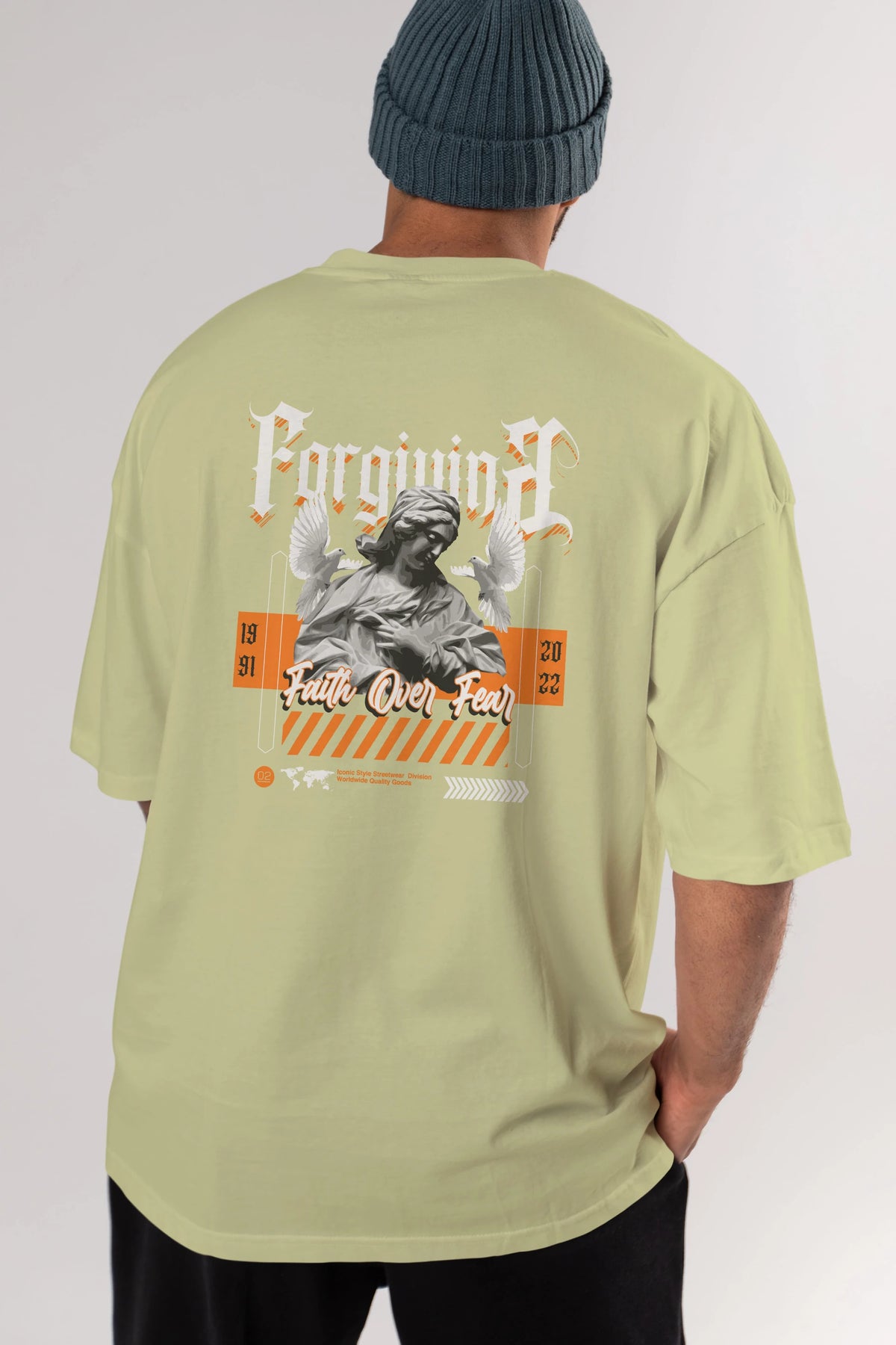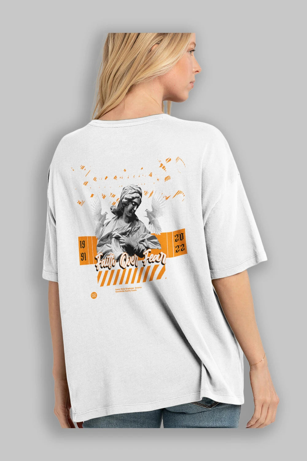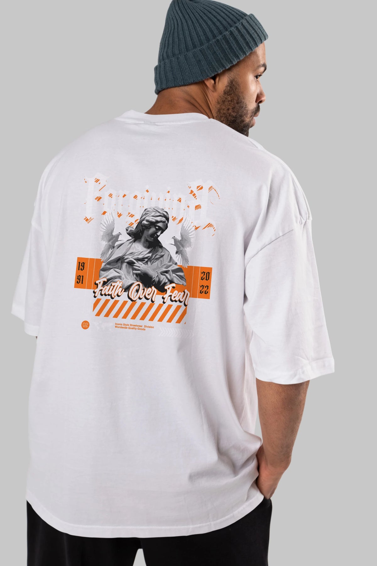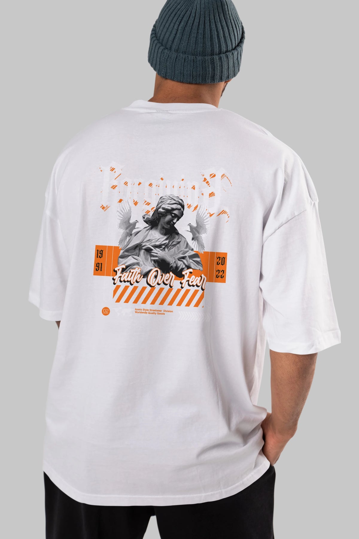 Faith Over Fear 2 Arka Baskılı Oversize t-shirt Erkek Kadın Unisex