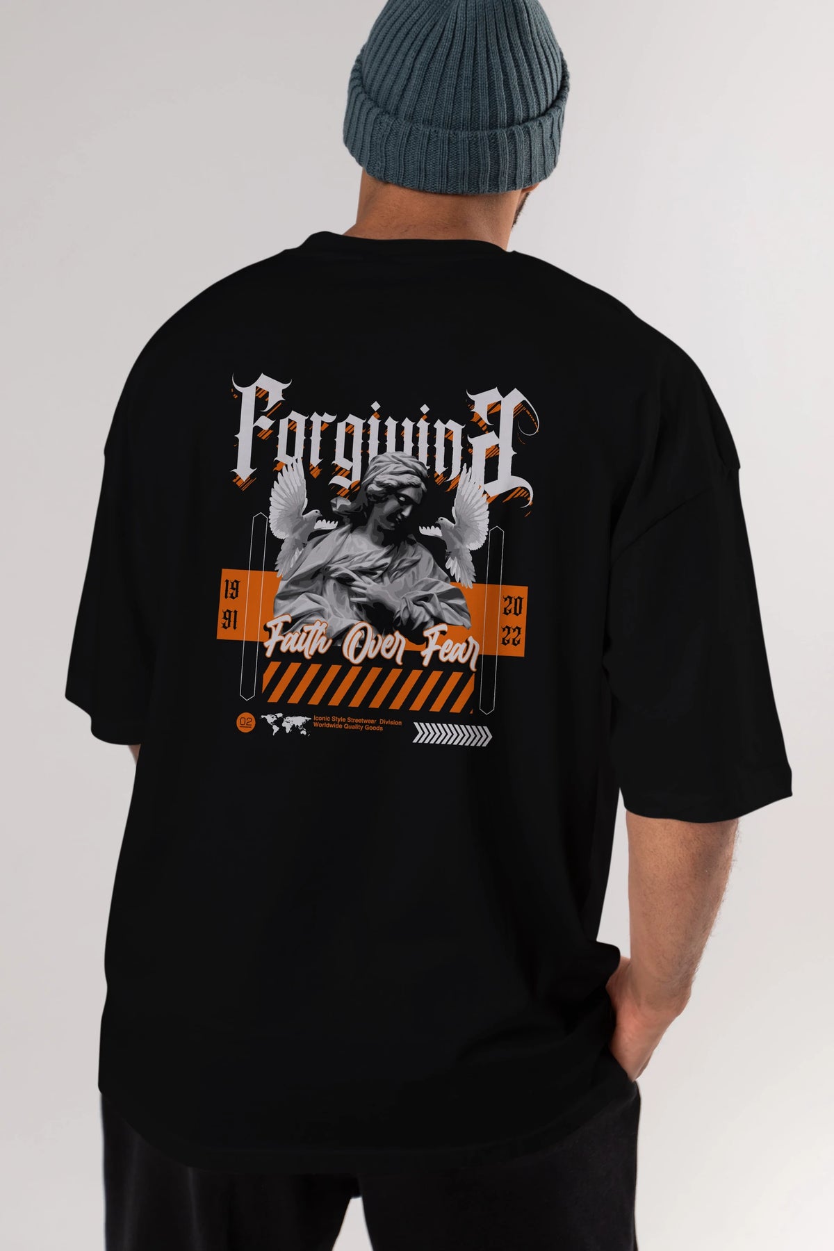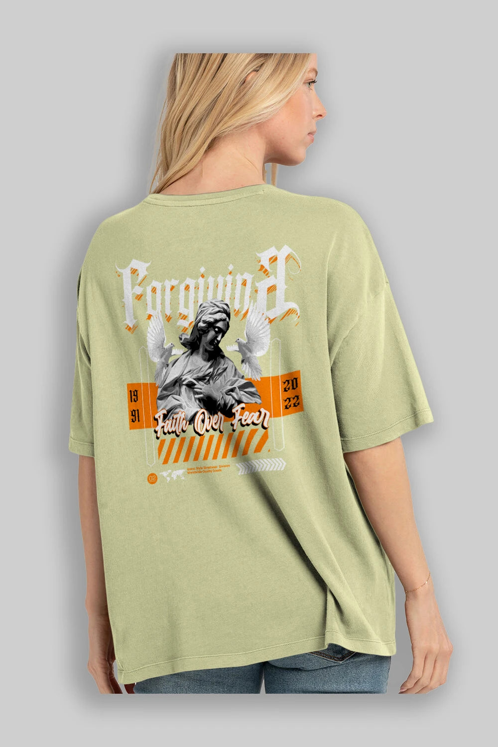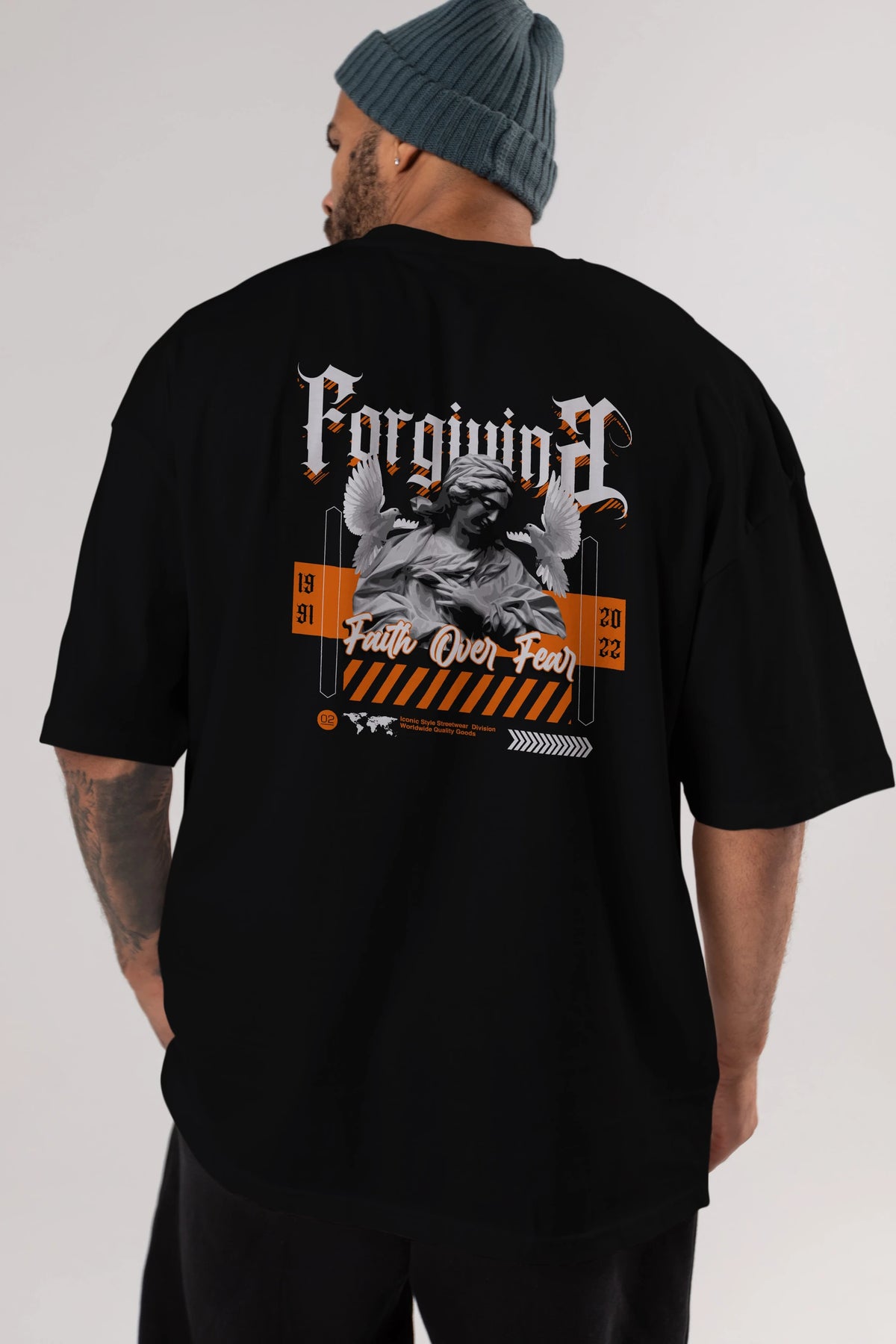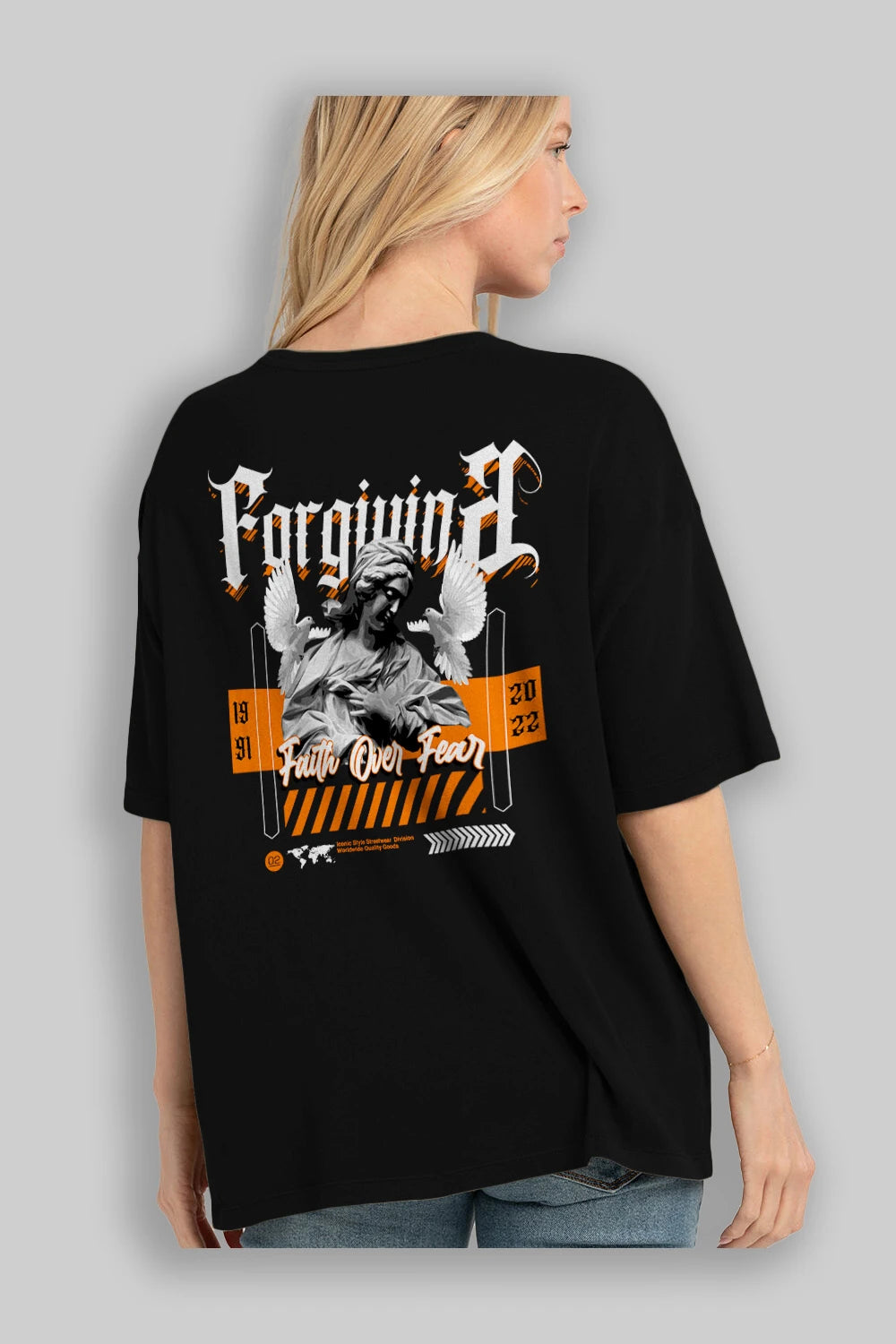 Faith Over Fear 2 Arka Baskılı Oversize t-shirt Erkek Kadın Unisex