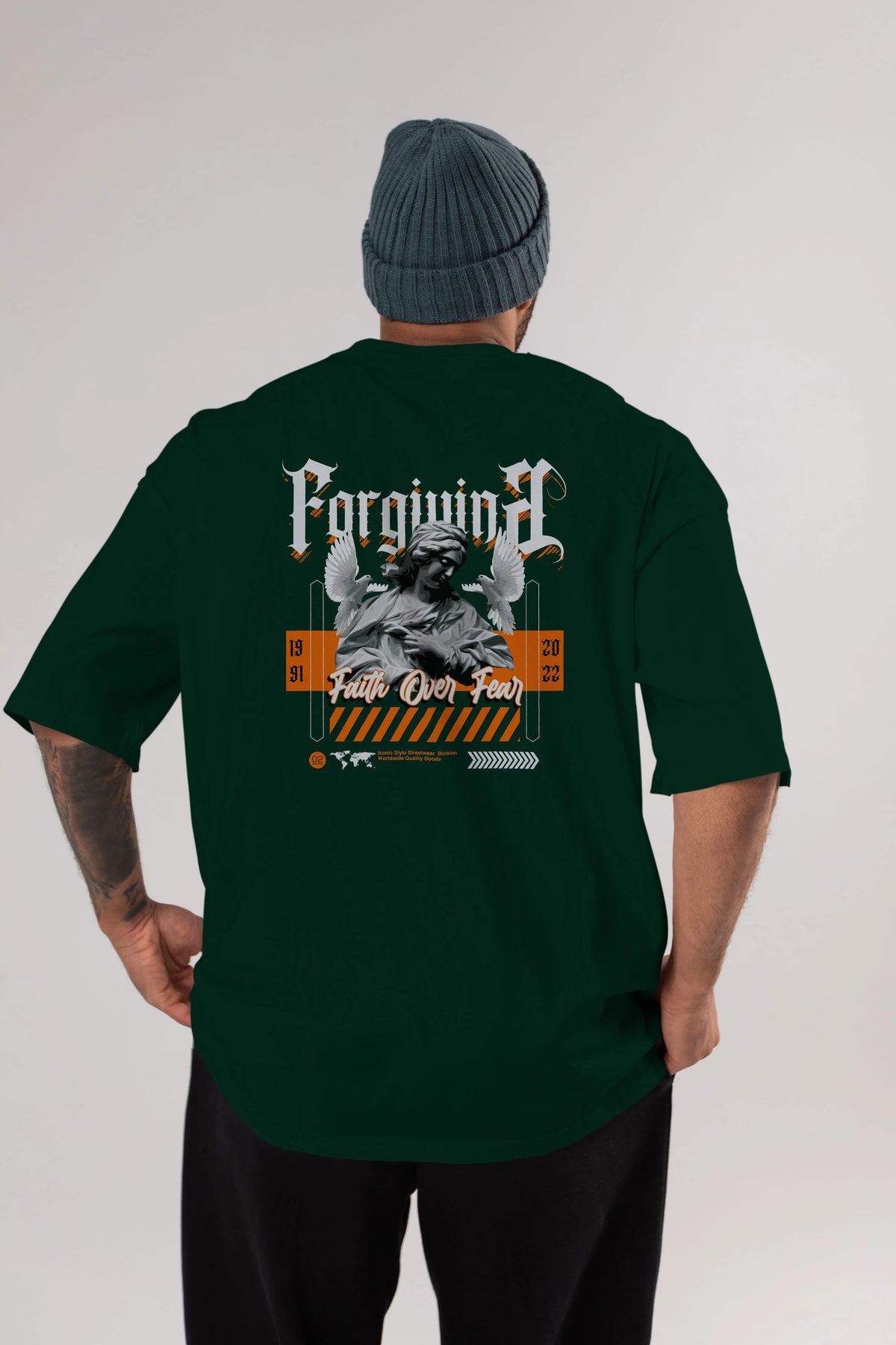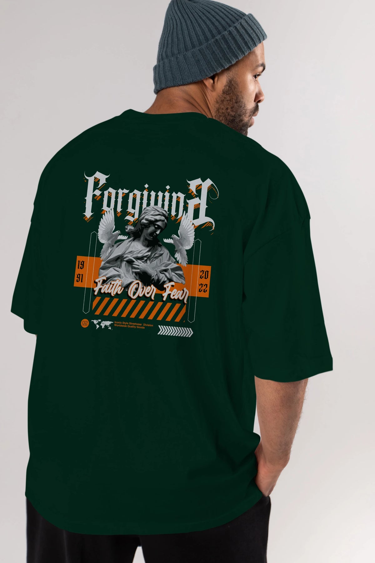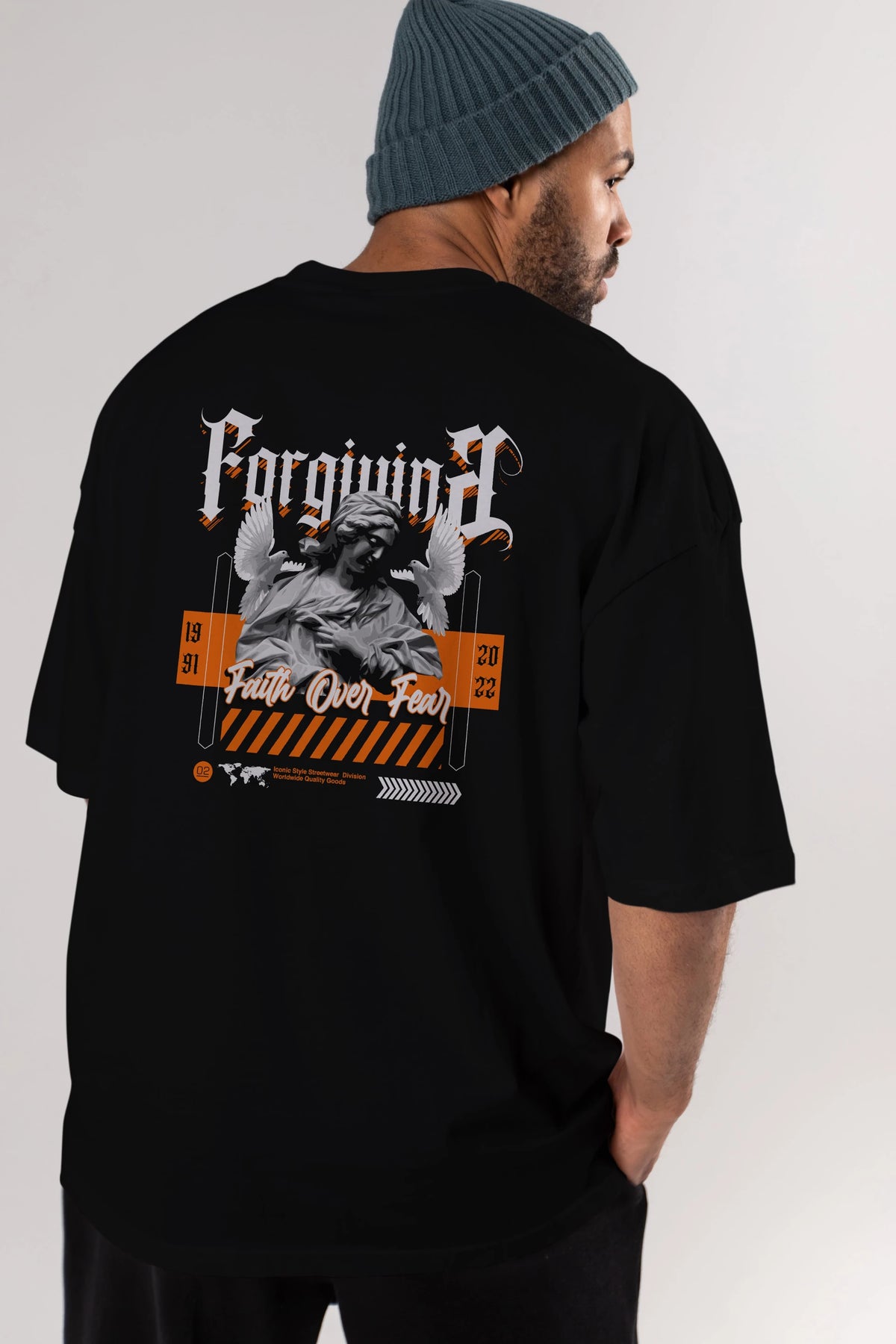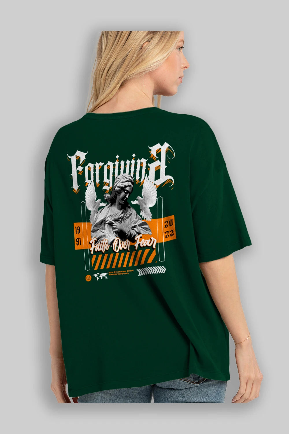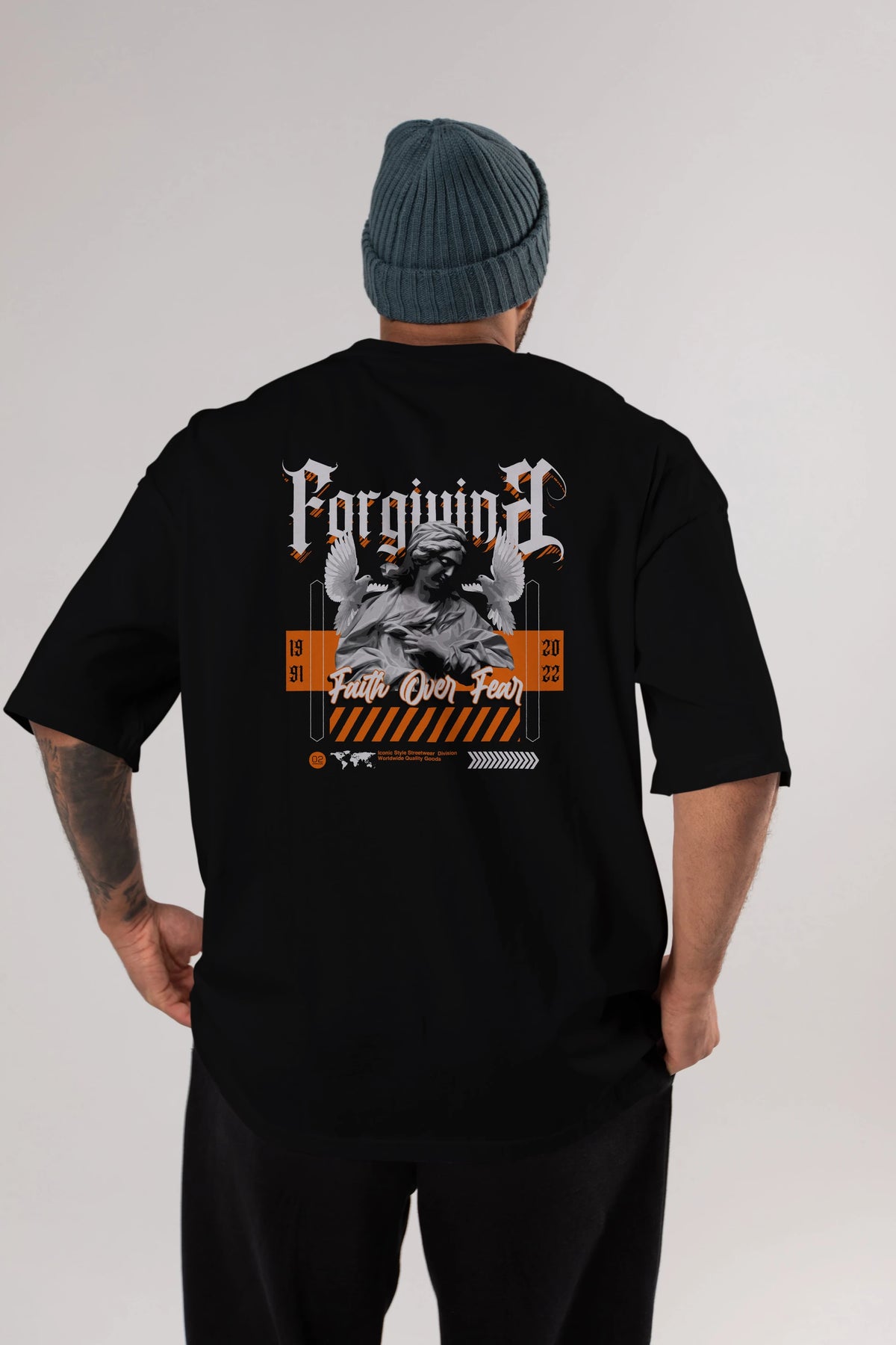 Faith Over Fear 2 Arka Baskılı Oversize t-shirt Erkek Kadın Unisex