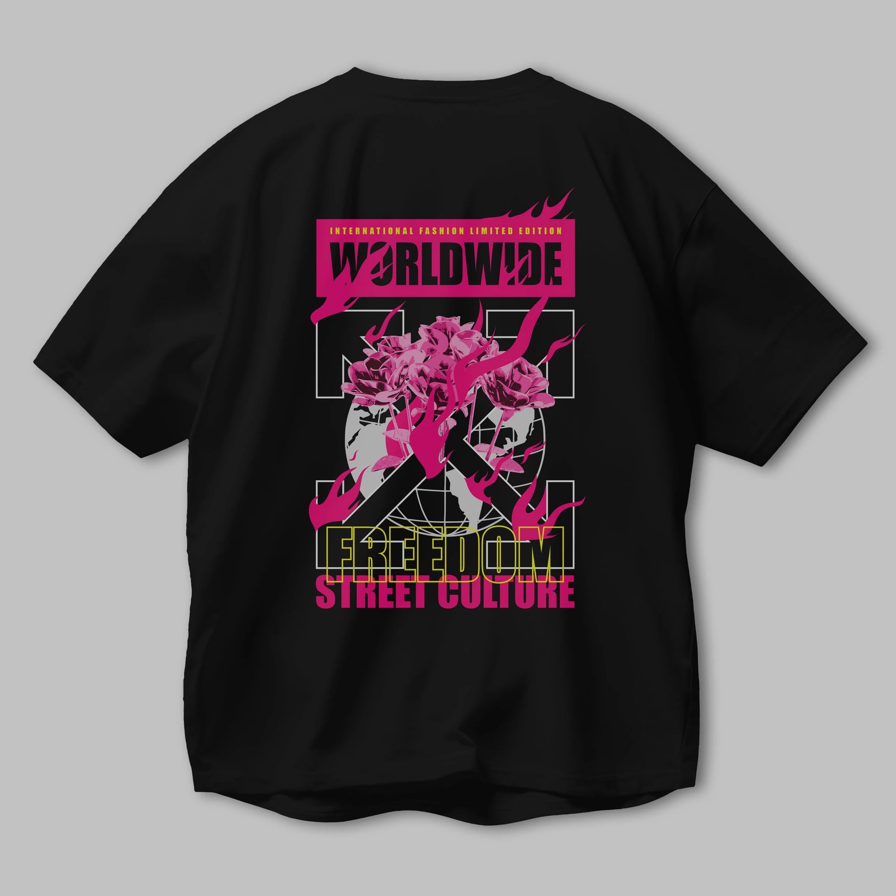Freedom Street Culture Arka Baskılı Oversize t-shirt Erkek Kadın Unisex