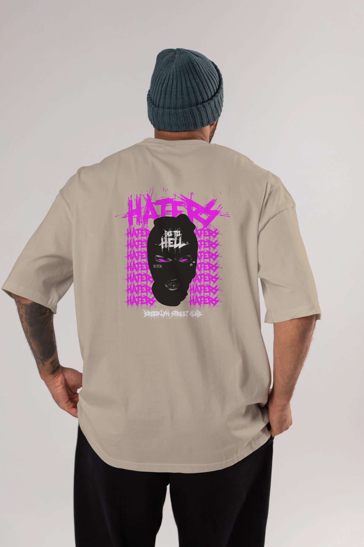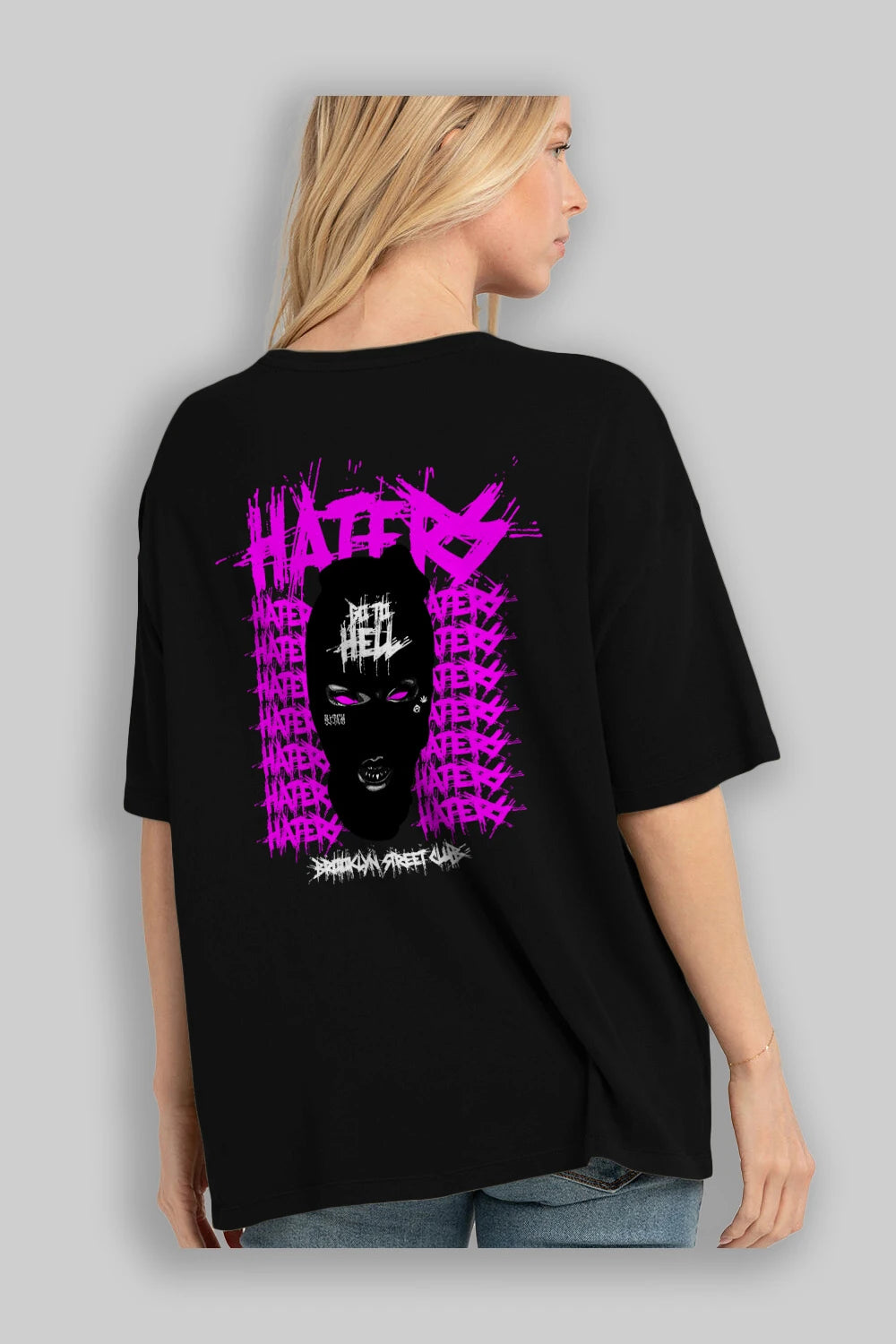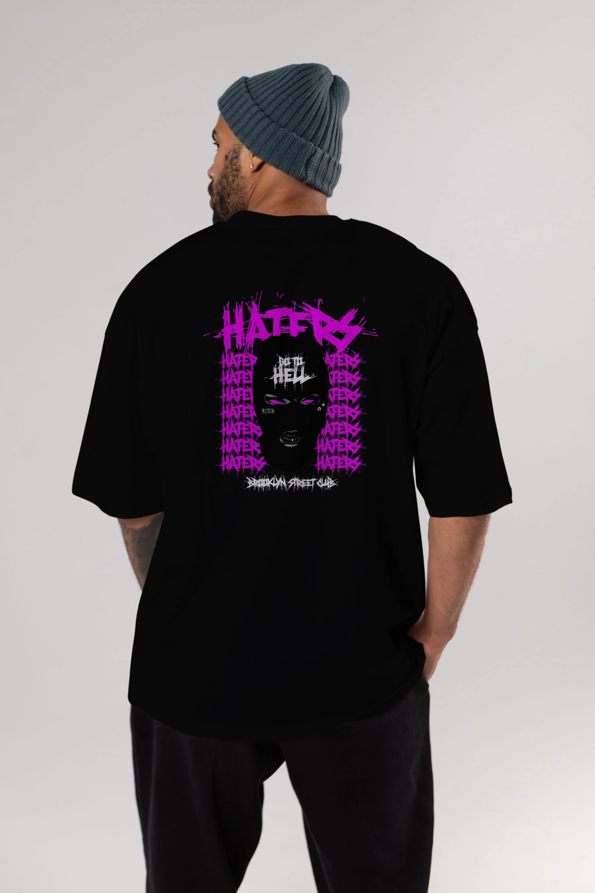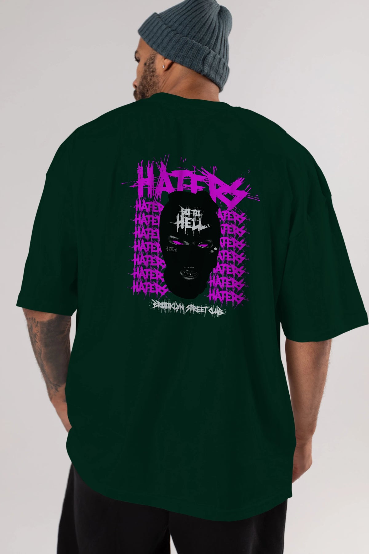 Haters Brooklyn Street Club Arka Baskılı Oversize t-shirt Erkek Kadın Unisex
