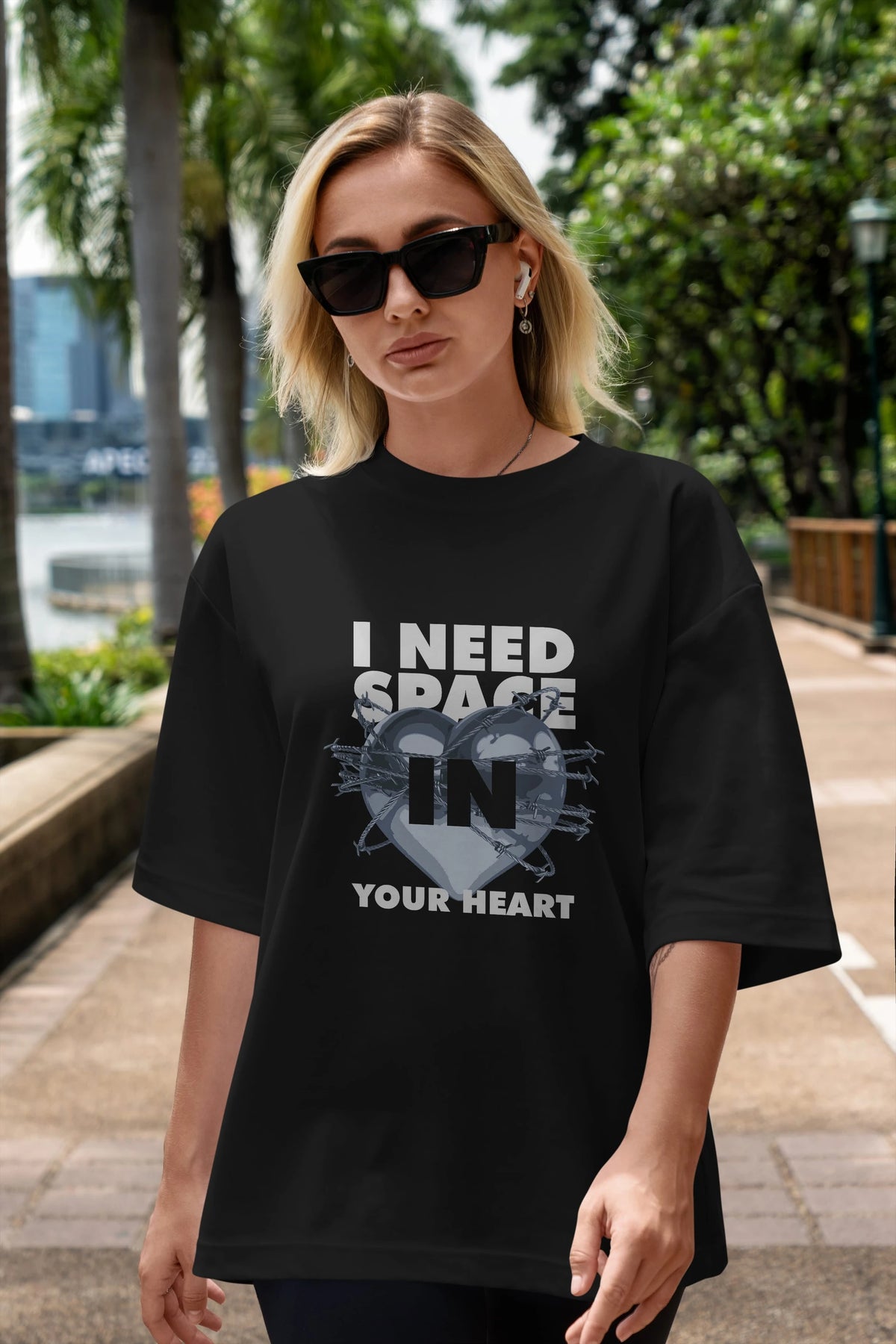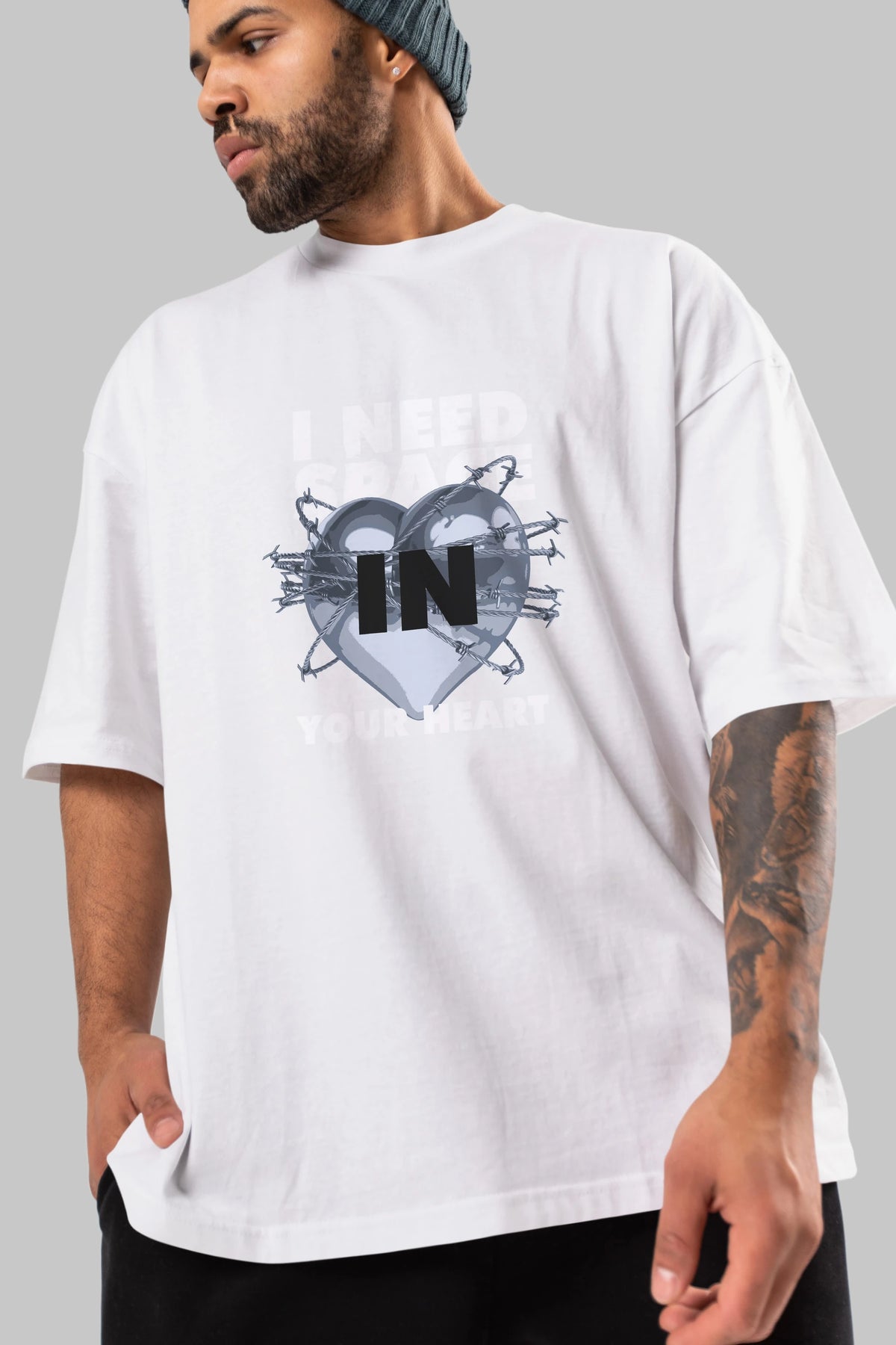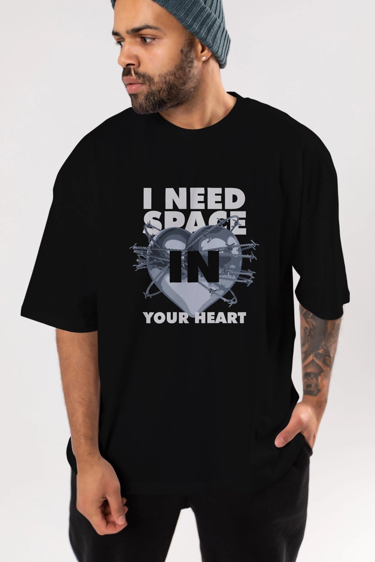 I Need Space Your Heart Ön Baskılı Oversize t-shirt Erkek Kadın Unisex