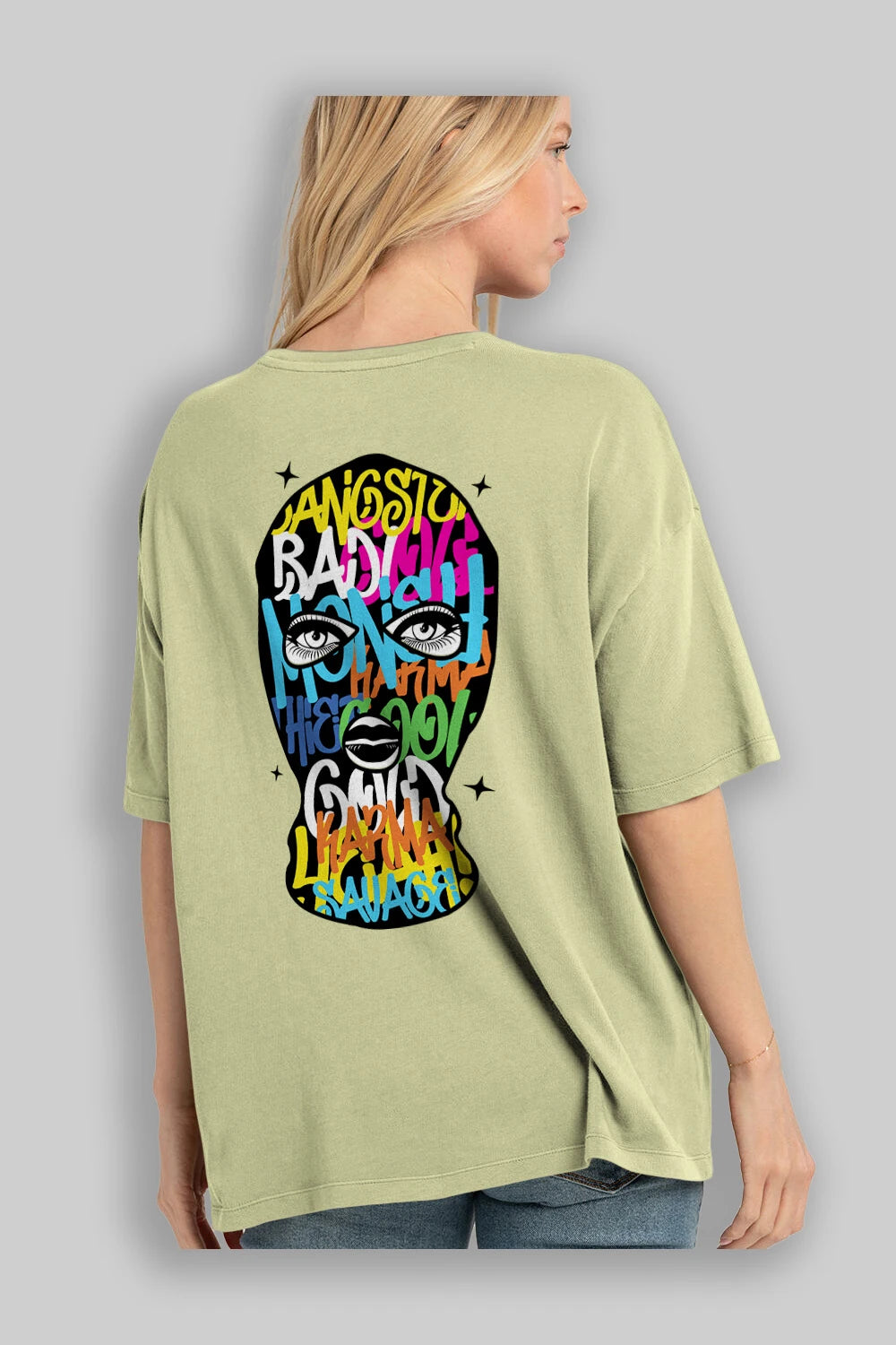 Hem erkekler hem de kadınlar için uygun, taze, modern bir baskıya sahip baskılı oversize t-shirt.