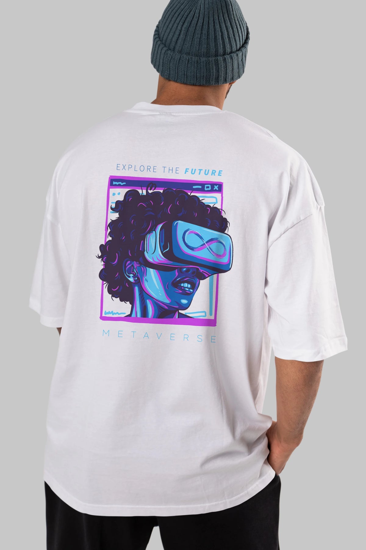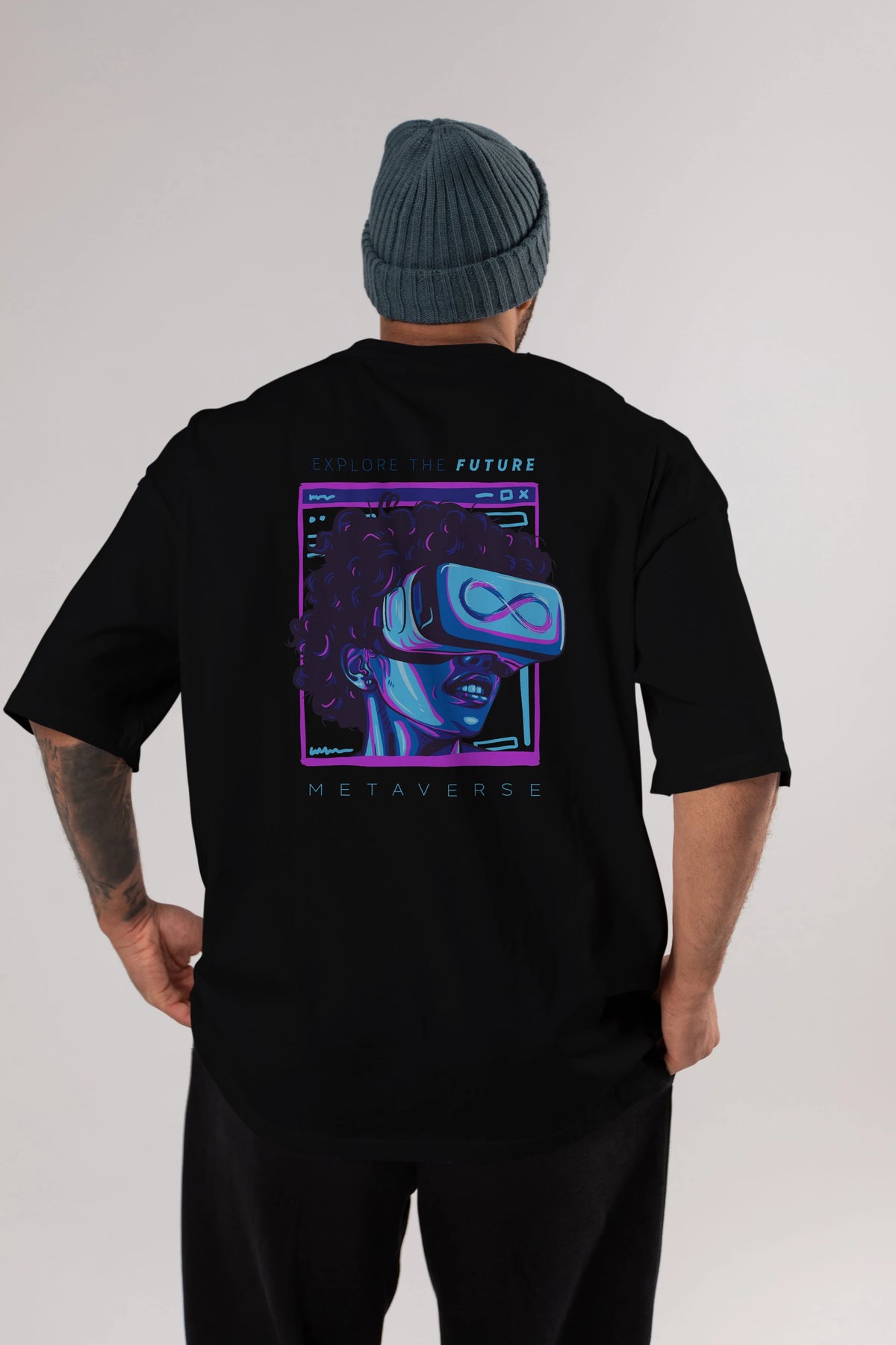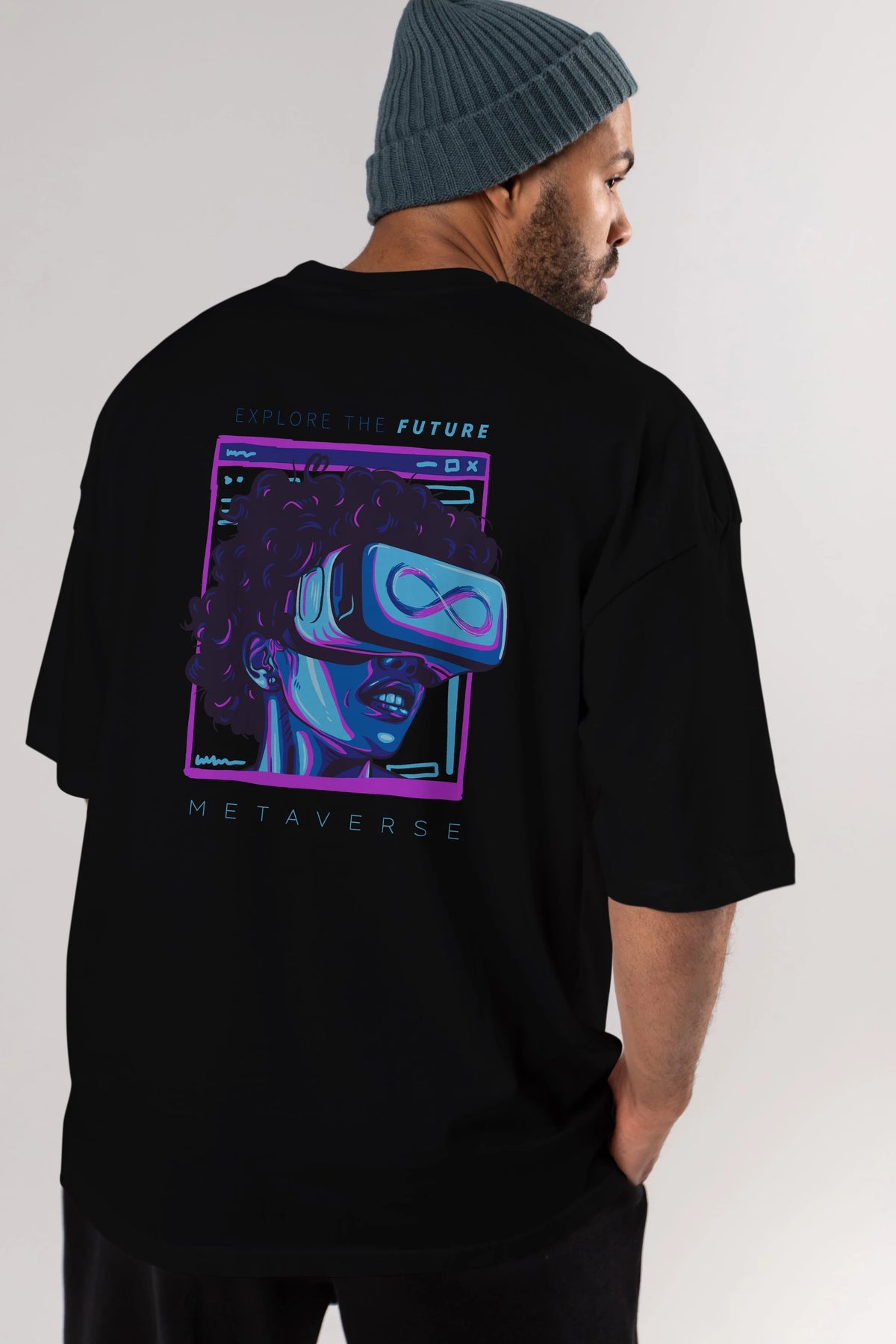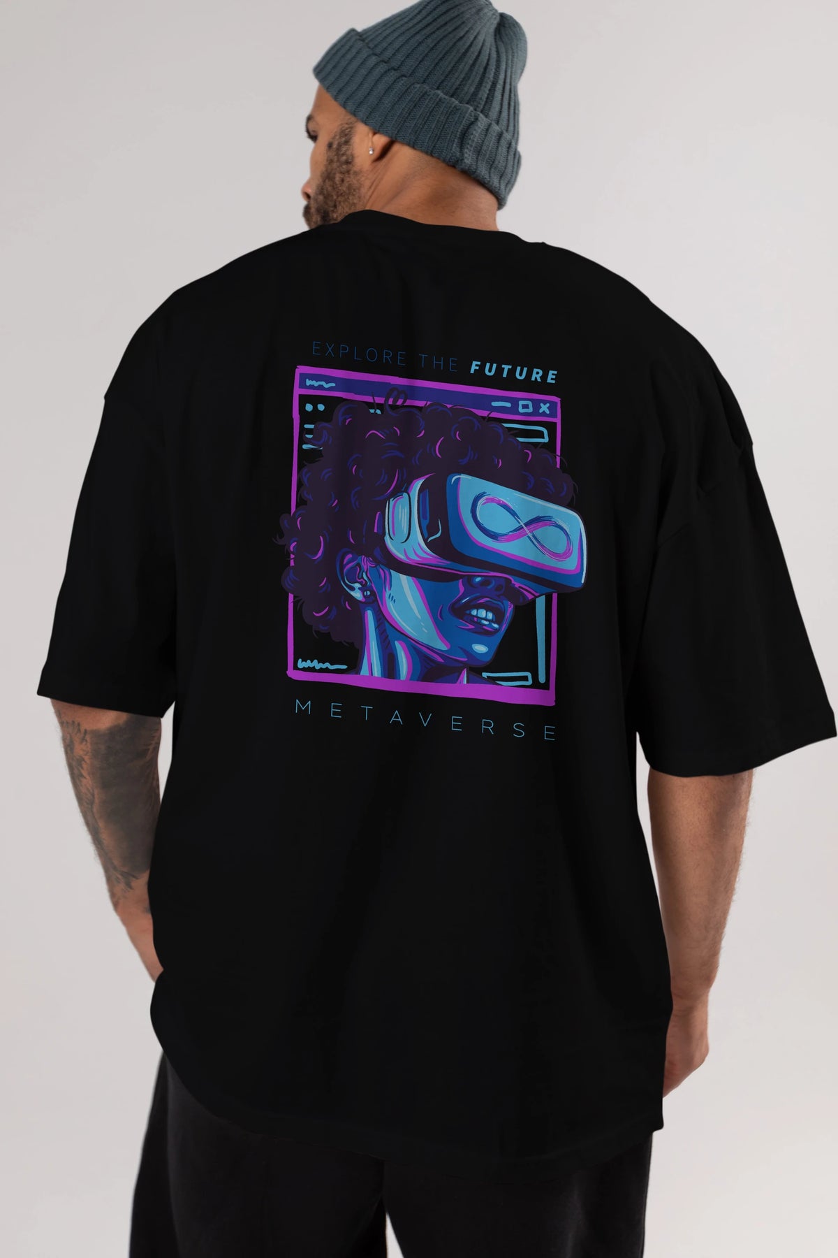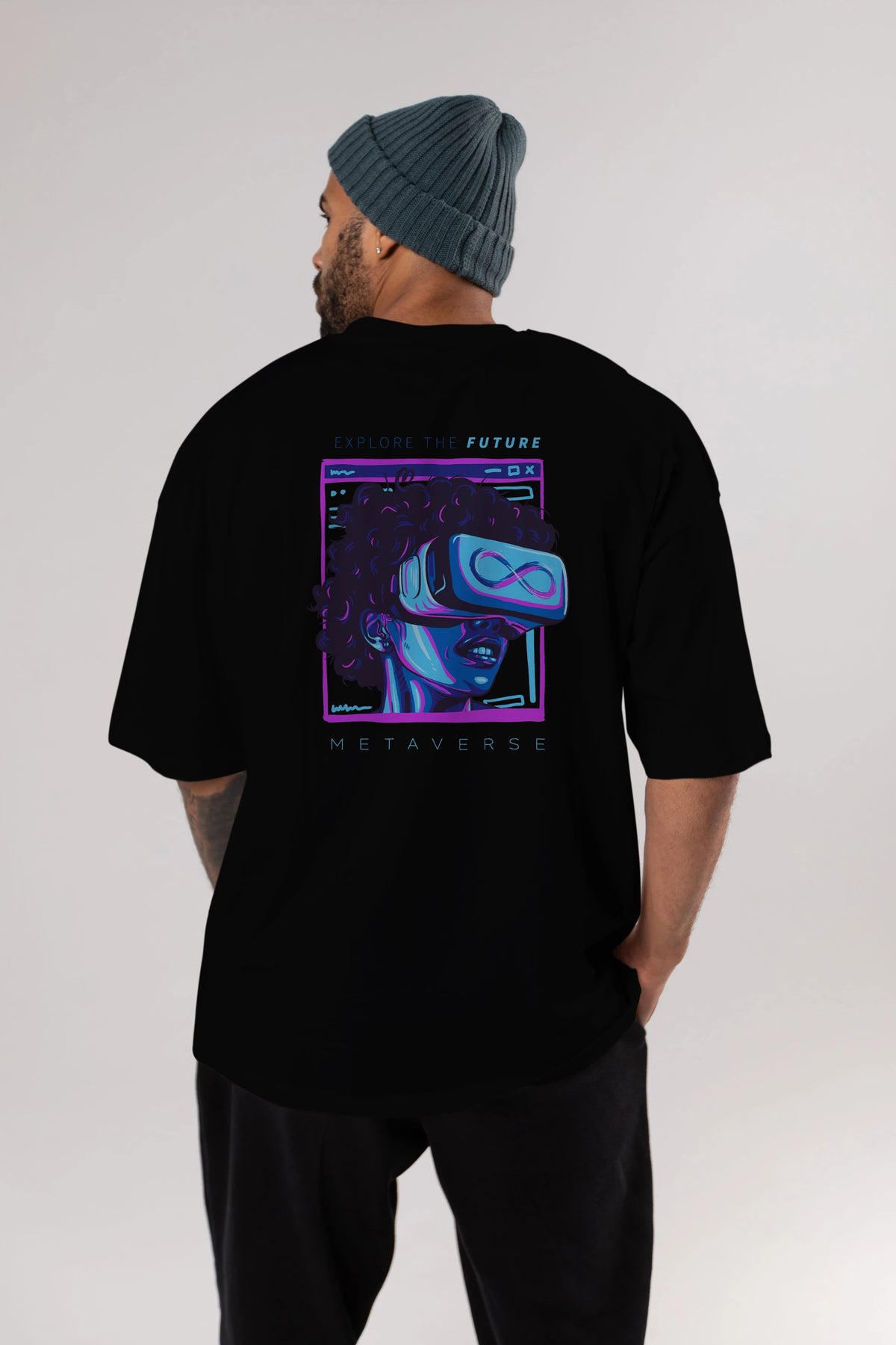 Metaverse Arka Baskılı Oversize t-shirt Erkek Kadın Unisex