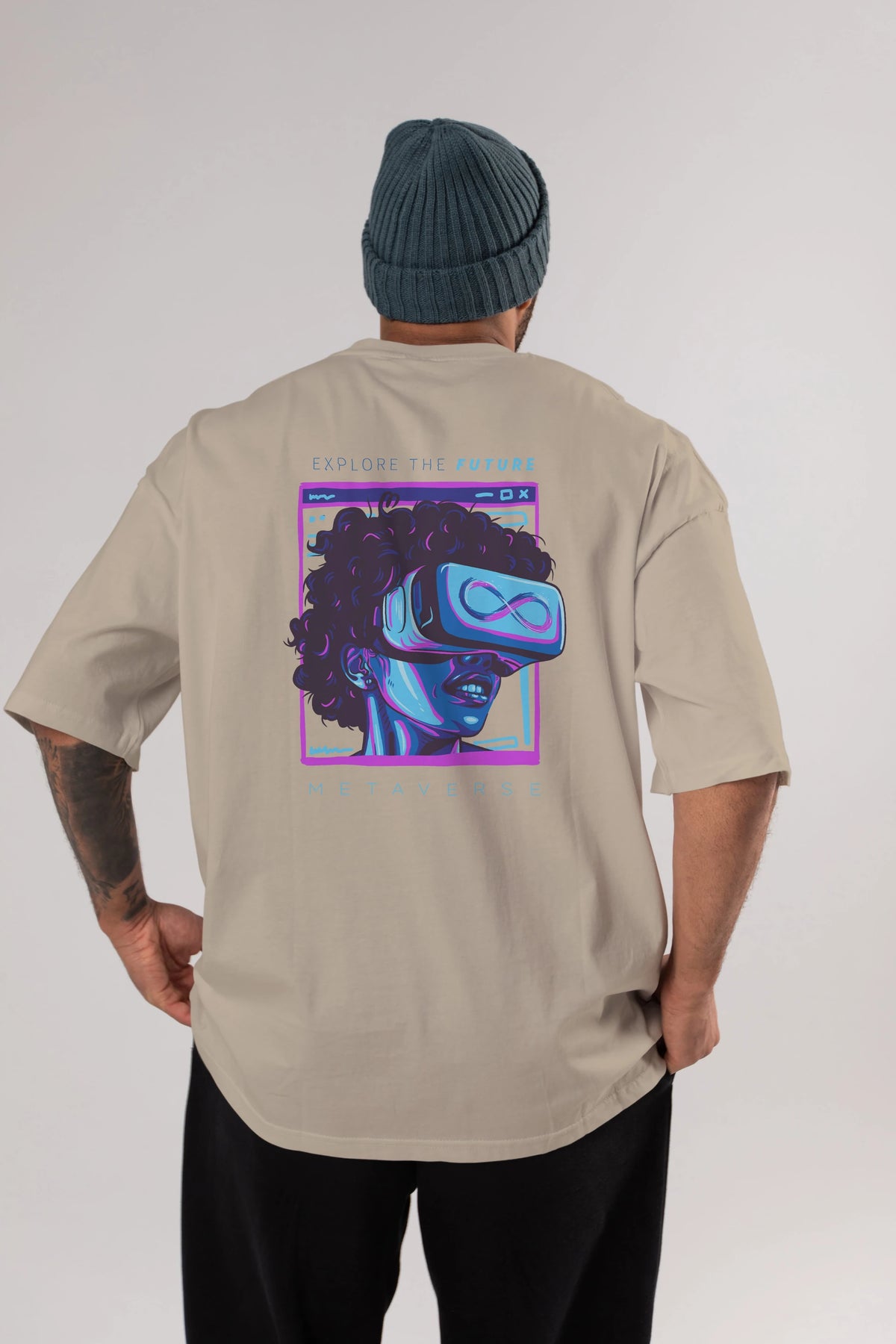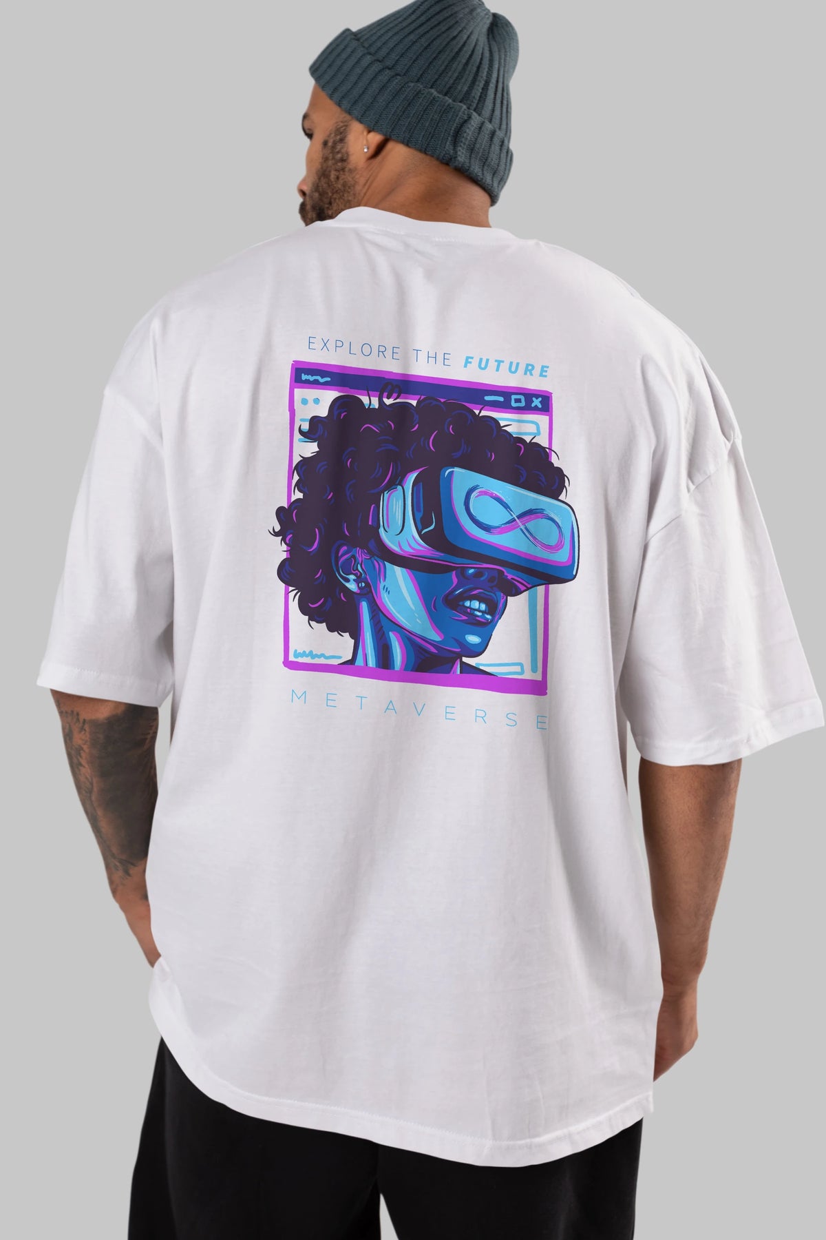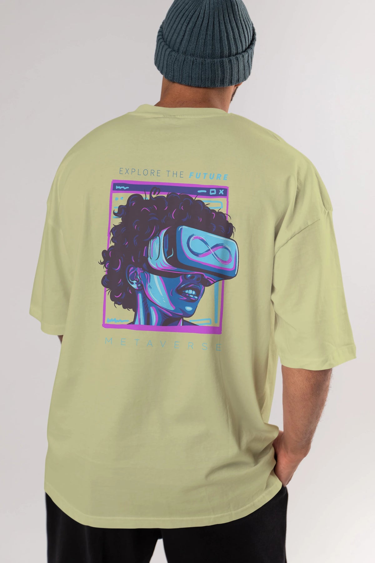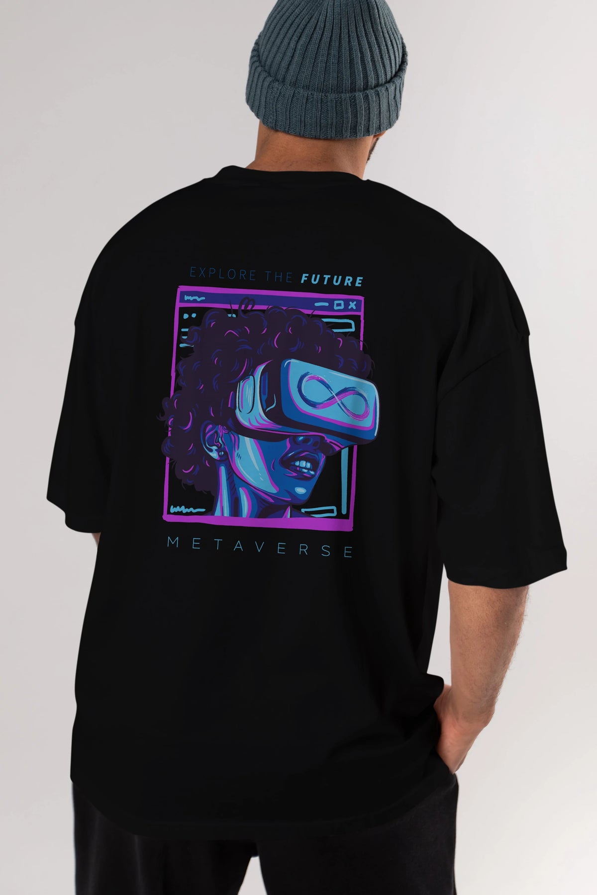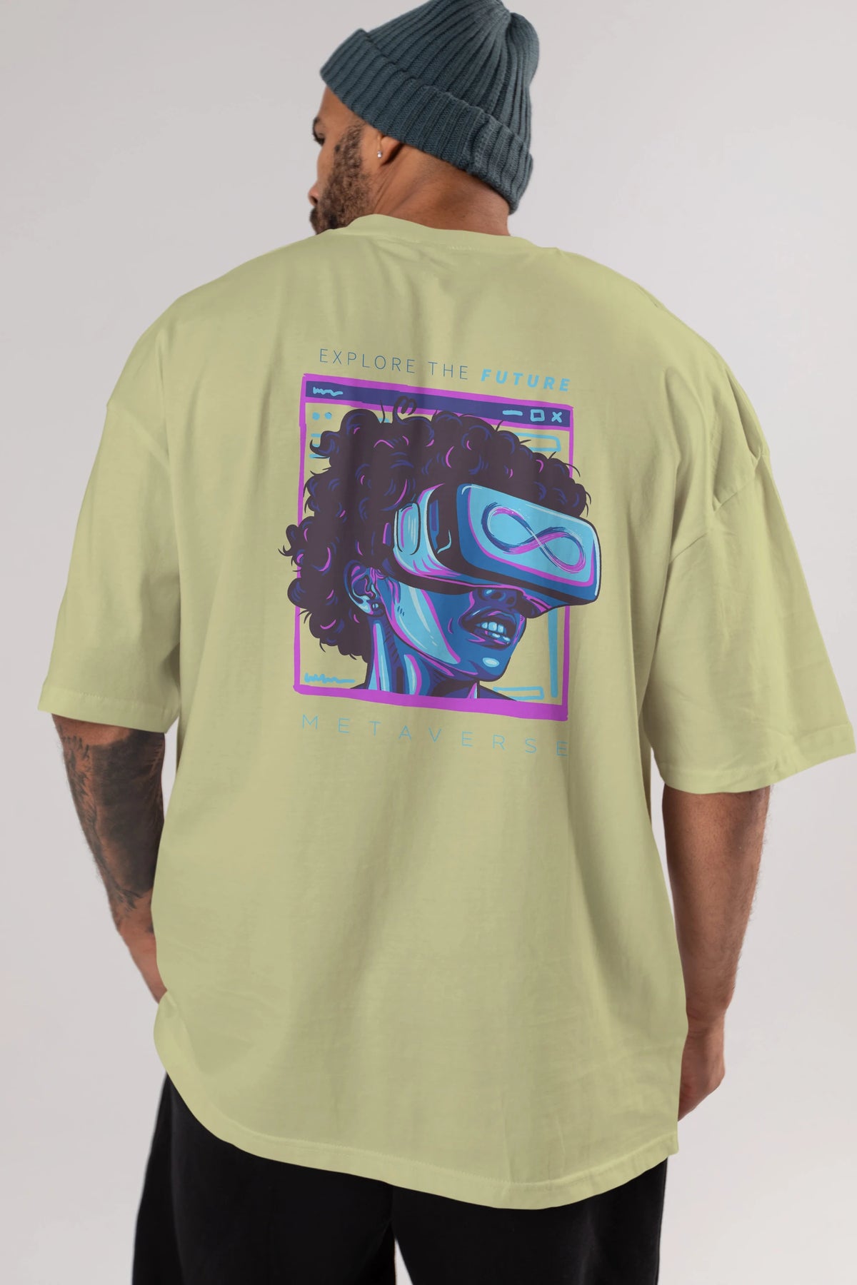 Metaverse Arka Baskılı Oversize t-shirt Erkek Kadın Unisex