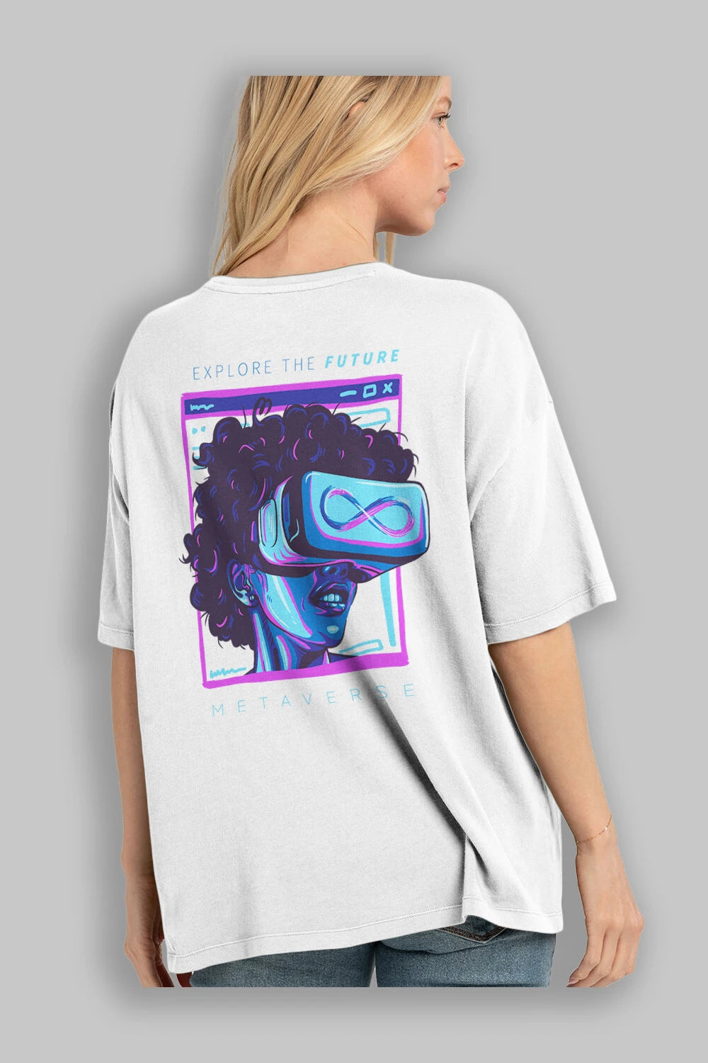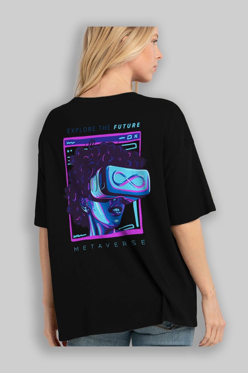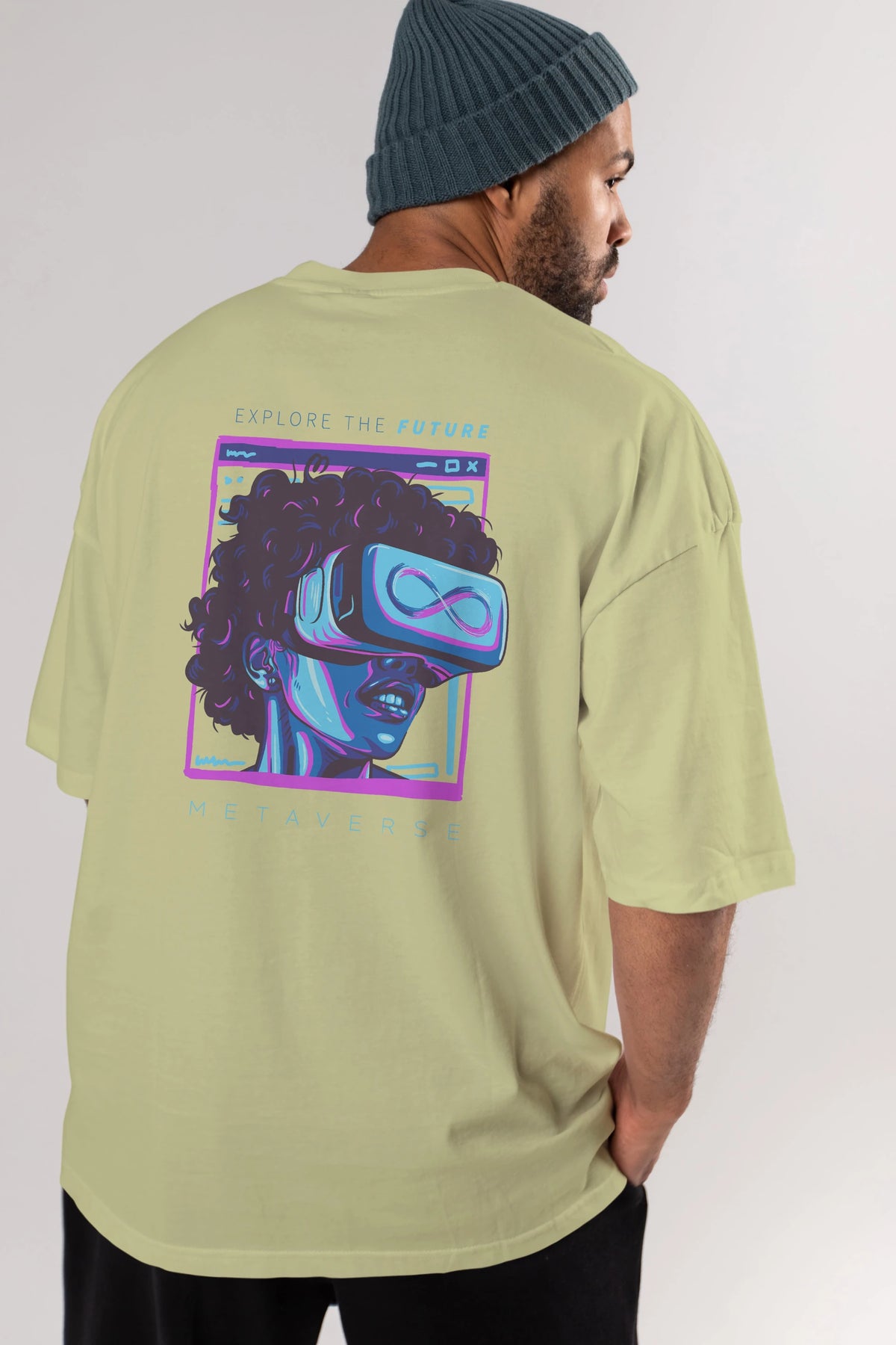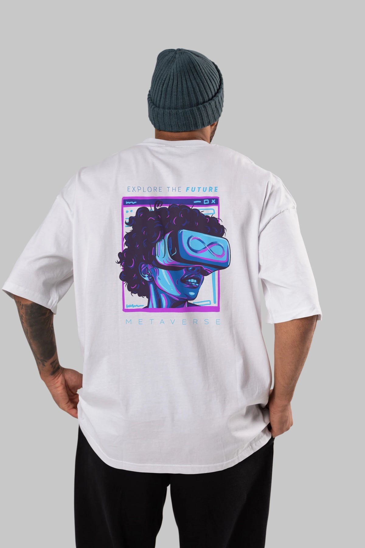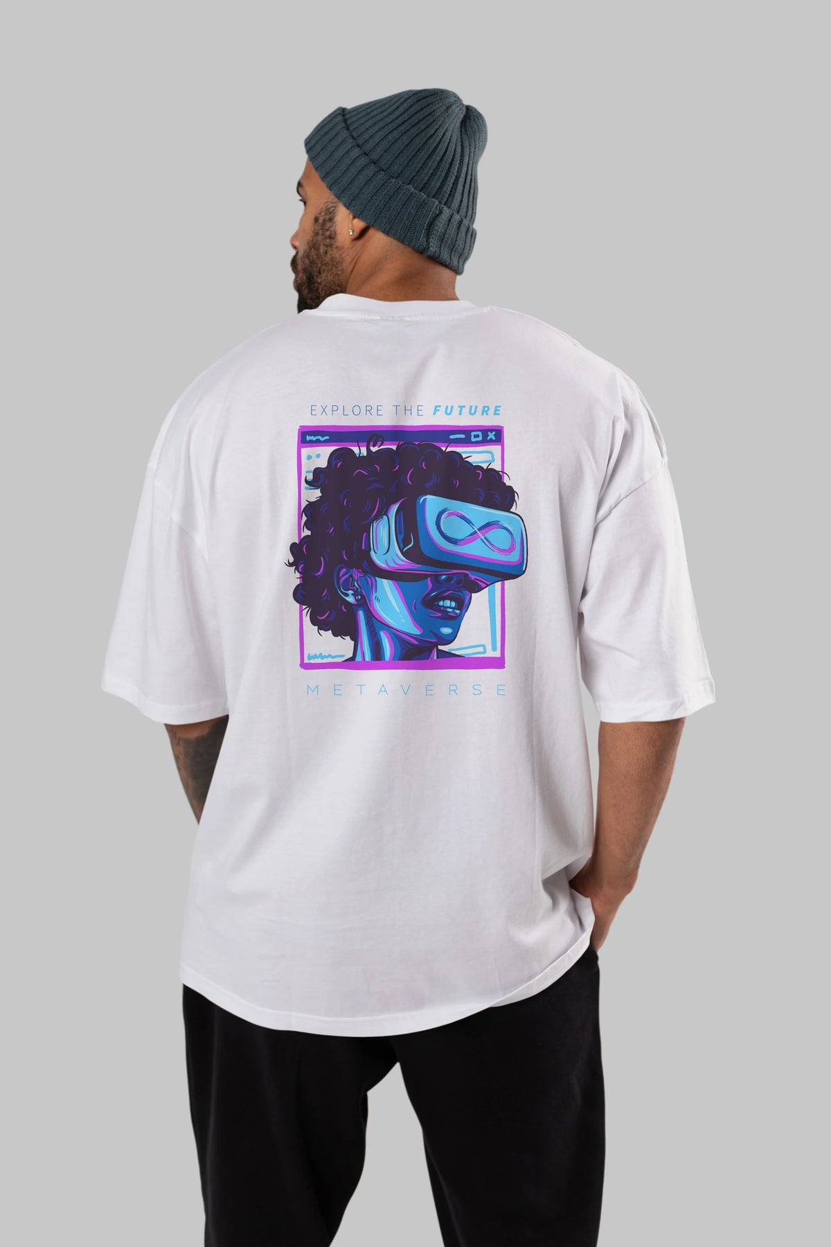 Metaverse Arka Baskılı Oversize t-shirt Erkek Kadın Unisex