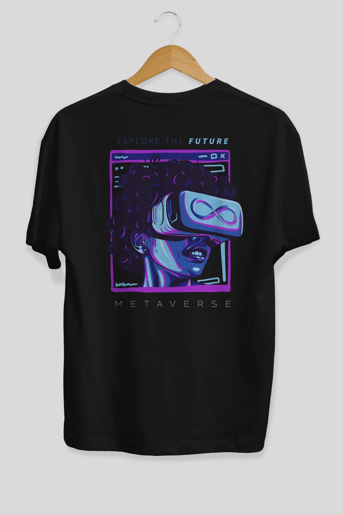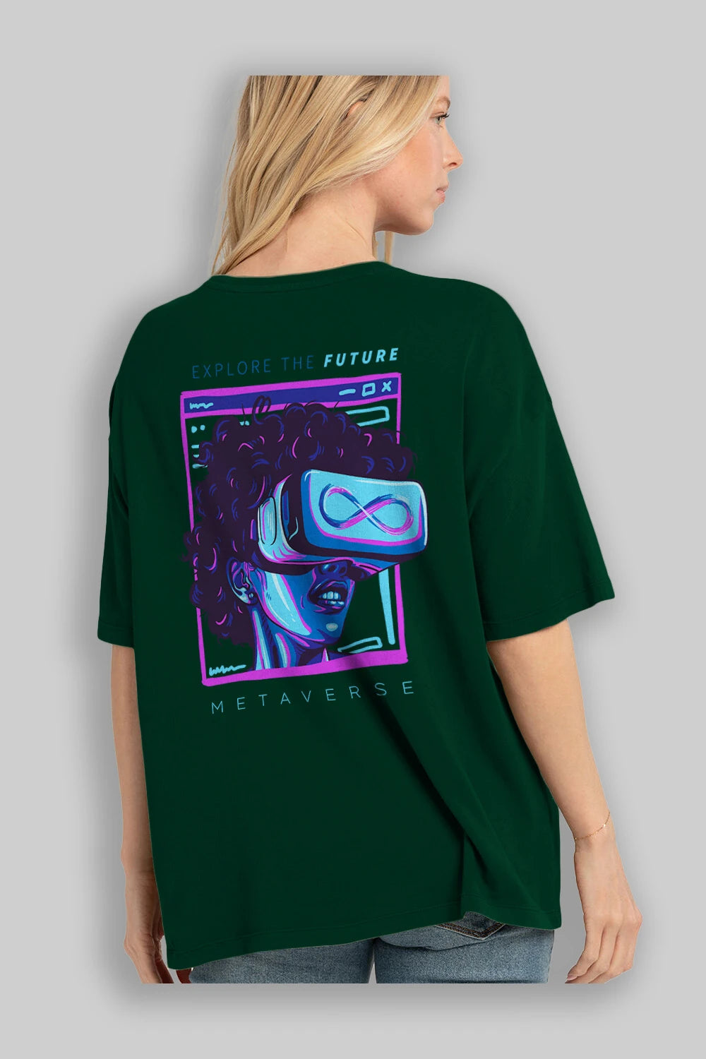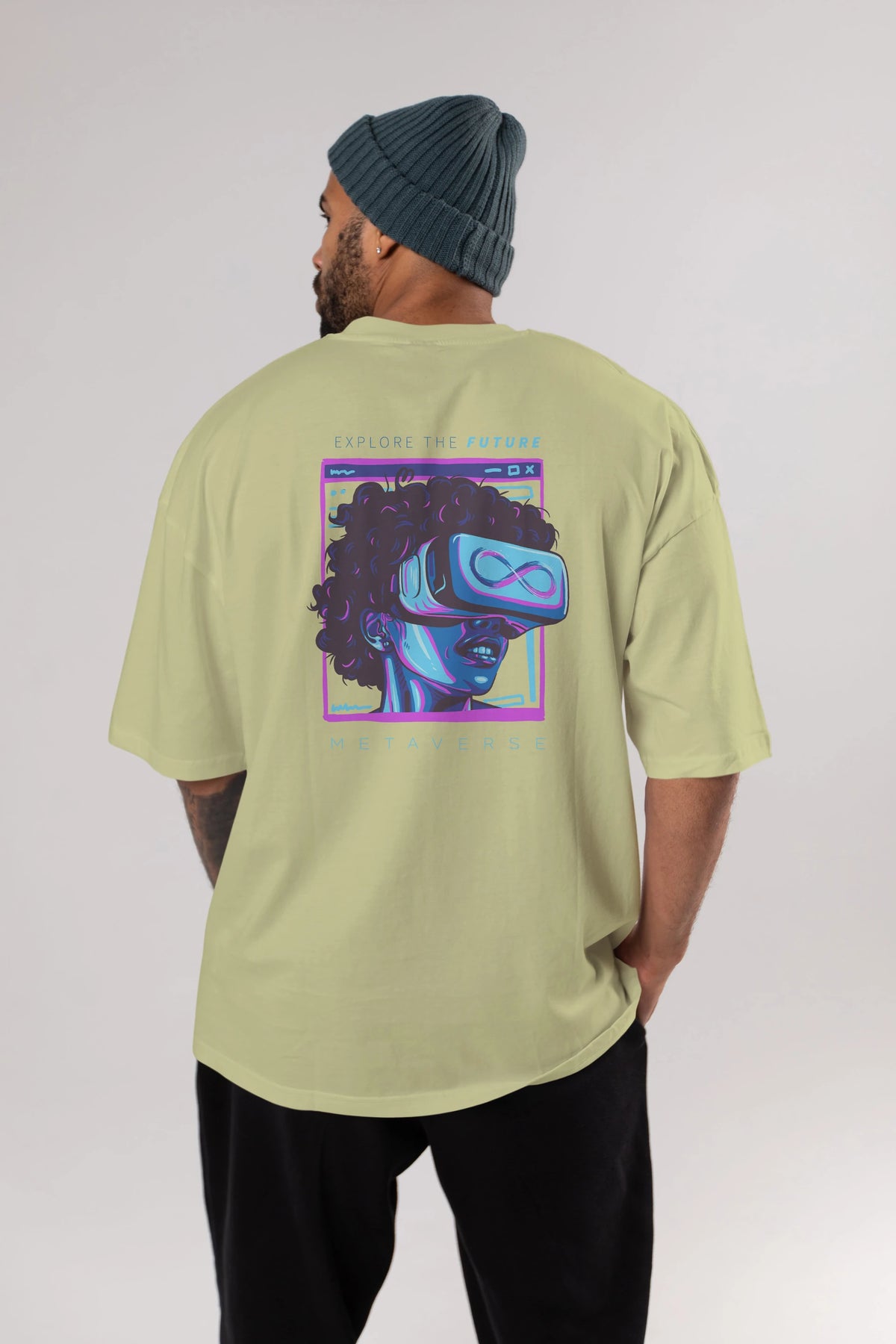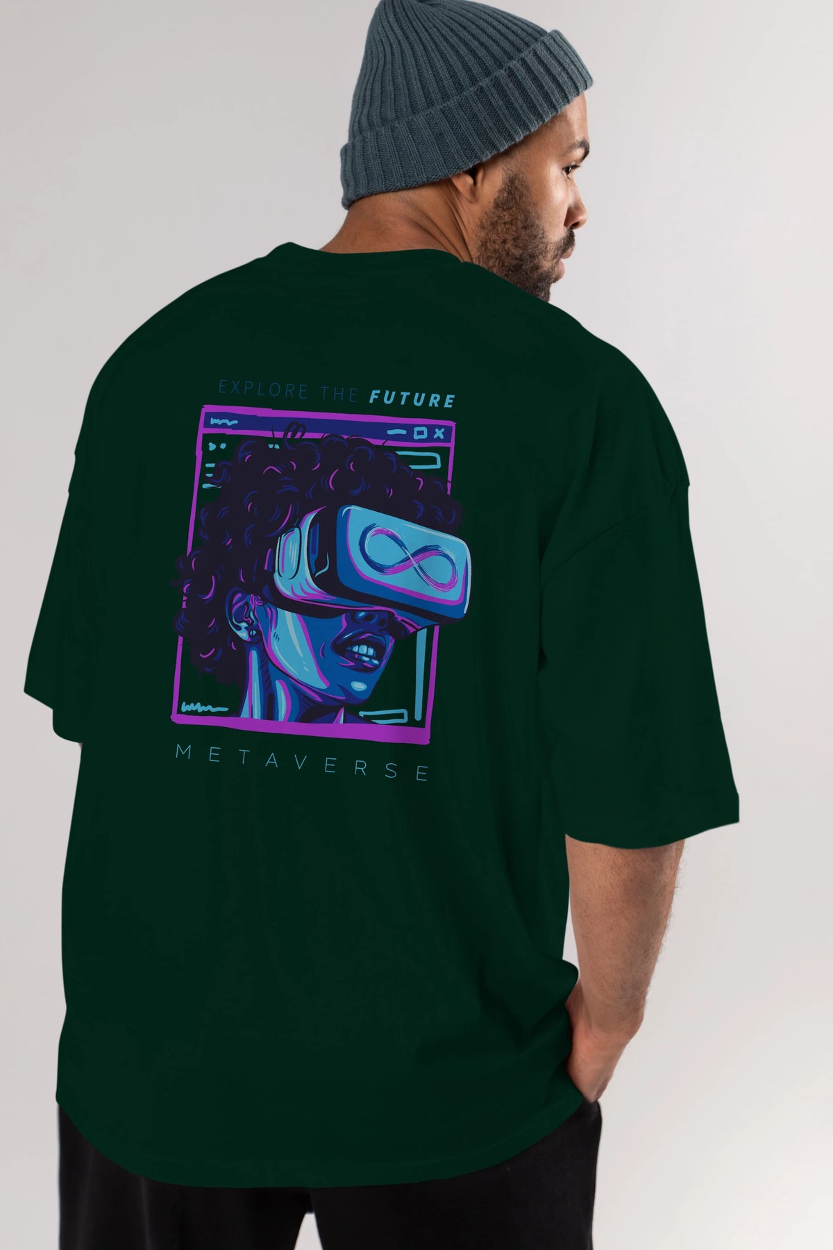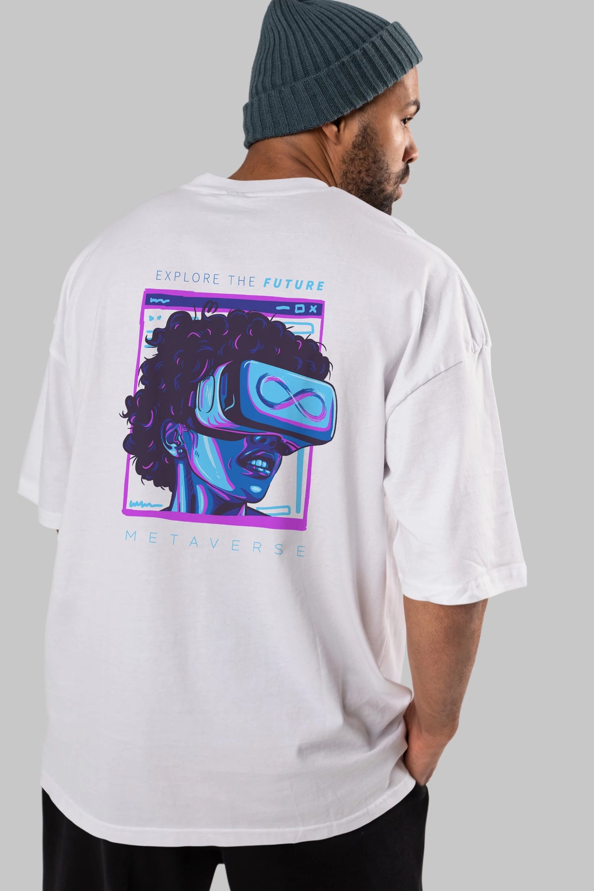 Metaverse Arka Baskılı Oversize t-shirt Erkek Kadın Unisex