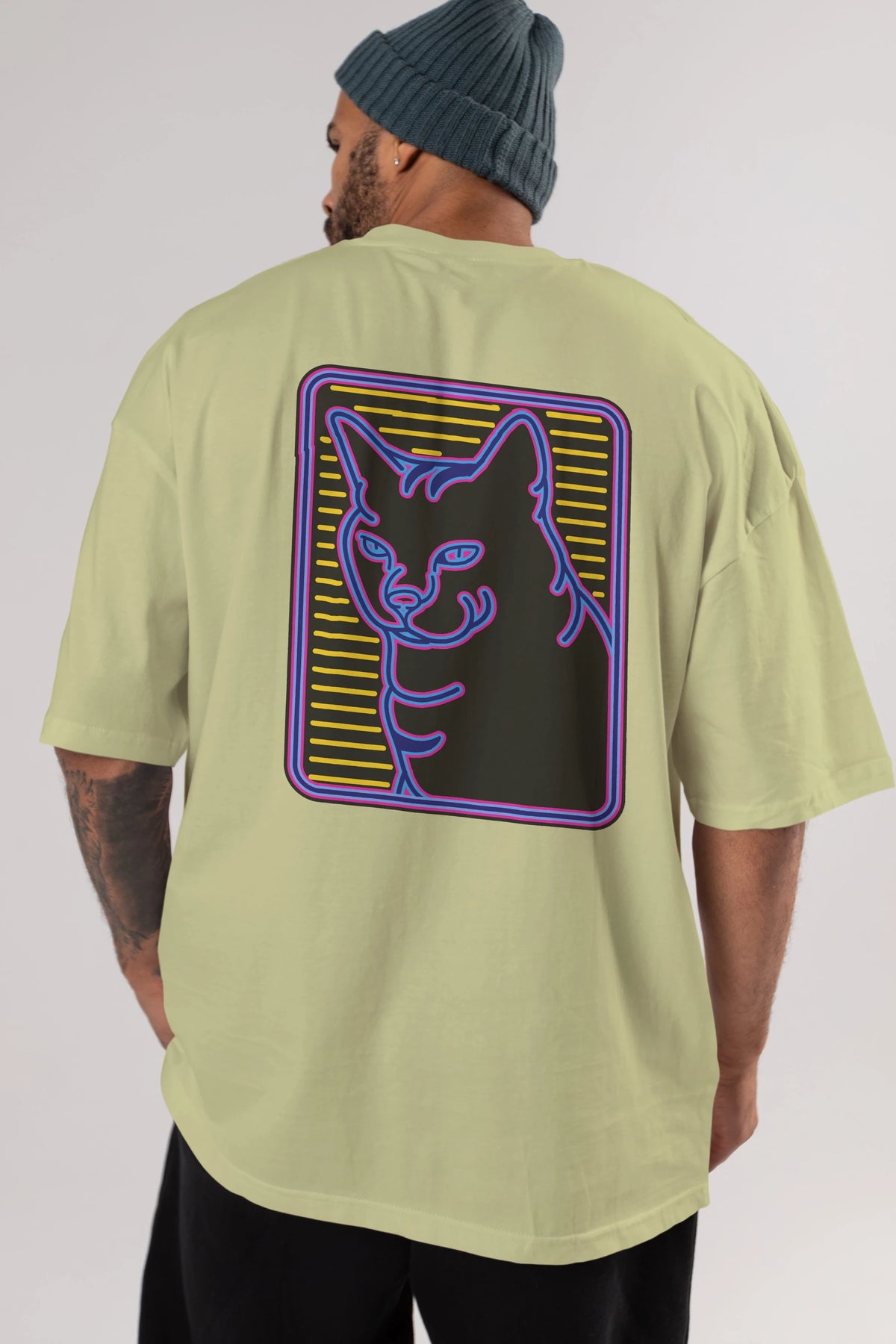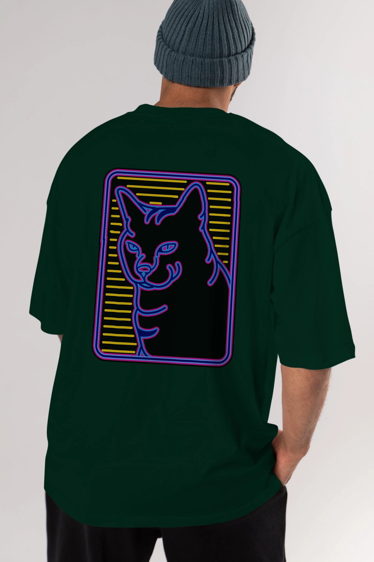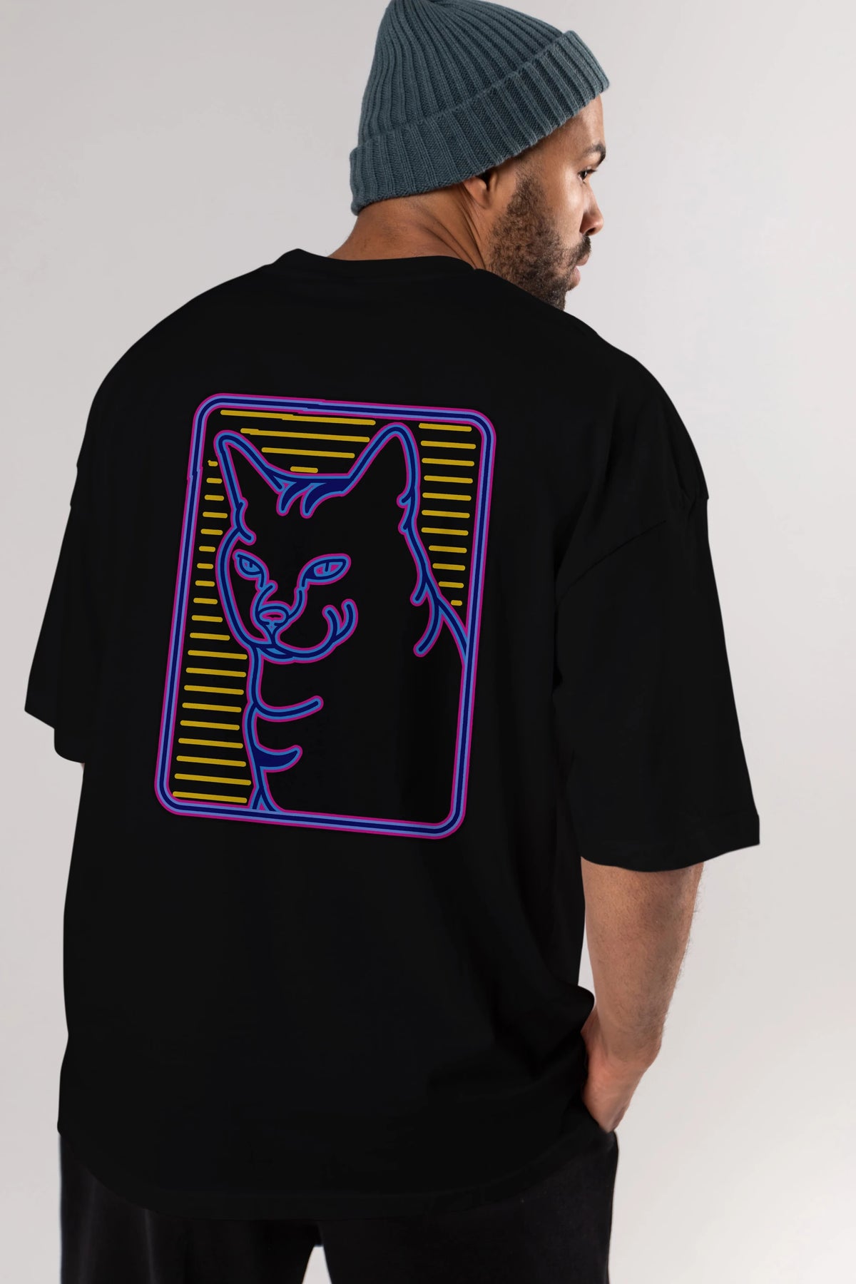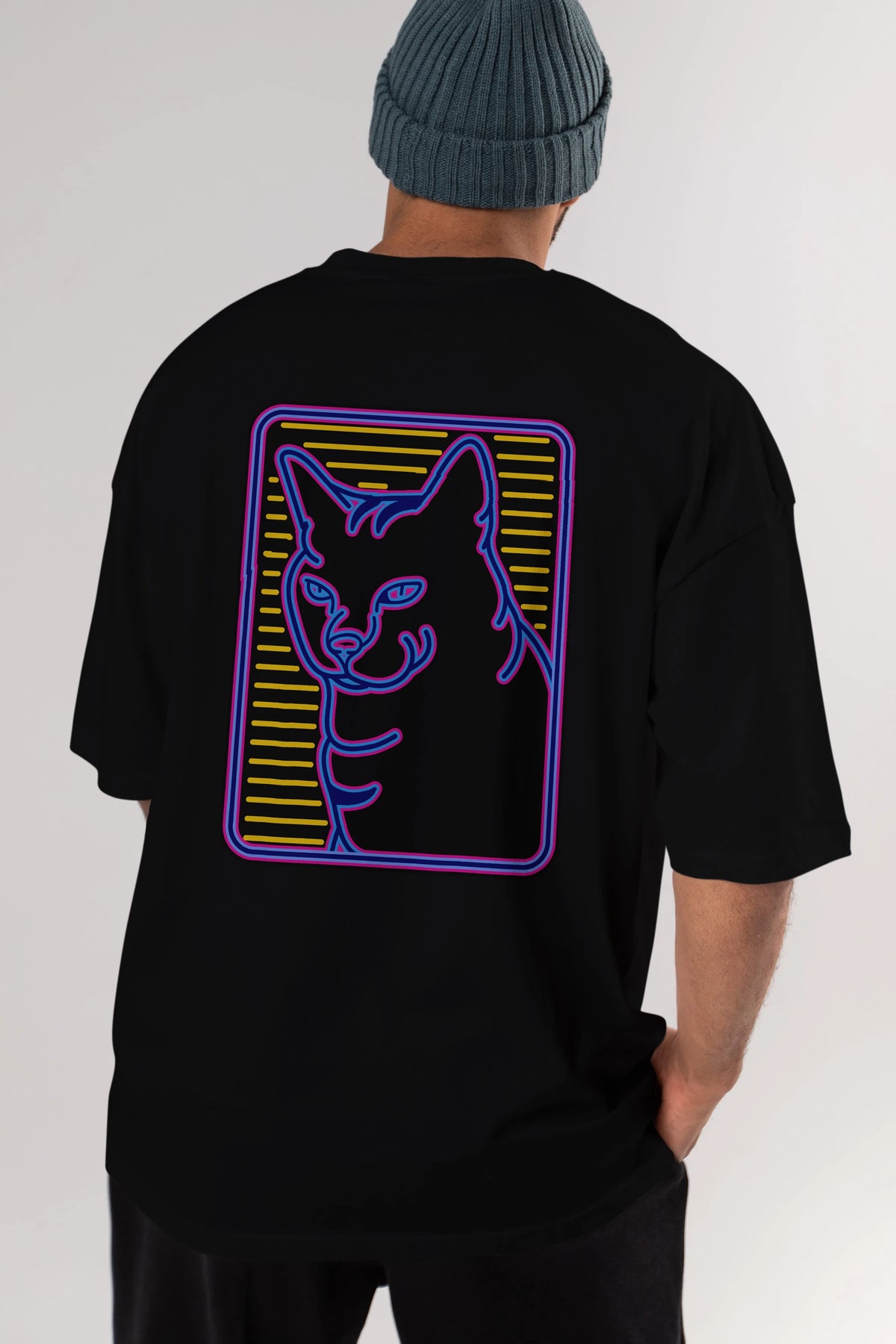 Neon Cat Arka Baskılı Oversize t-shirt Erkek Kadın Unisex
