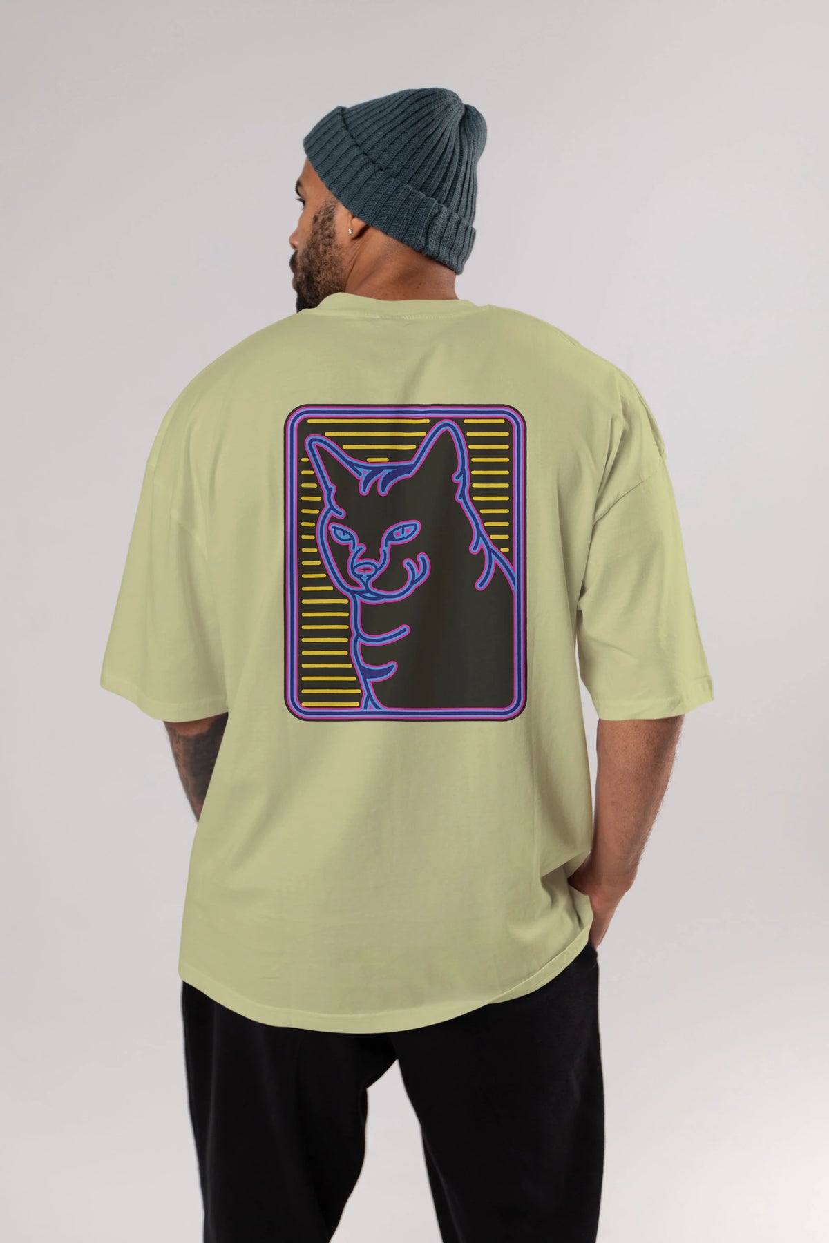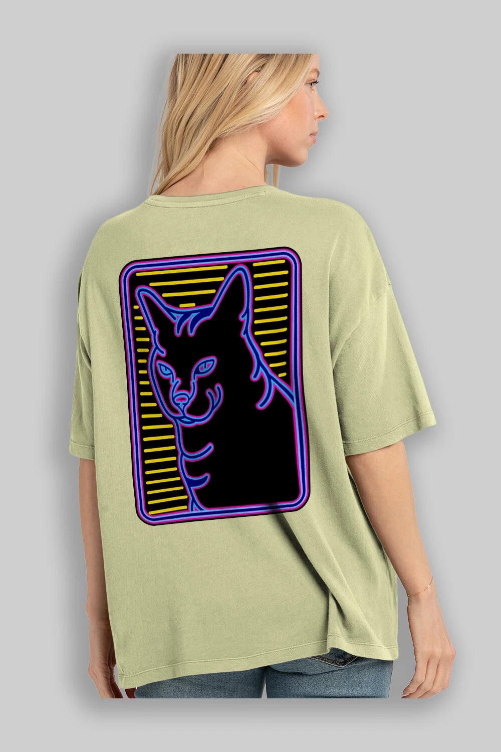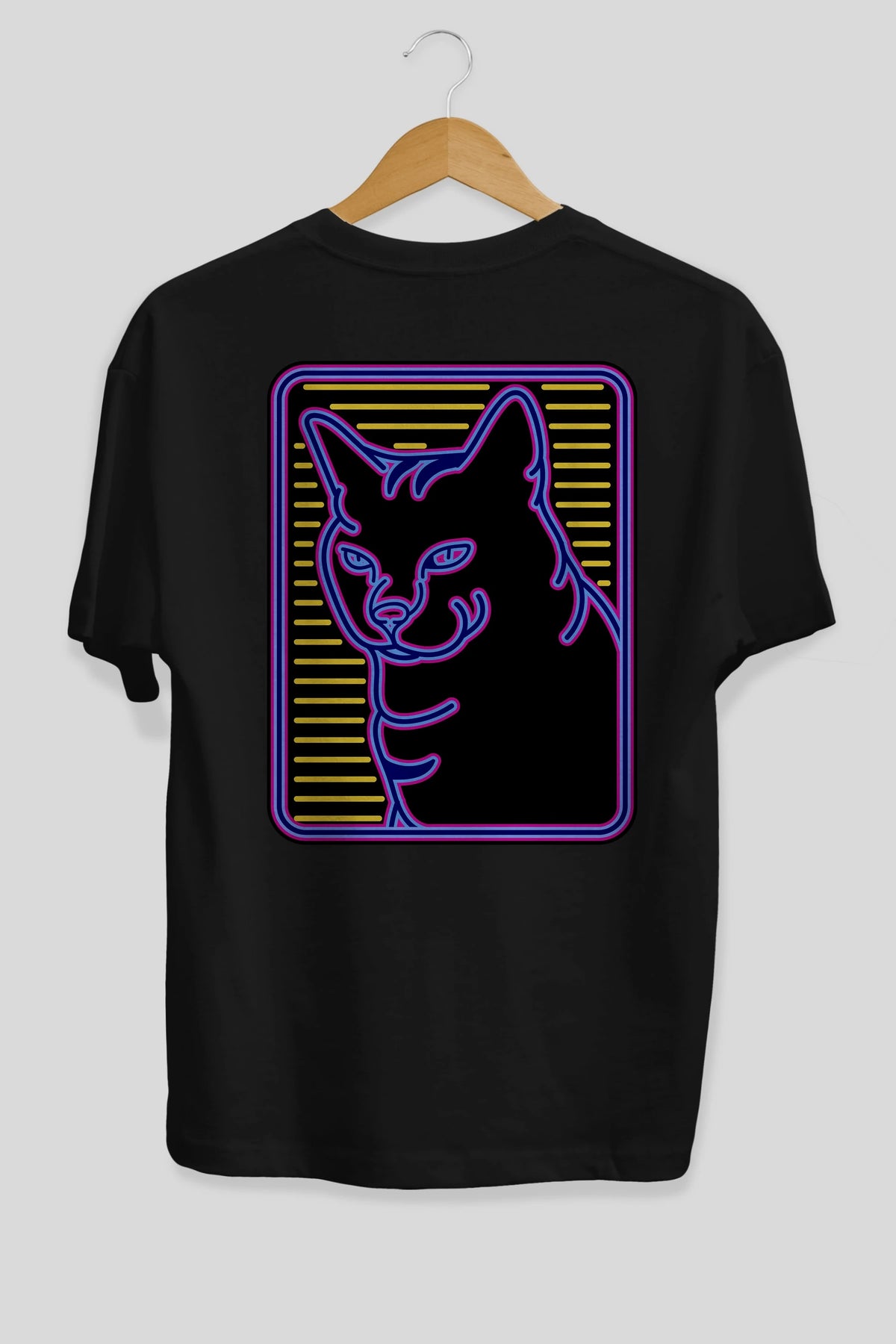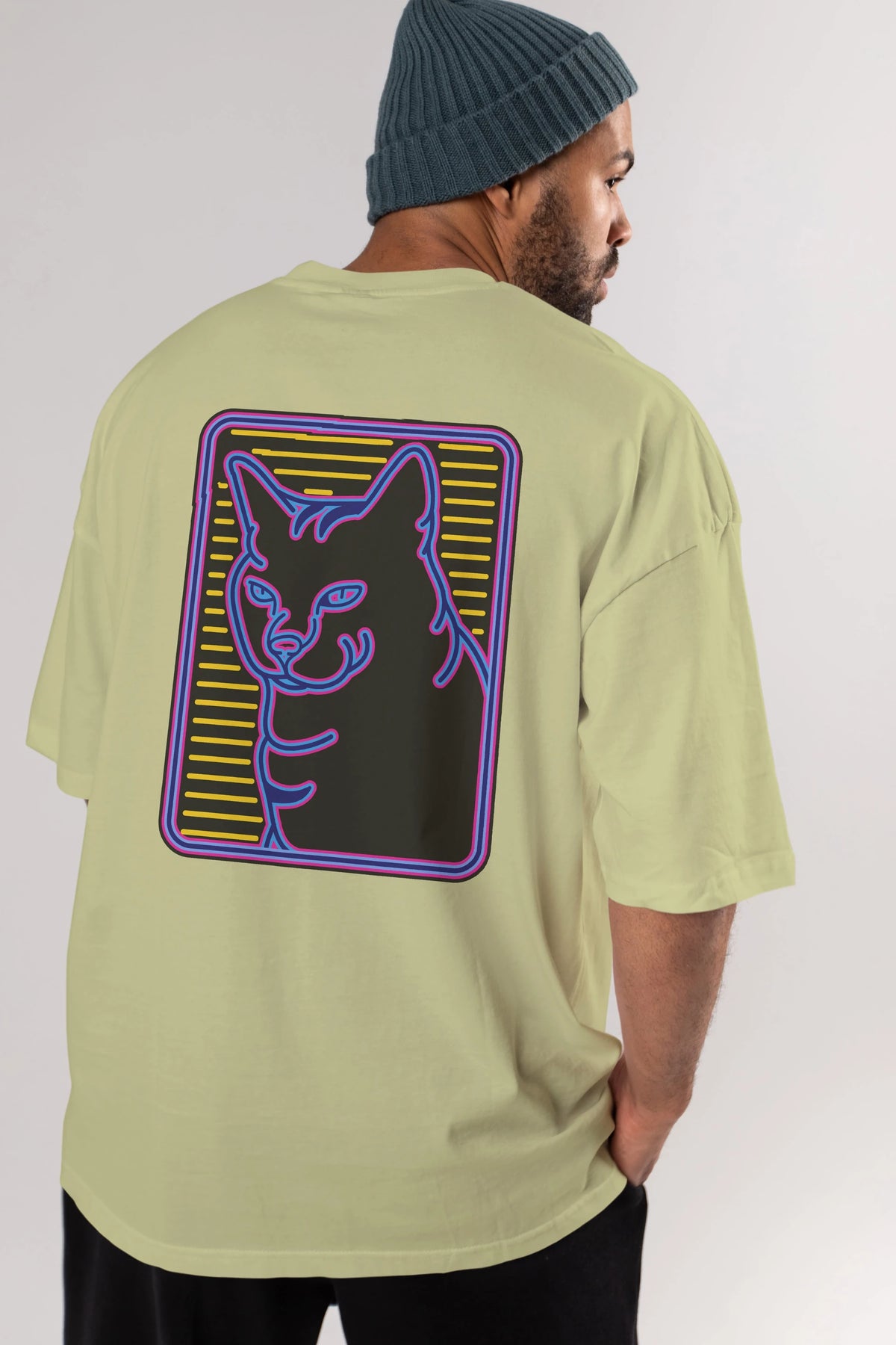 Neon Cat Arka Baskılı Oversize t-shirt Erkek Kadın Unisex