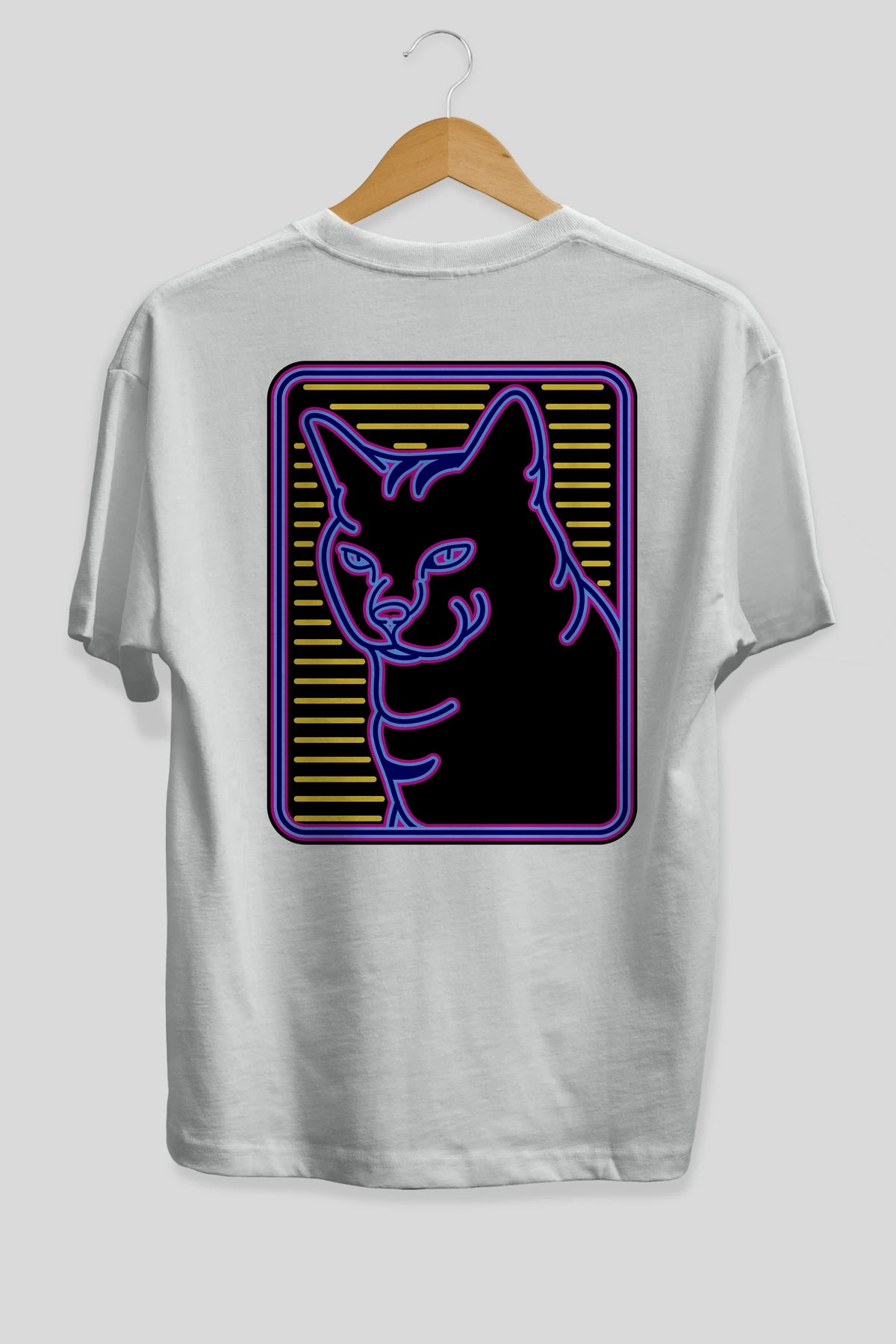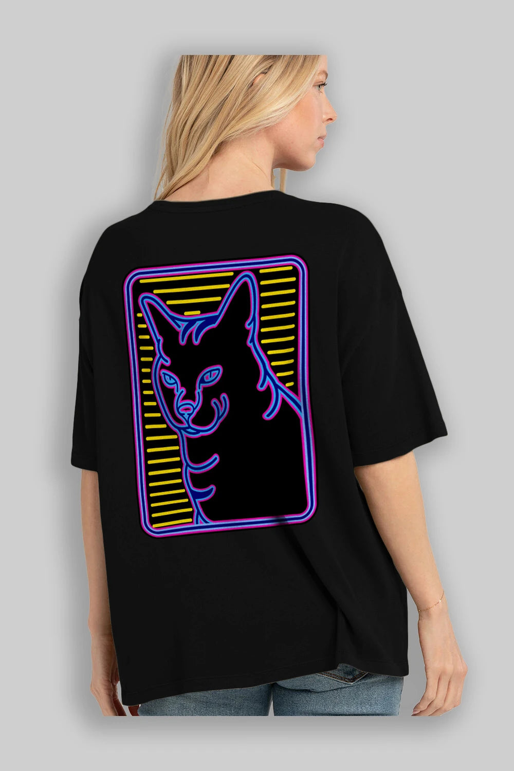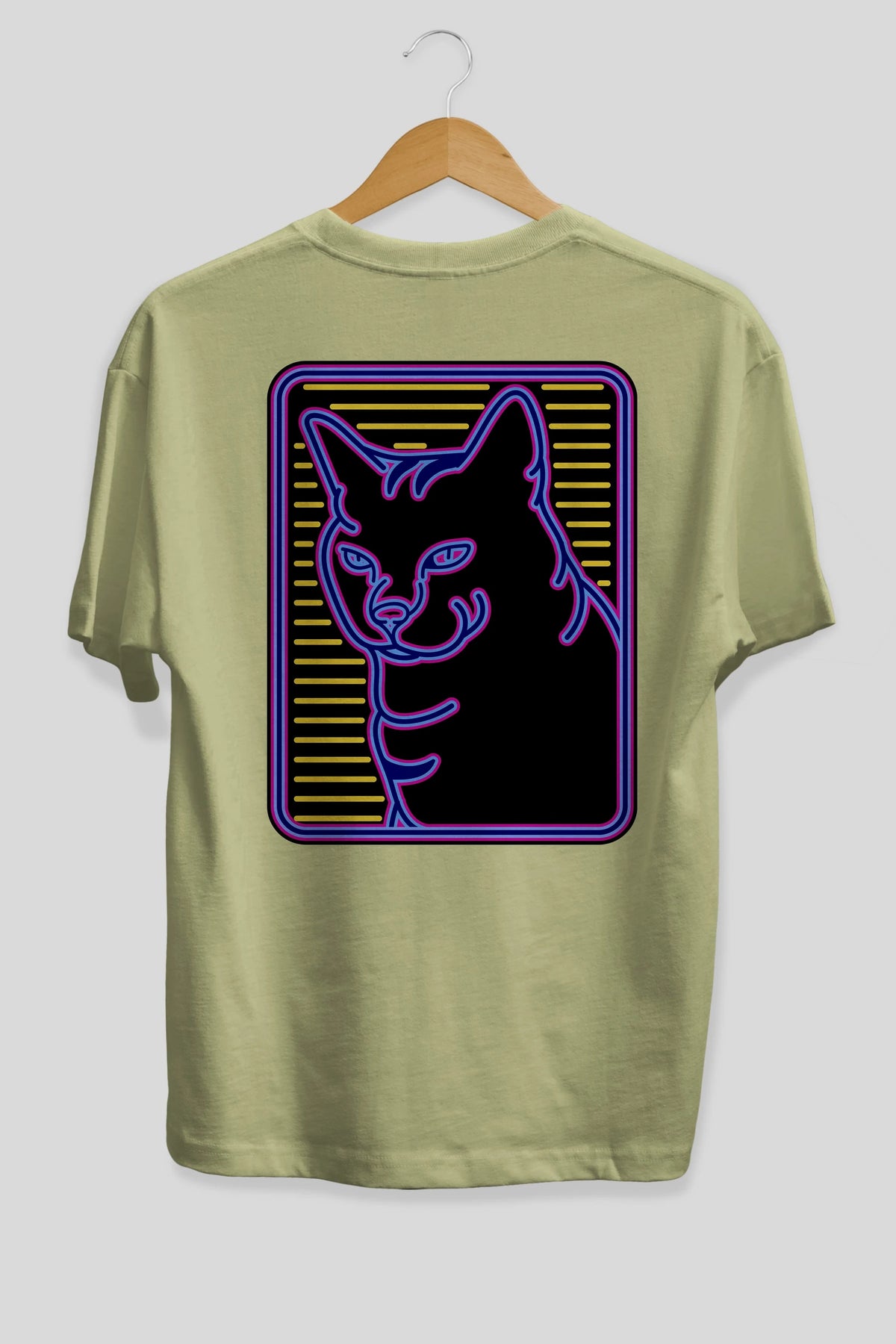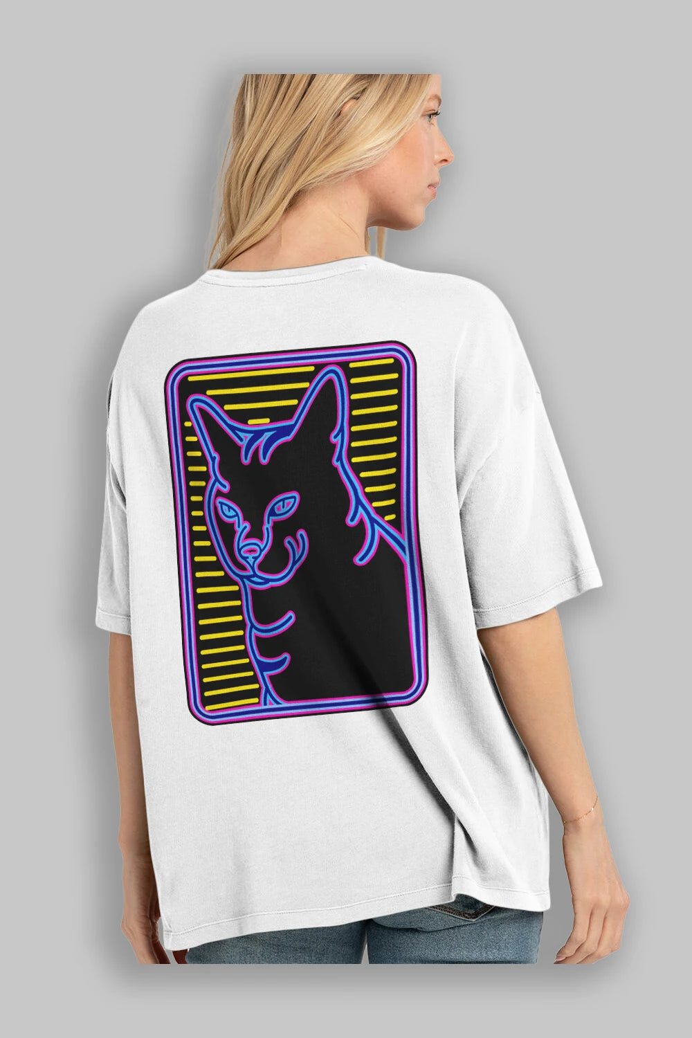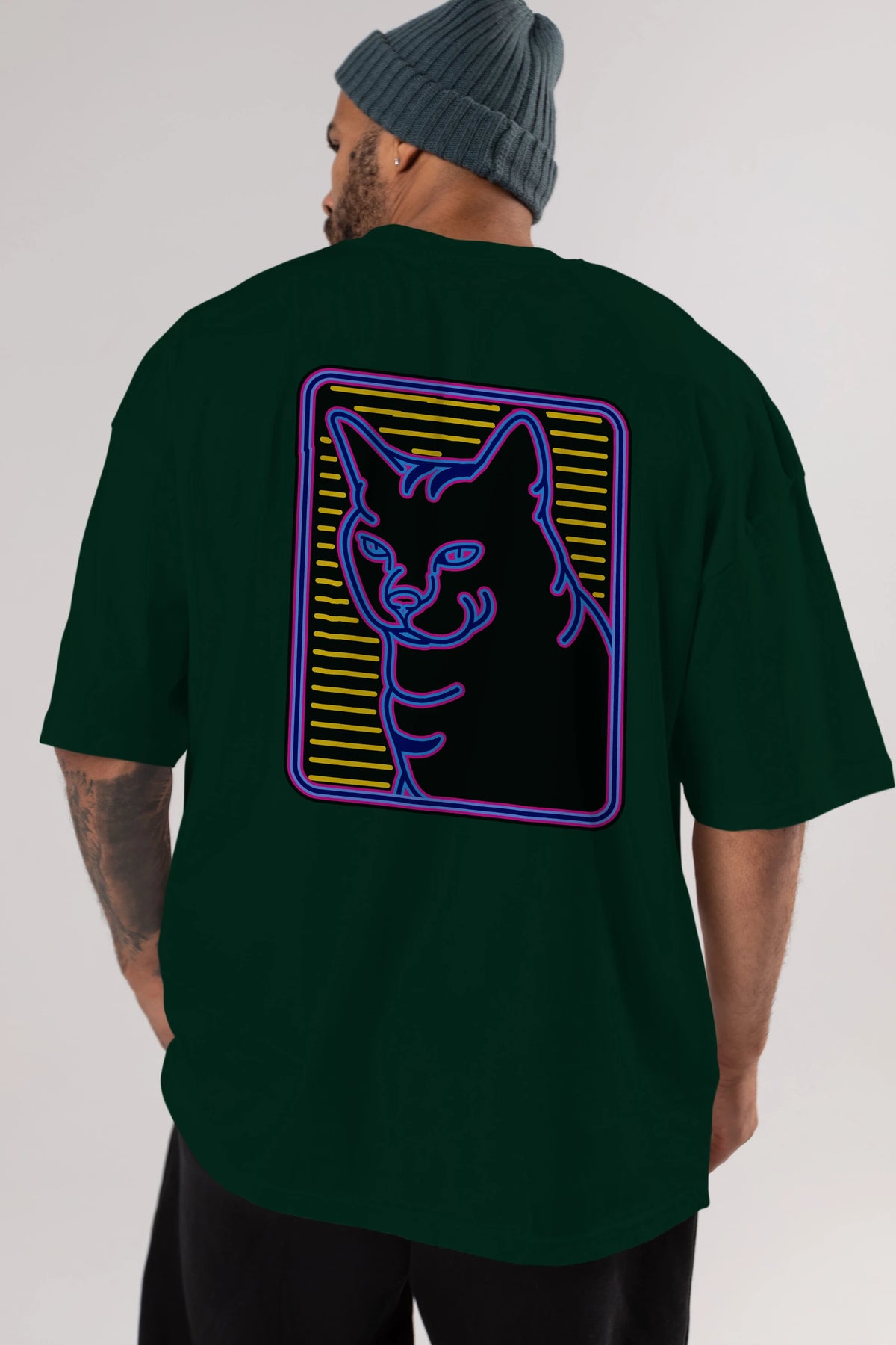 Neon Cat Arka Baskılı Oversize t-shirt Erkek Kadın Unisex