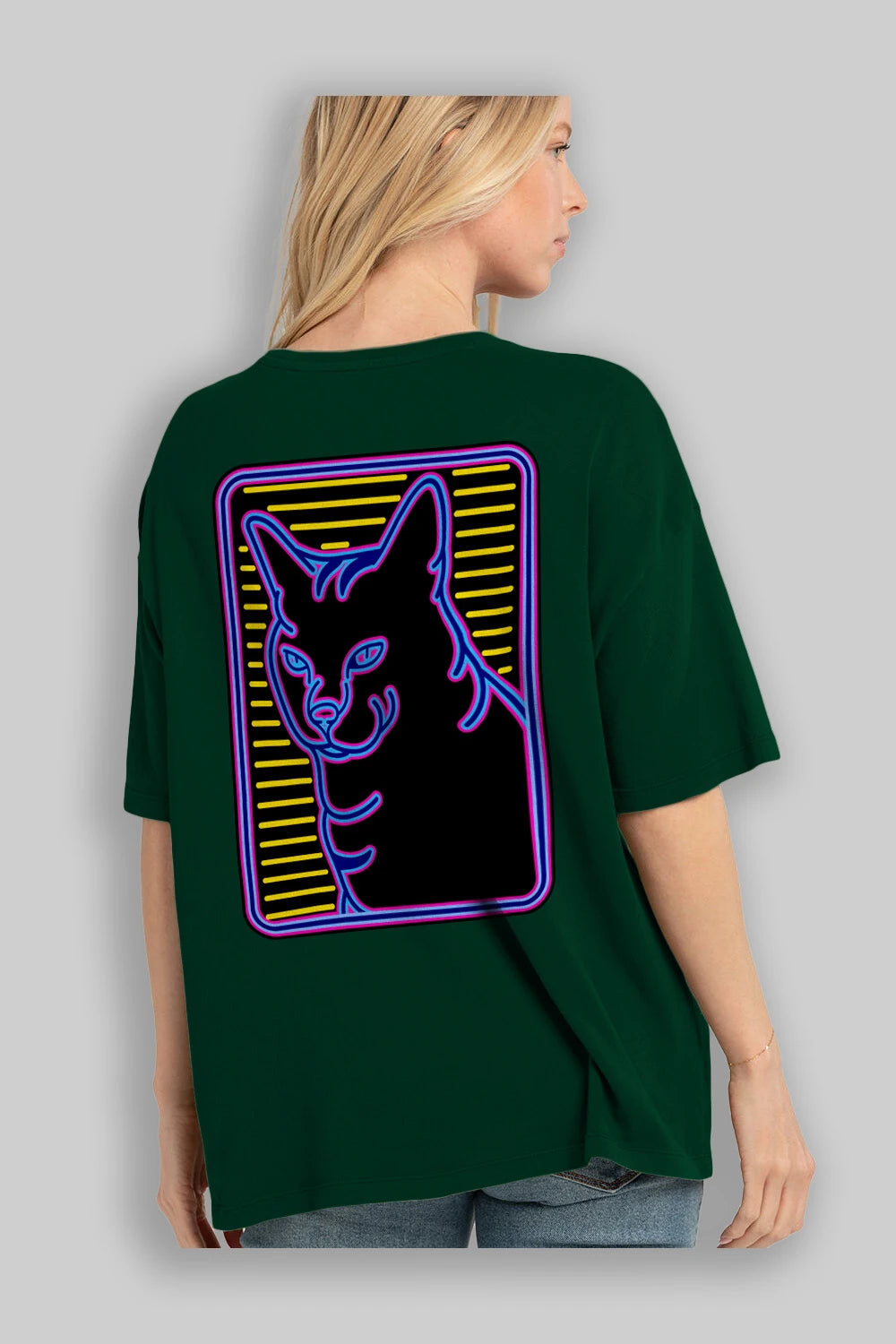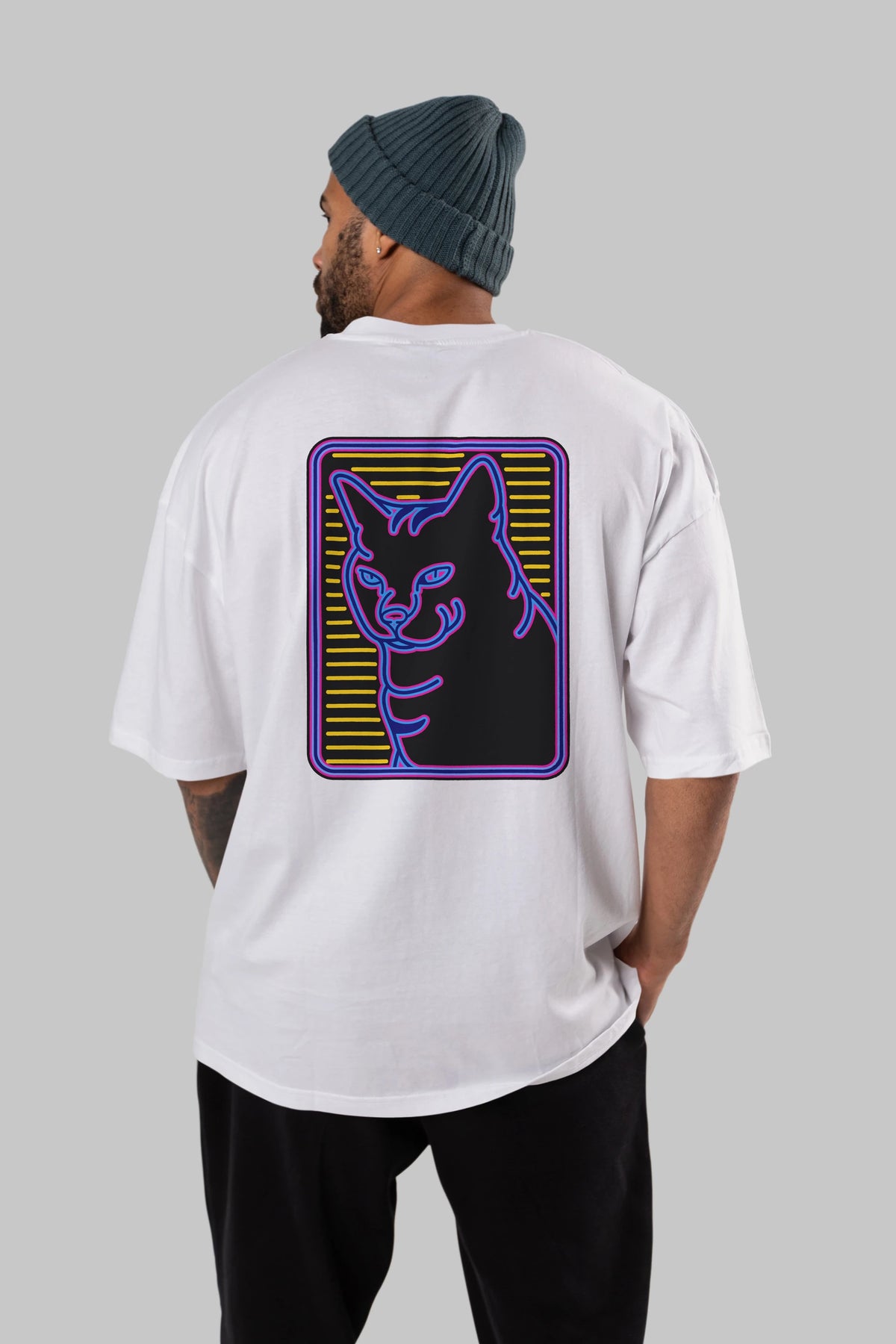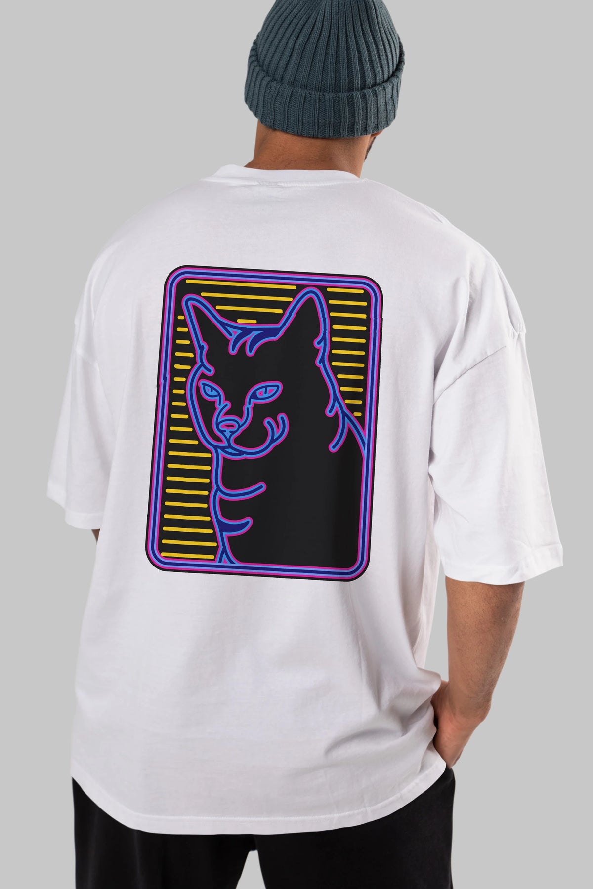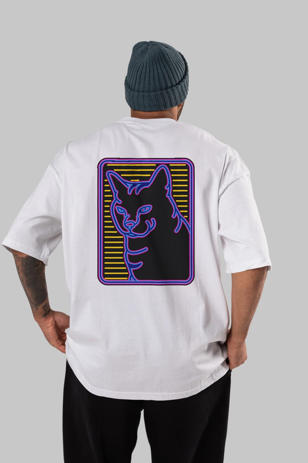 Neon Cat Arka Baskılı Oversize t-shirt Erkek Kadın Unisex