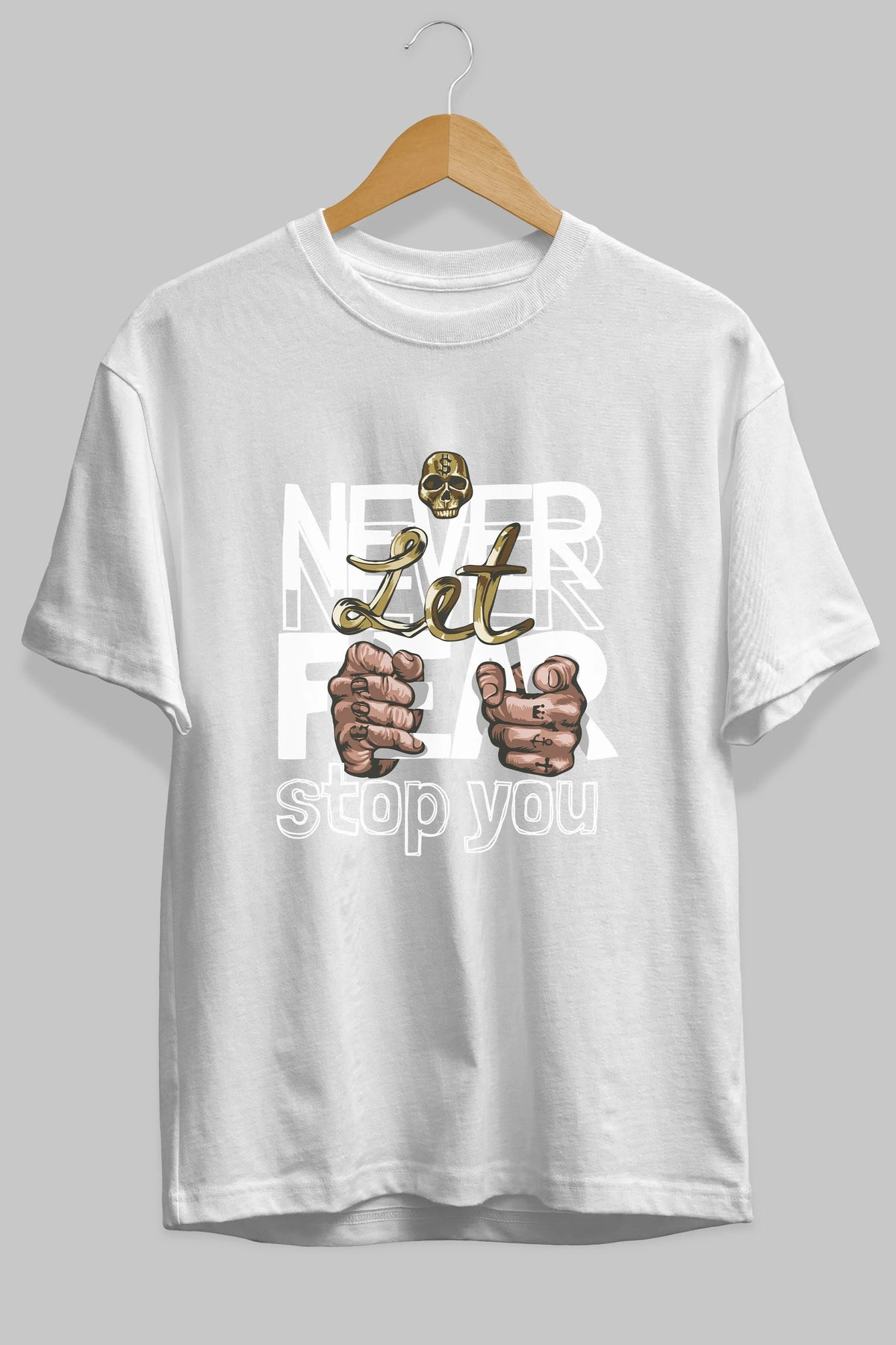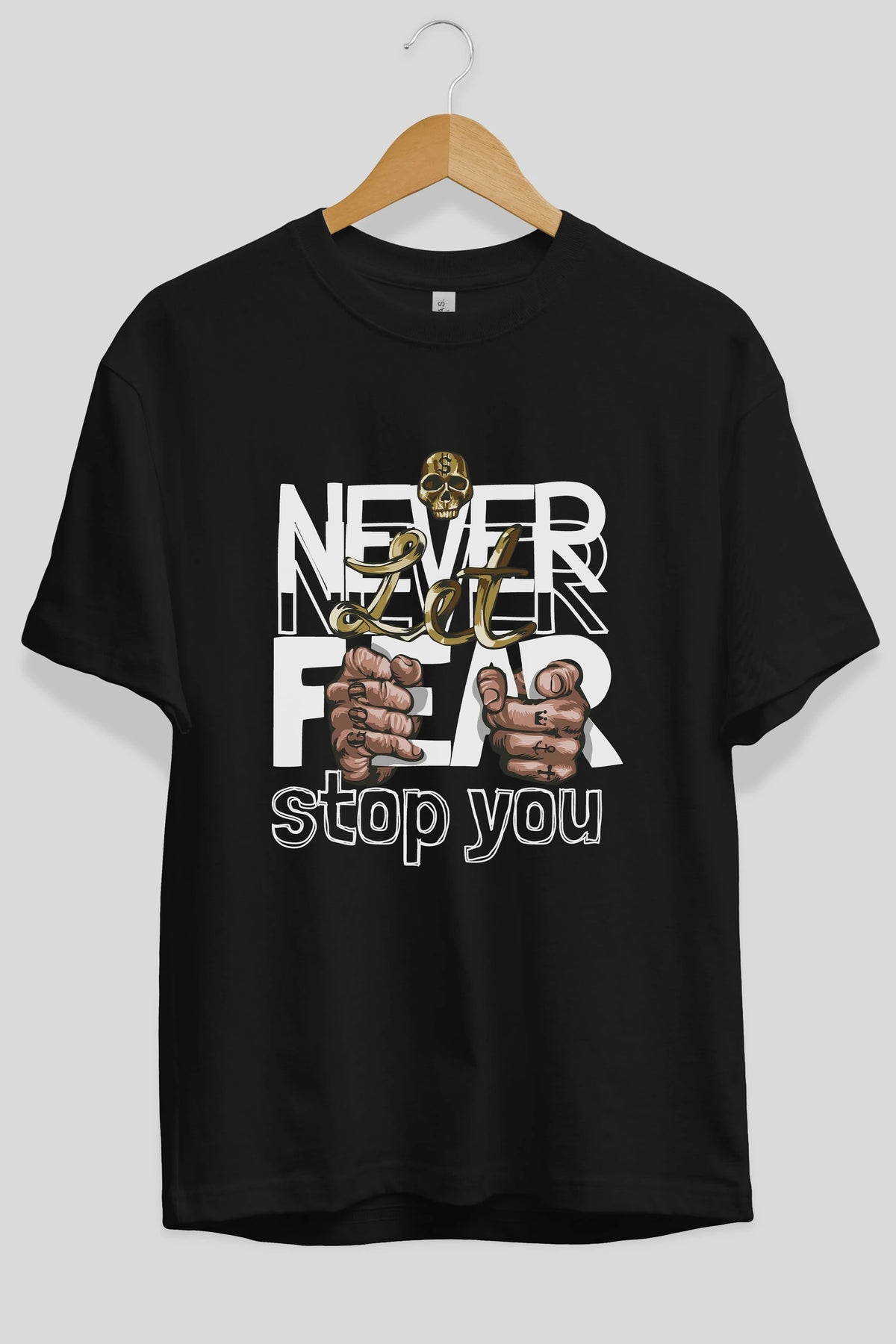 Never Let Fear Ön Baskılı Oversize t-shirt Erkek Kadın Unisex