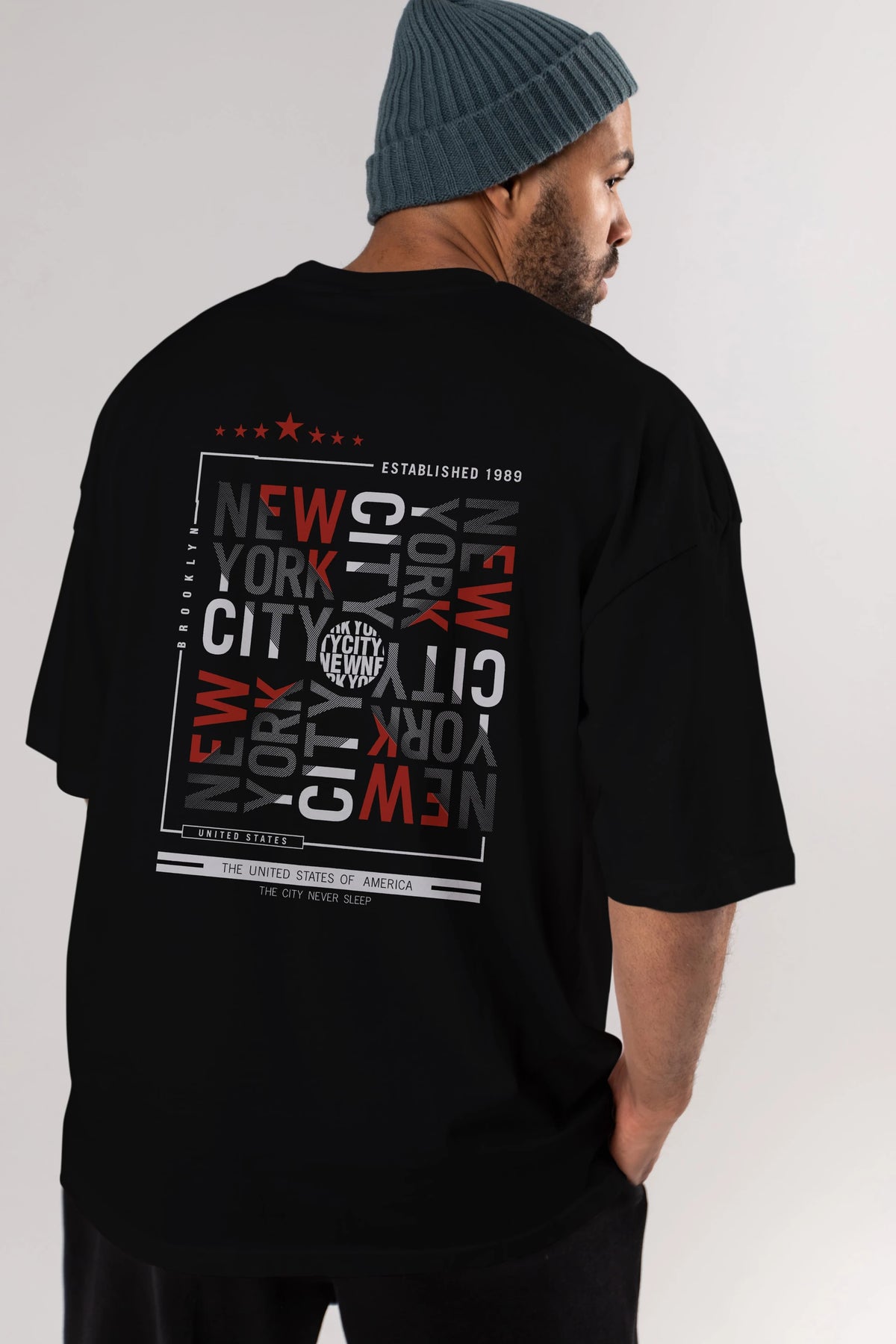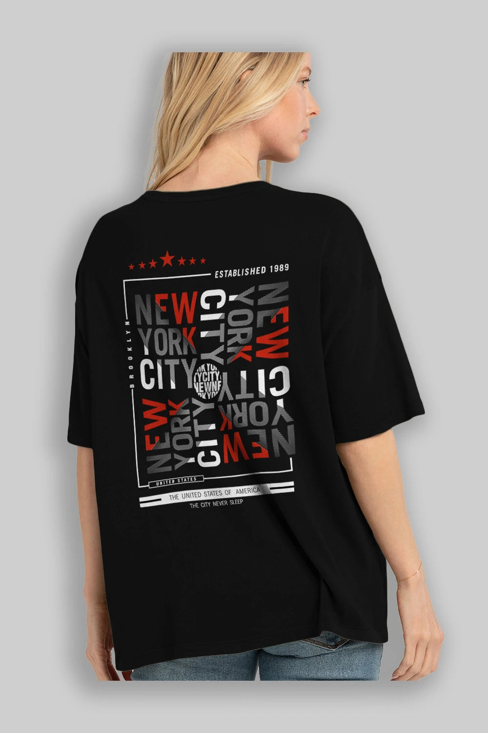 New York Style 2 Arka Baskılı Oversize t-shirt Erkek Kadın Unisex
