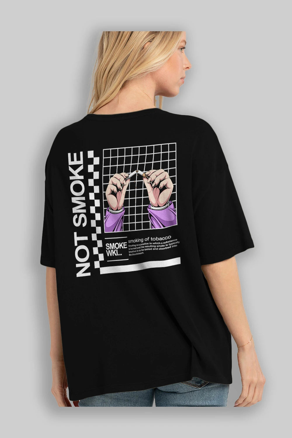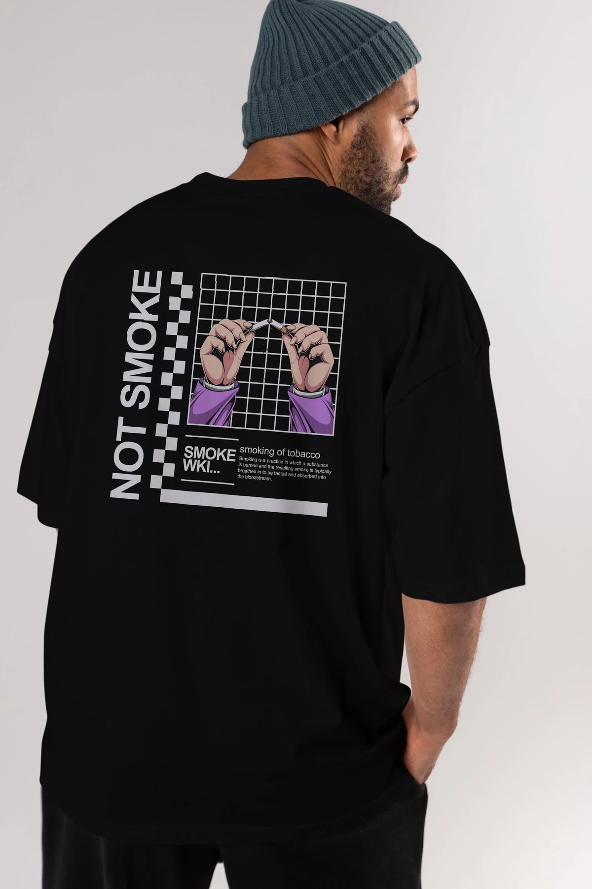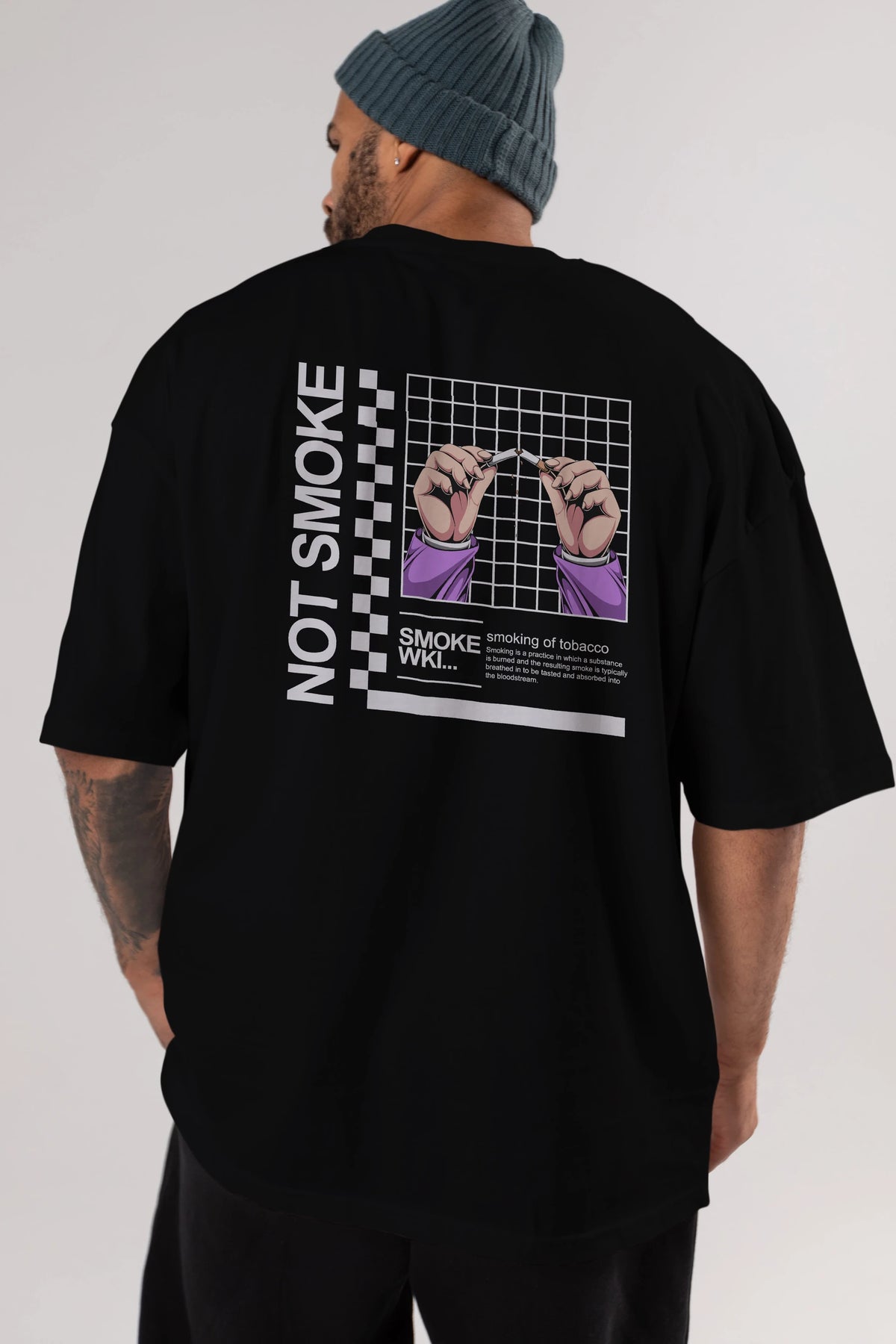 Not Smoke Arka Baskılı Oversize t-shirt Erkek Kadın Unisex